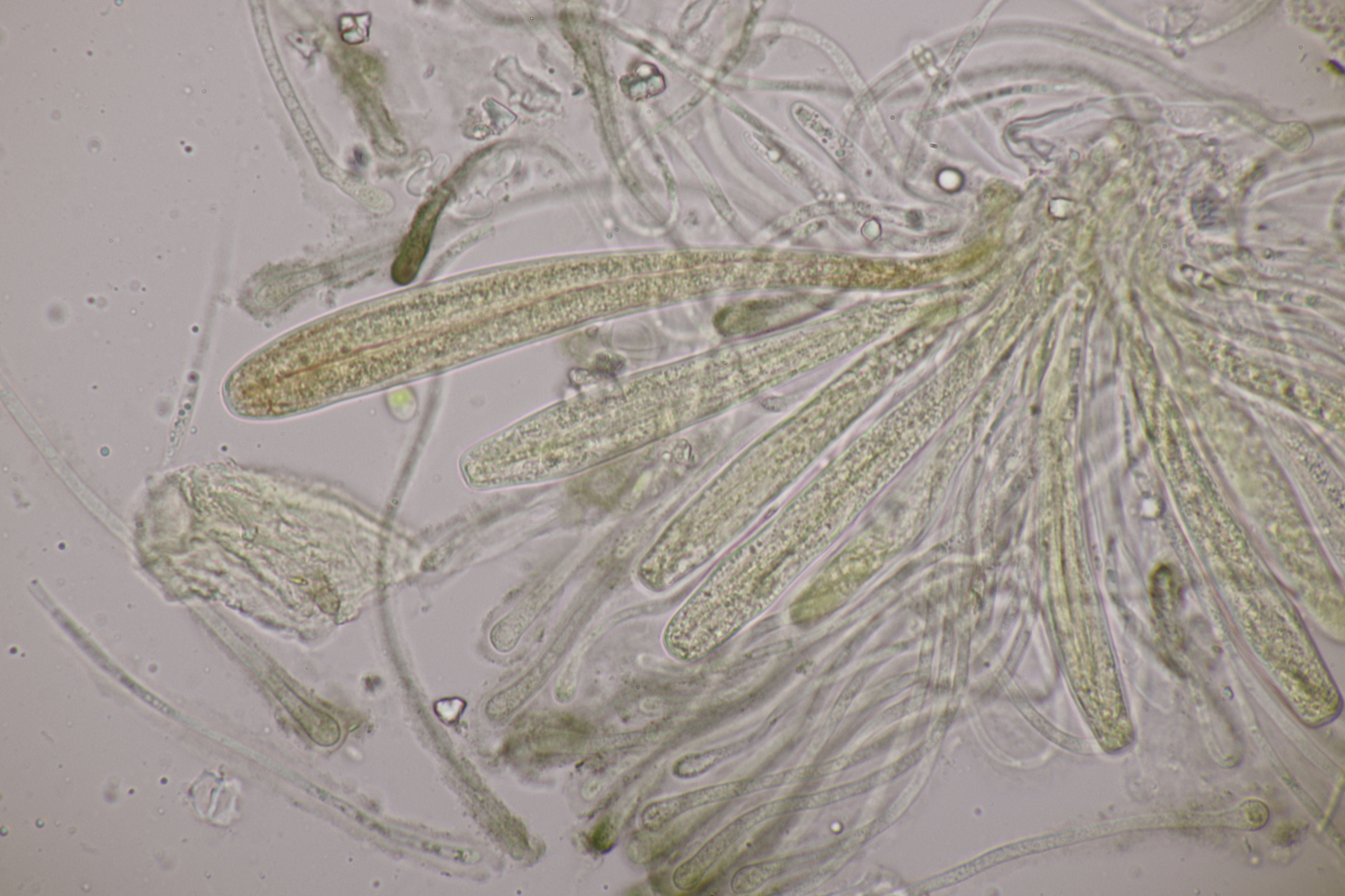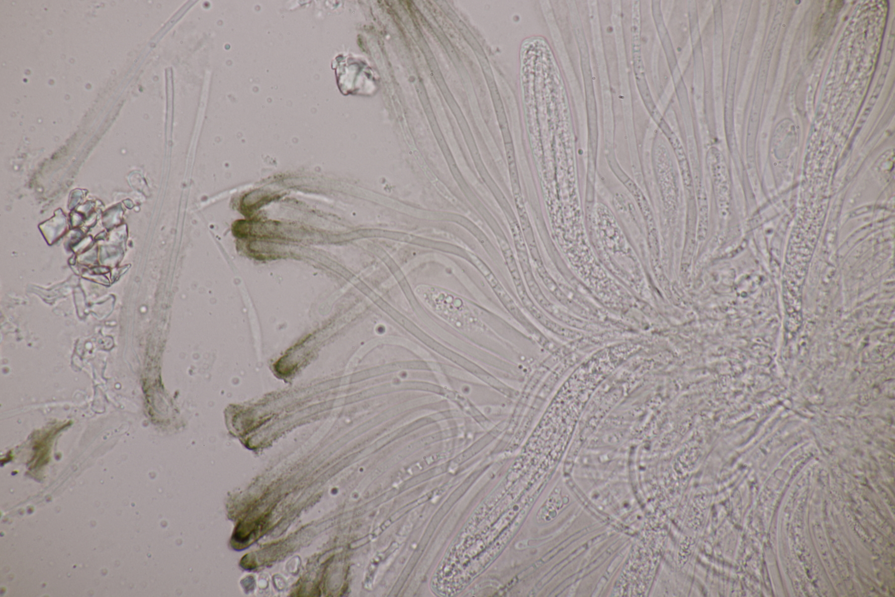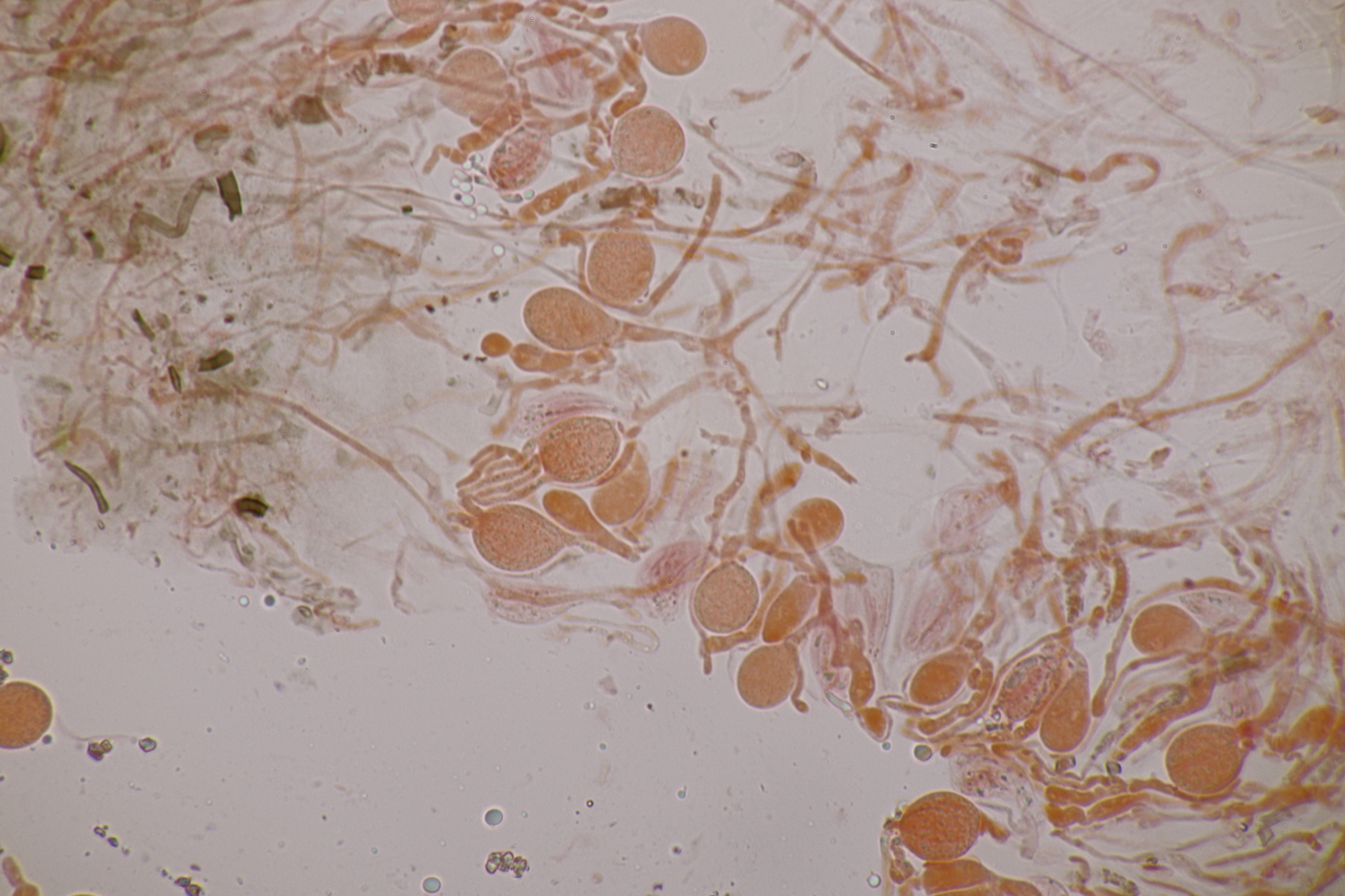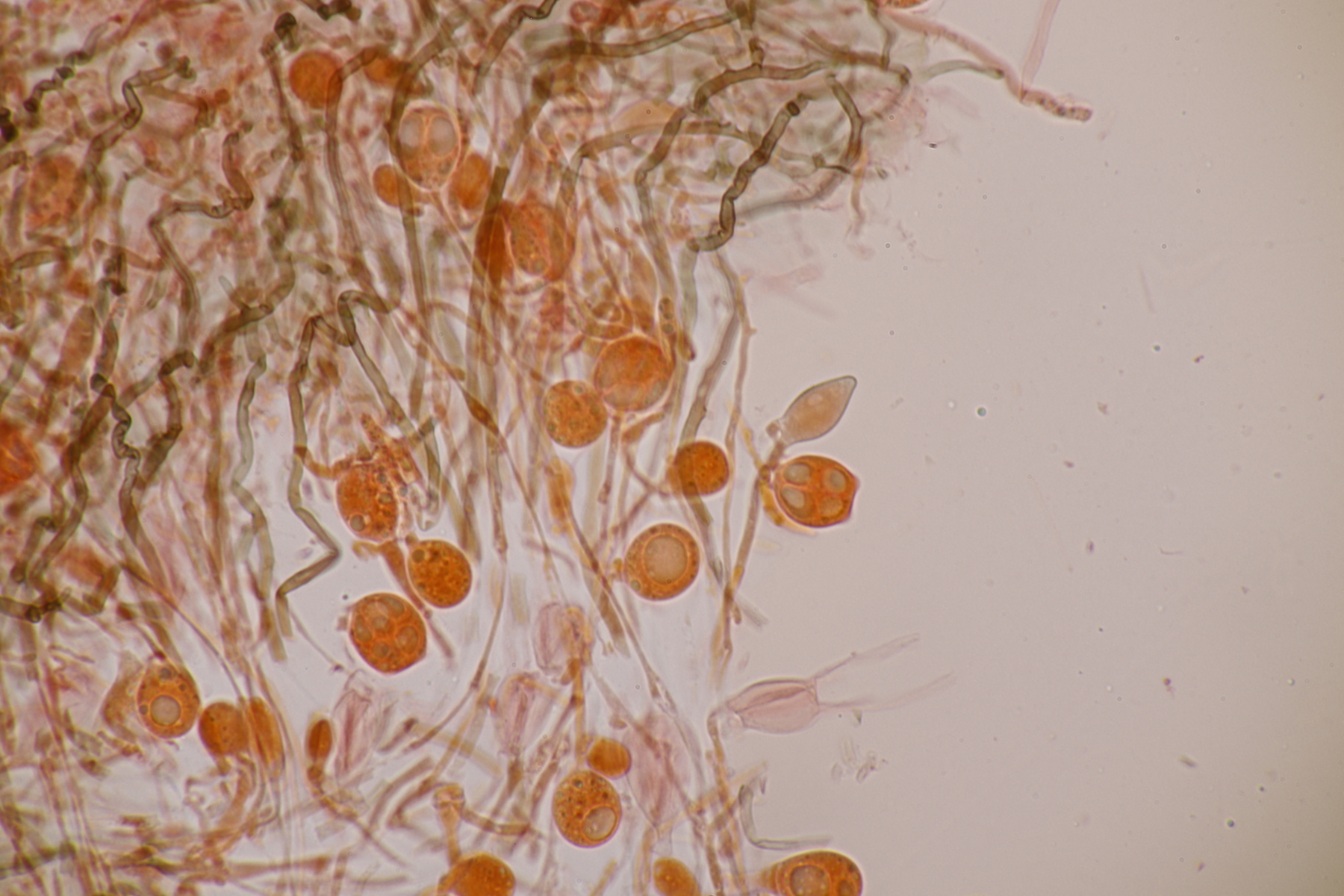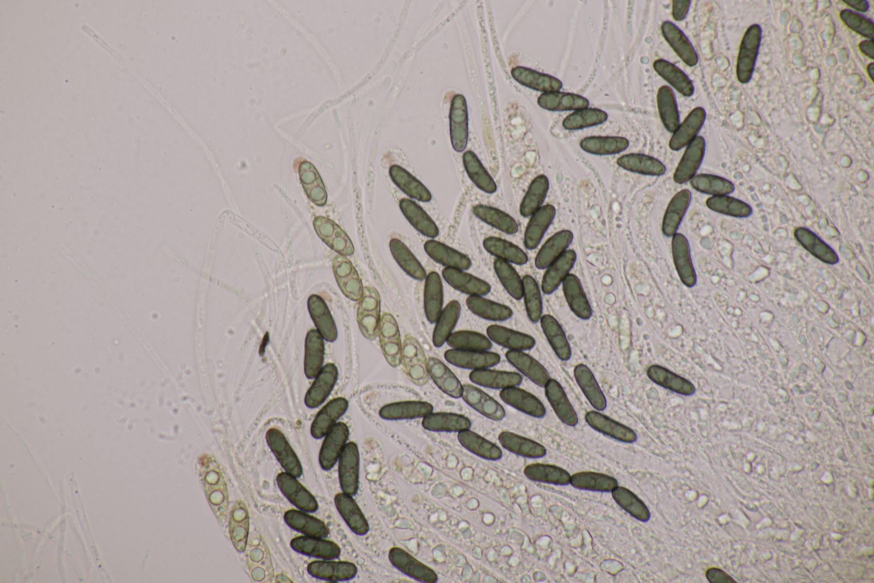 1. Myxarium nucleatum agg. Ich habe 71 Sporen gemessen und komme dann auf 12.1+-0.8 x 5.1+-0.3, Q=2.4+-0.2, 10.3-14.1 x 4.5-6.1, Q=2.0-3.1, was laut Spirin zu Myxarium hyalinum führt. Hat jemand Funderfahrung mit dieser Gruppe und kann da mehr zu sagen?