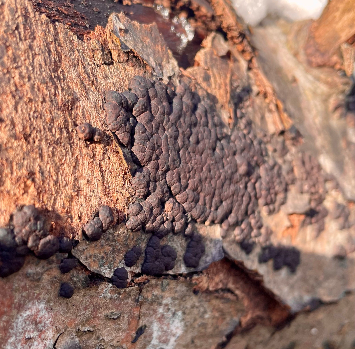 3. An Pinus sylvestris gab es dann Therrya fuckelii. Mal schauen, ob die Fruchtkörper hier zu Hause noch schöner nachreifen