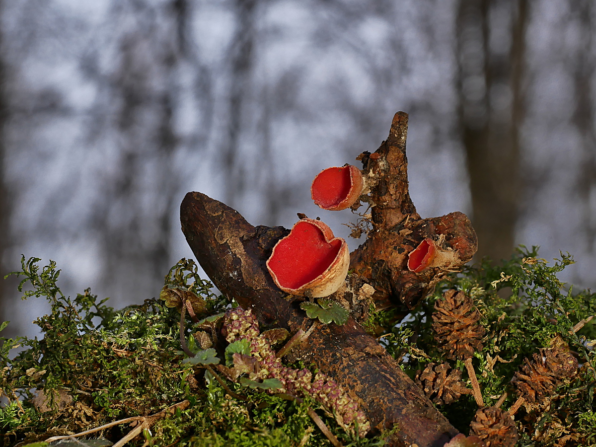 Und an dem guten neunten Platz sieht man, dass die Kelchbecherlinge am Fundort nur sehr schwer in Szene zu setzen sind.