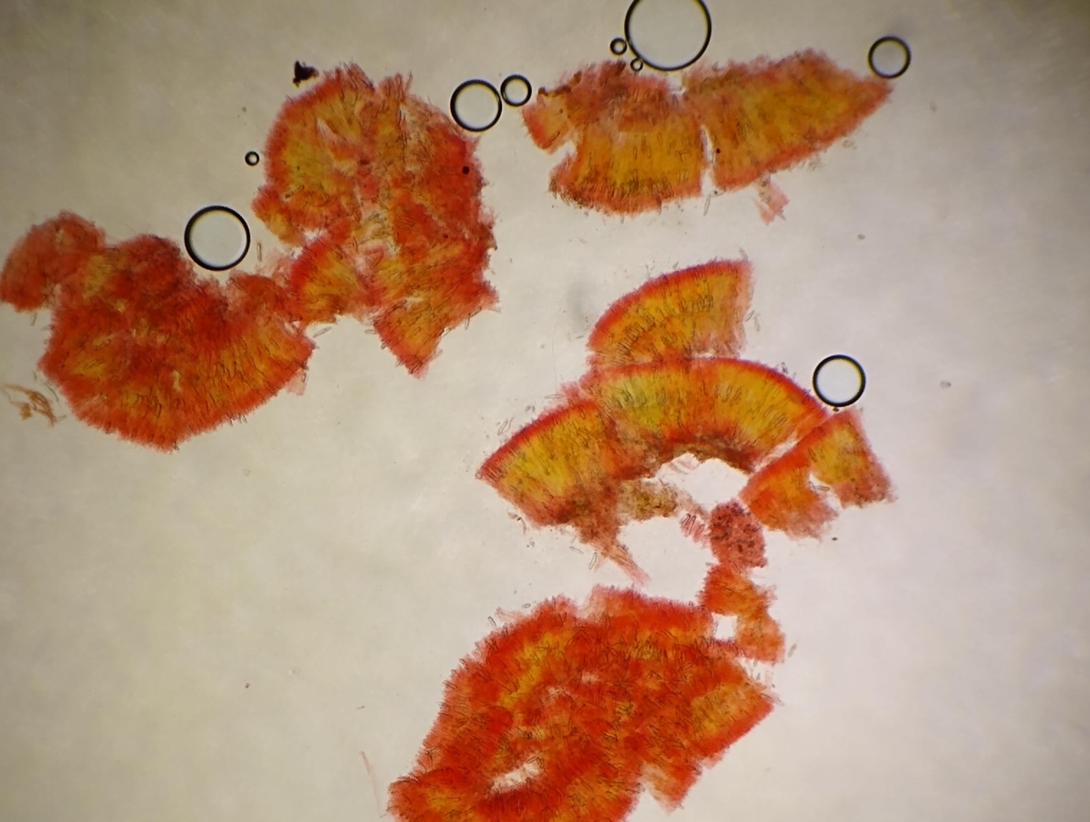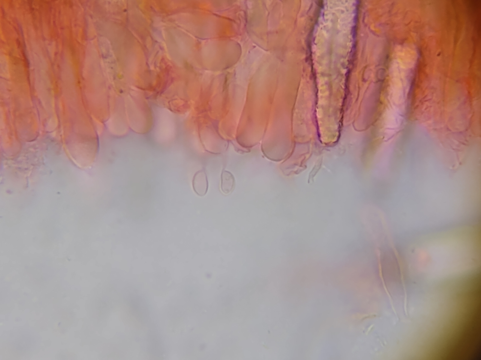 Zum Thema Gloeozystidien wollte ich noch nachfragen, ob damit so etwas hier gemeint sein könnte,
