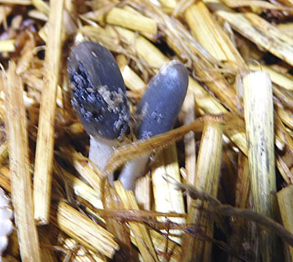 Irgendwas war dann da nicht steril, oder der Tintlingsbefall hat stattgefunden, nachdem das Seitlings- und Shiitakemycel in das Stroh kam.