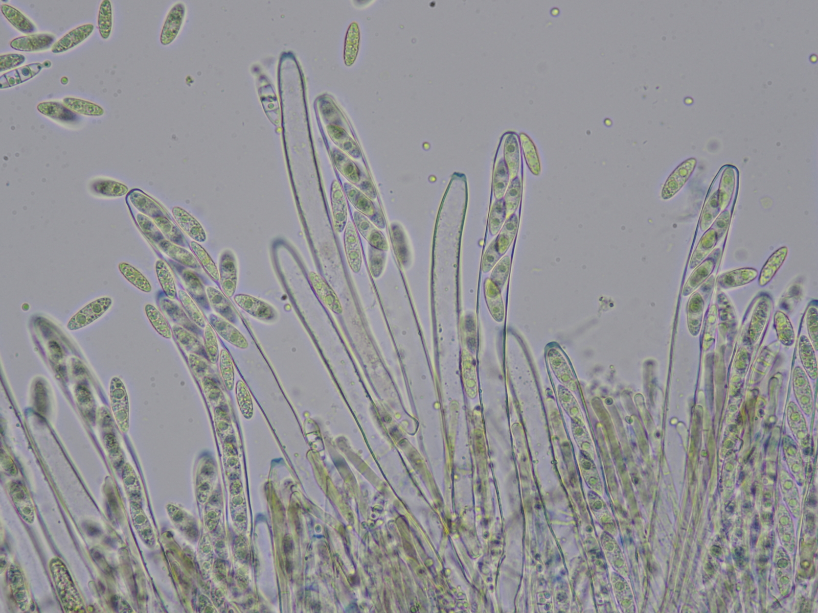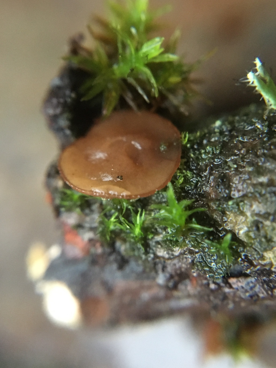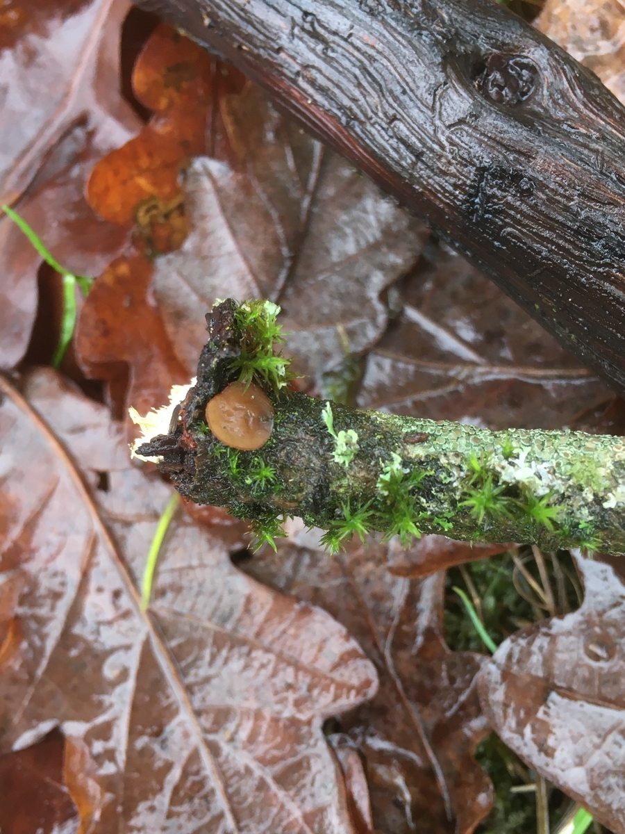 Bei der Flechtensuche fand ich zwei flache braune Ascocarpe ca 4mm x 0,5mm, ungestielt zwischen Moosen und Flechten auf einem noch ansitzenden ca 10mm dicken Eichenästchen. Zunächst recht verwirrt über die Makromorphologie, weisen die Sporen für mich eventuell in Richtung Ascocoryne? Was mich irritierte war das Fehlen jeglicher Lila Töne, die scheibenartig flache Gestalt sowie das solitäre Vorkommen. Fällt euch hierzu was besseres ein? LG Ingo