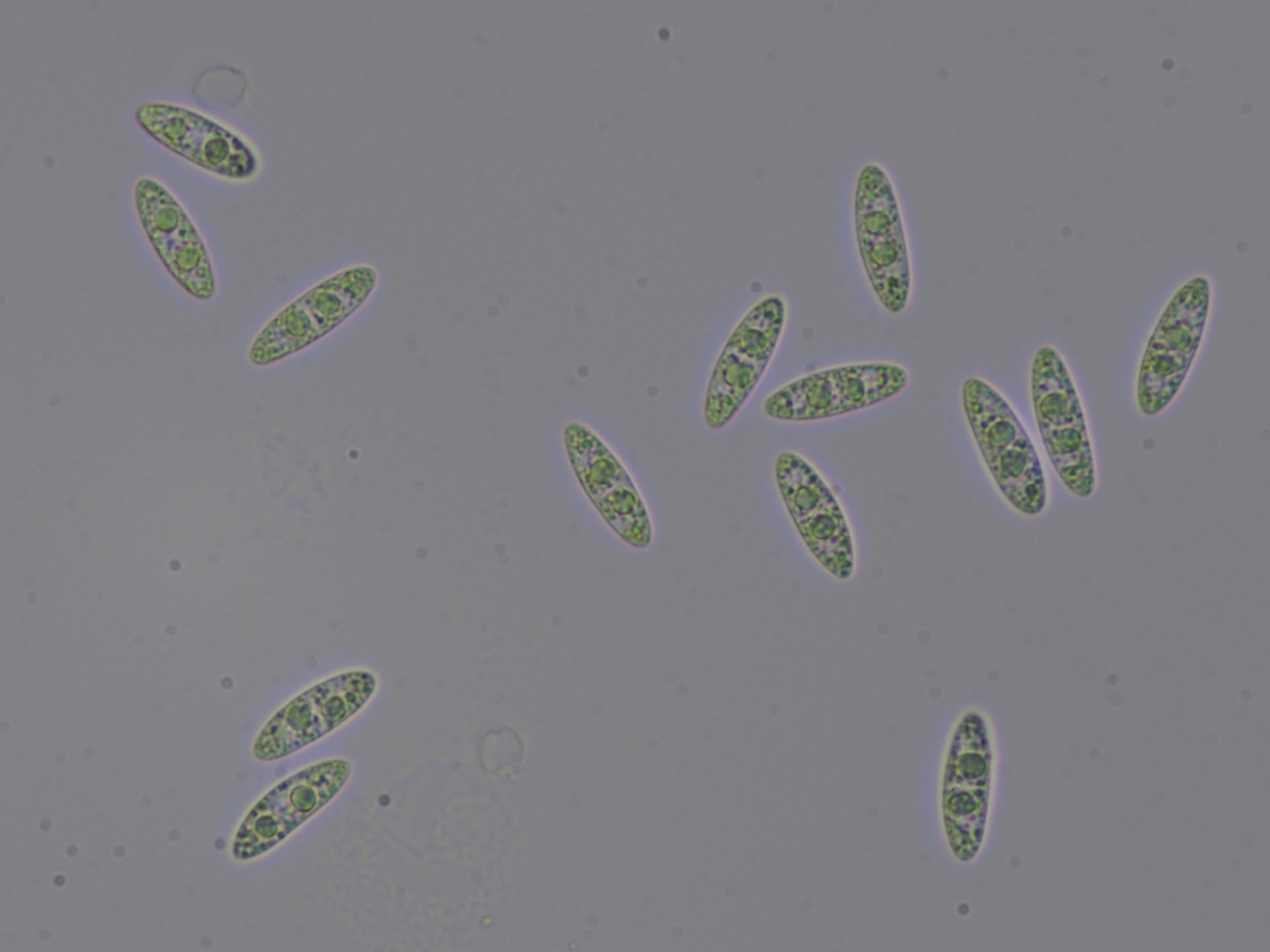 überreif 3fach septiert mit 2 kugeligen Sekundärsporen pro Spore, glatt