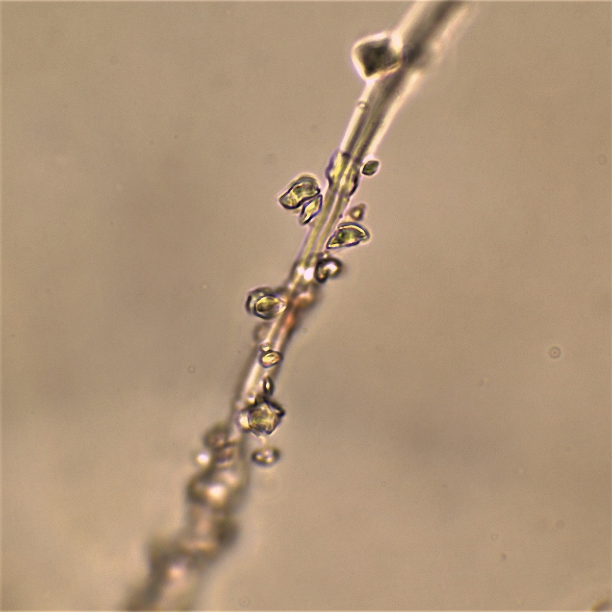 welche Elemente sind dies und gehören sie zu dem Pilz oder zu der Anwachsstelle zum Substrat?