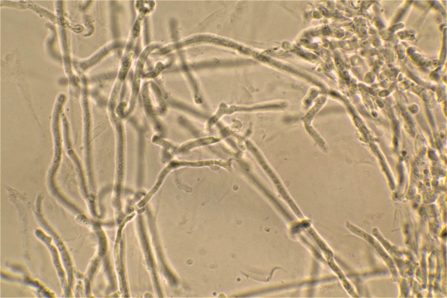 besteht aus einer Hyphenstruktur dicker und dünnwandig, Septen mit Schnallen