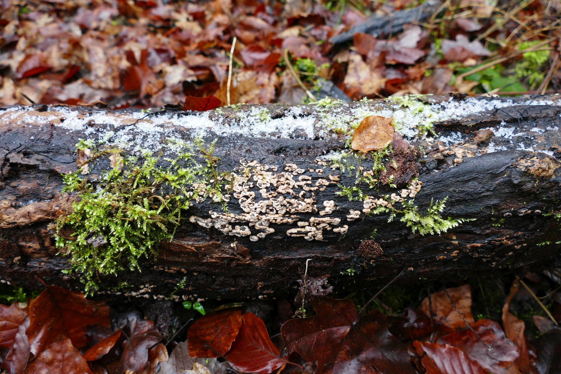 Vielleicht sind es nur unbestimmbare Jungstadien von irgendwelchen Rindenpilzen, crèmeweiß mit weichen Rundungen - aber ich bilde mir aber ein, sie erinnern mich an etwas.