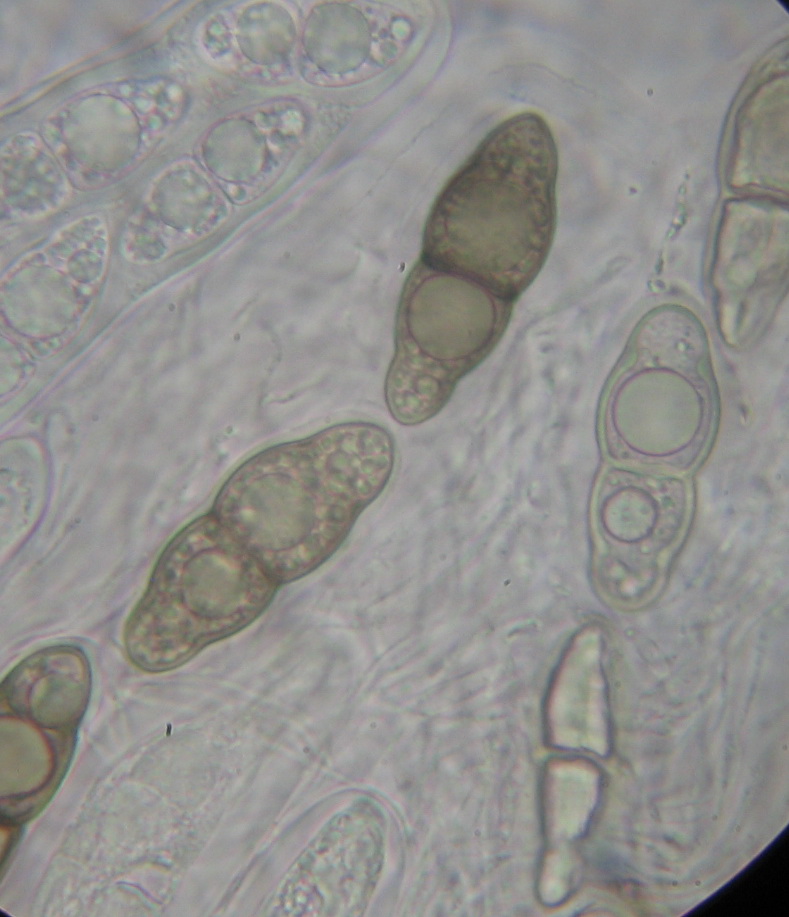 Ein "Beifang" ist auch dabei. Die unseptierten Sporen sind auch recht groß ,oit 54,11 x 22,50 / 50,57 x 19,32 µm. Asci habe ich dazu nicht gefunden und auch keine Fruchtkörper. Letztere habe ich evtl. auch übersehen.