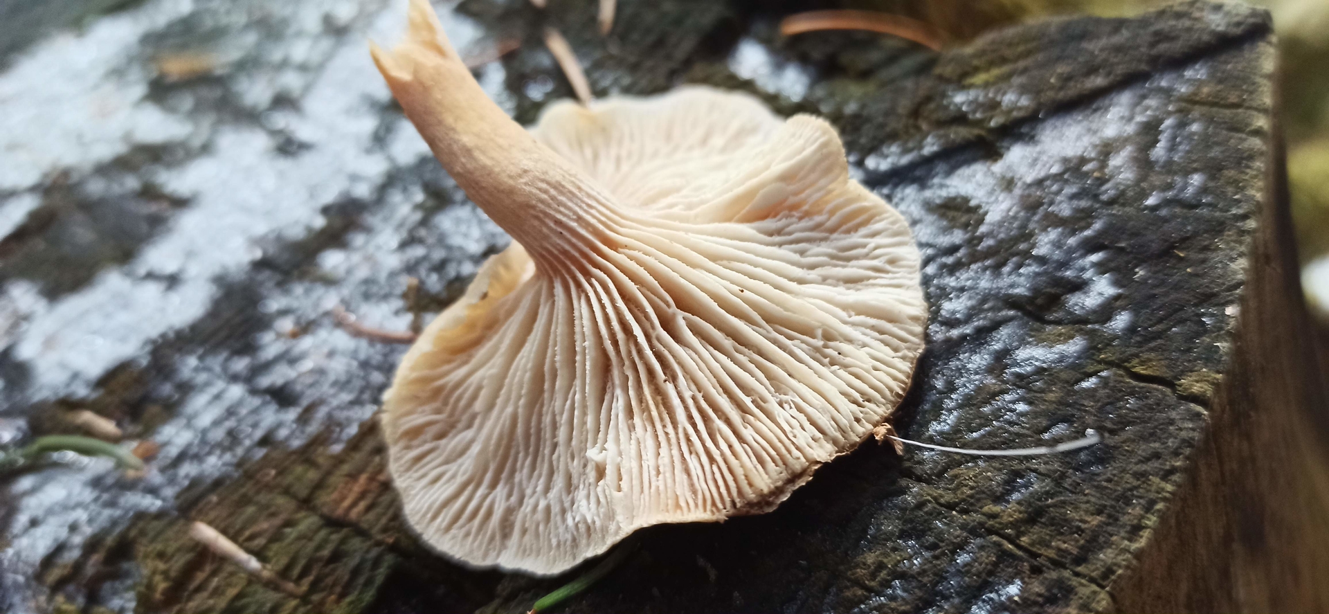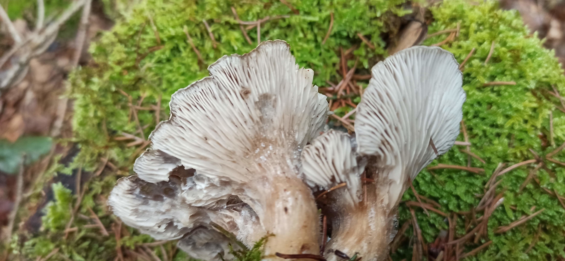 ich tippe auf Winterausternseitling. Da wo die wachsen steht eigentlich nur Fichte rum. .. Kann das die Fichten Art sein? Lamellen etwas gräulich. Lg
