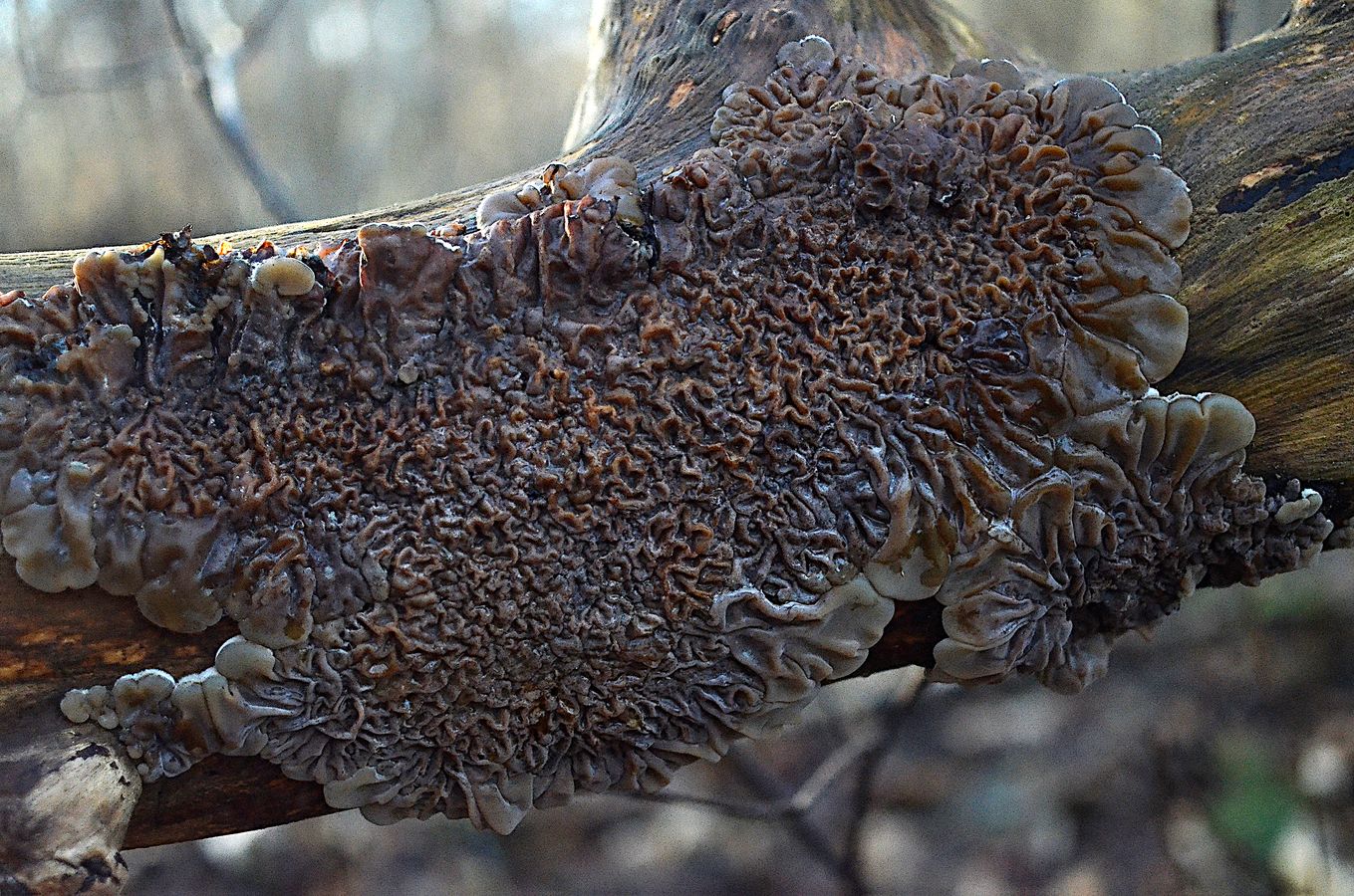 Aufgrund der Struktur bin ich beim Gezonten Ohrlappenpilz,