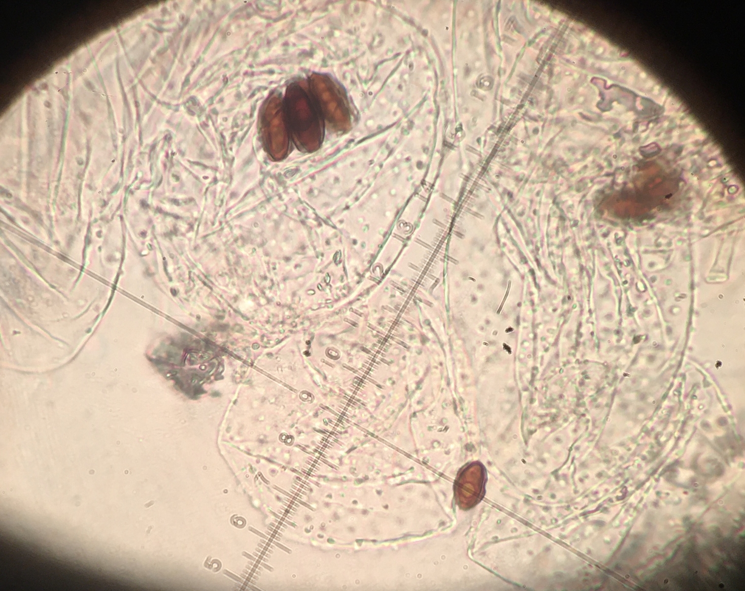 Nach makroskopischer Recherche dachte ich, es könnte Coprinopsis filamentifera sein, doch dazu passen die mikroskopischen Merkmale nicht. Dann zog ich Coprinopsis lagopus in Betracht, aber auch da passen die Sporen nicht. Jetzt weiß ich nicht mehr weiter…