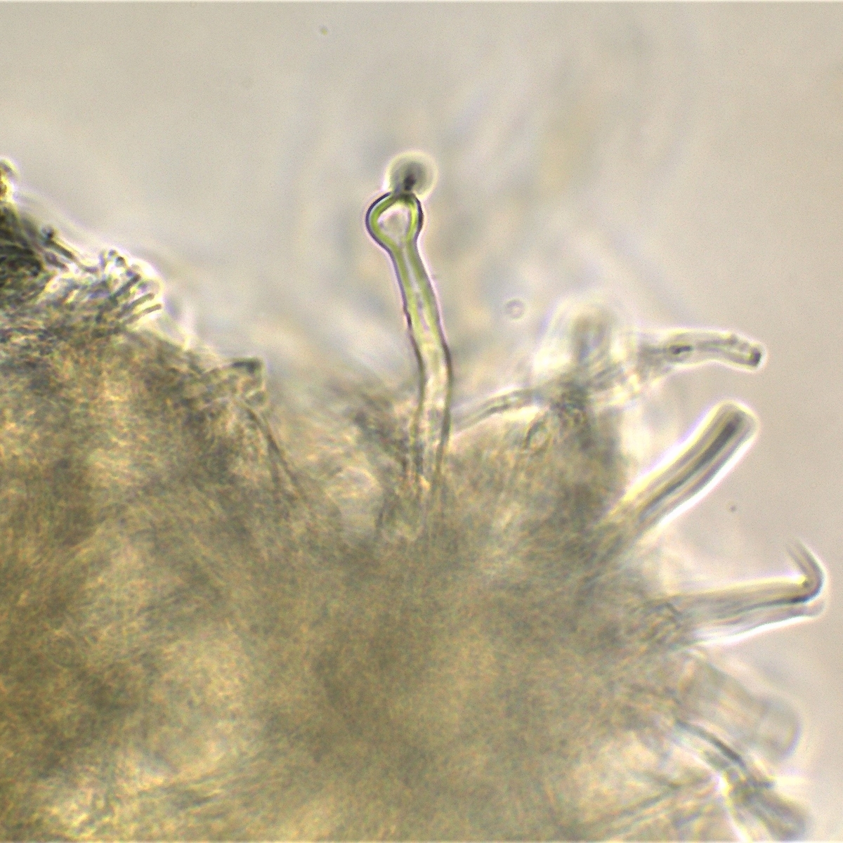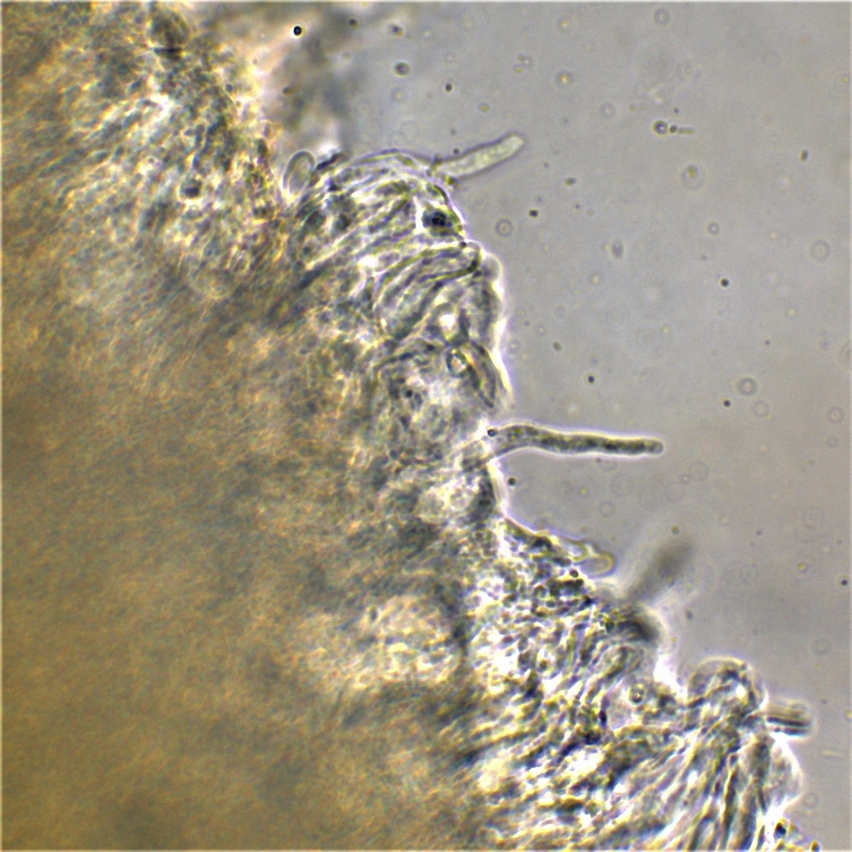 Tendenziell würed ich das eher für Schizopora radula halten, jedenfals vom makroskopischen Eindruck her und wegen den zahlreichen kopfigen Elementen (die bei paradoxa eher selten sind nach meinen Erfahrungen). Solche spindeligen Zystidiolen (manchmal auch mit Hälschen, selten mit Kristallschopf) kommen bei radula vor, noch häufiger aber bei Schizopora flavipora (scheidet hier wegen Porengröße und -Form schon aus), bei paradoxa sind die auch etwas seltener.