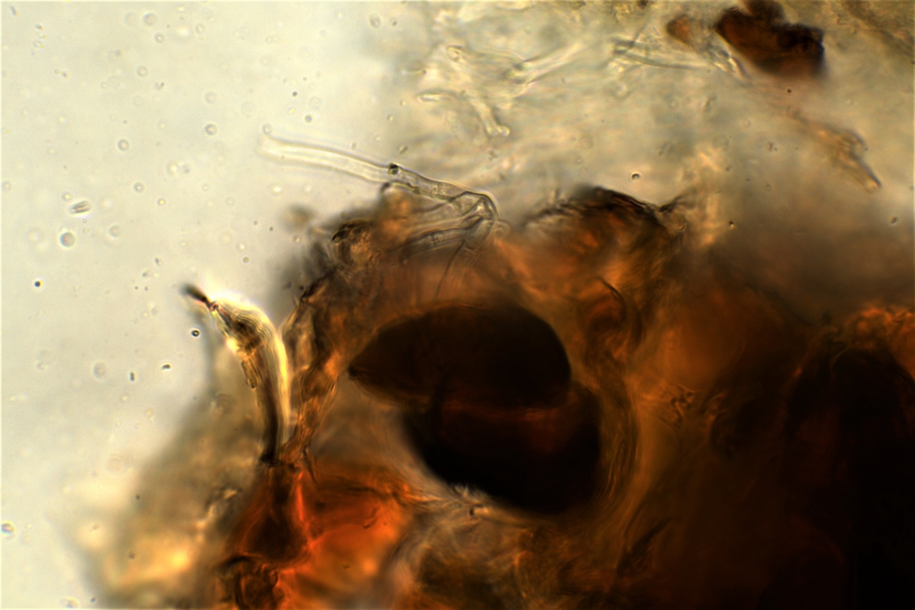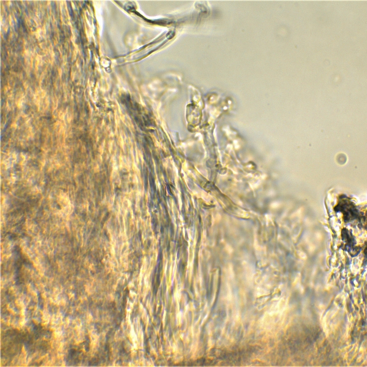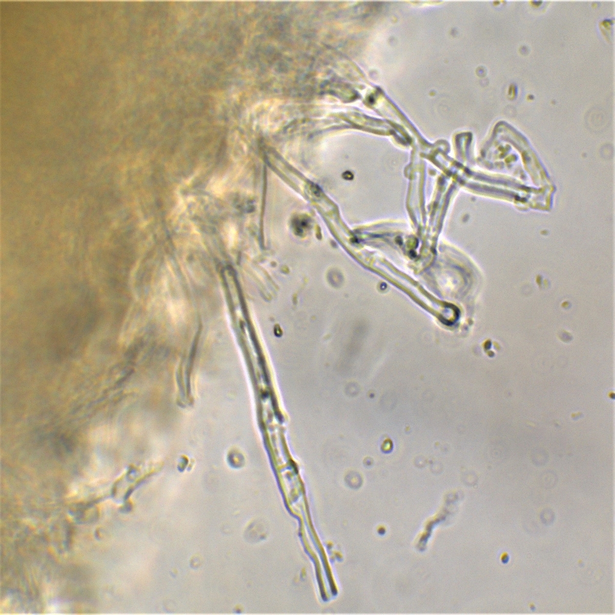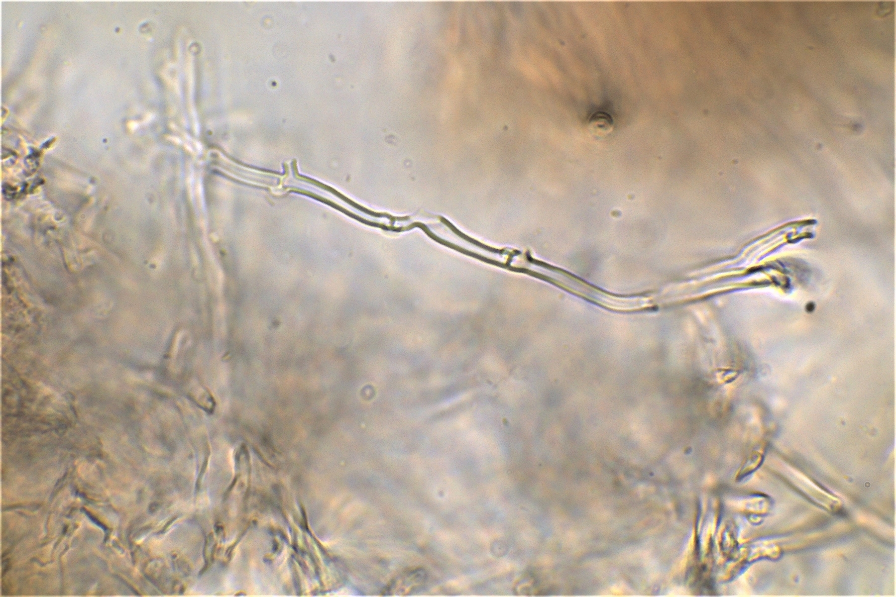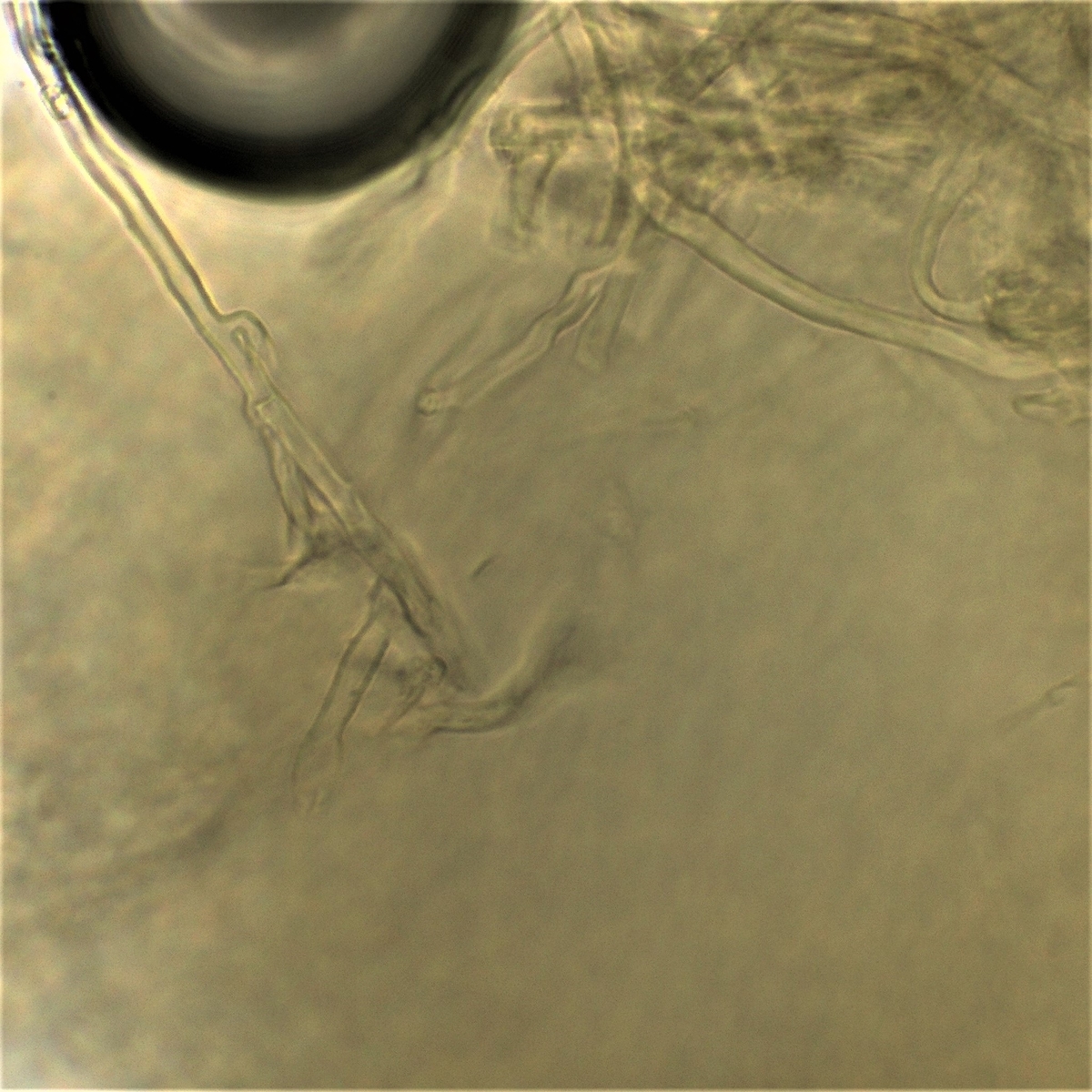 alle Hyphen mit Schnallen in den Septen hyalin und stellenweise mit kopfigen Enden,