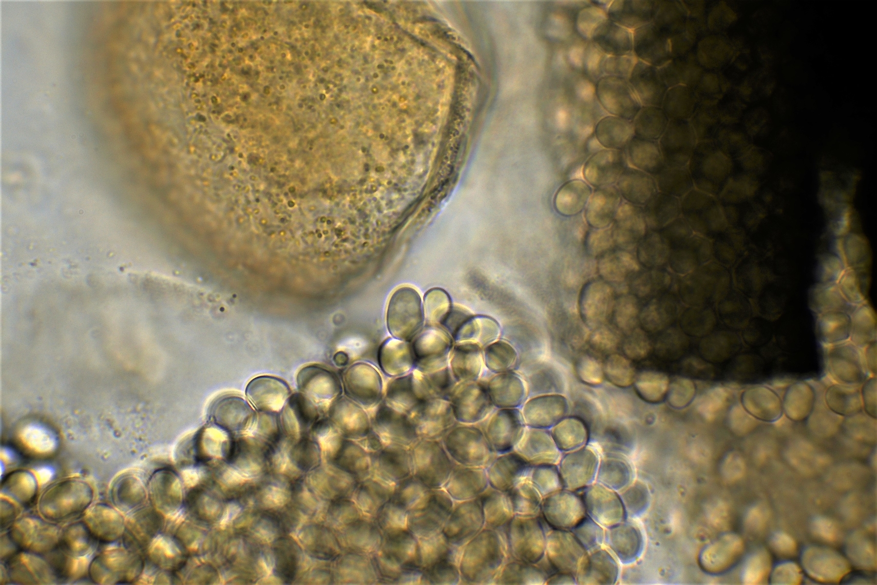 gestern hatte ich Wildschweinköttel gefunden auf einer Lichtung im Wald. Genau an der Stelle wo ich auch am 8. November die Stibella finetaria gefunden habe. Diese befand sich auch auf Wildschweinköttel. Von Nobi habe ich dafür die Bestätigung bekommen und den Anreiz es mit den Dungpilzen doch einmal aus zu probieren. Heute war ich noch einmal zur der Stelle und habe die Köttel mit genommen in einem Styroporbehälter. Die ersten Mikrobilder habe ich heute auch gemacht um zu sehen was sich darin befindet. Wichtig wäre es jetzt zu wissen bei welcher Temperatur, Feuchtigkeit und Lichtverhältnissen ich die Behälter aufbewahren soll und weiteres Vorgehen.