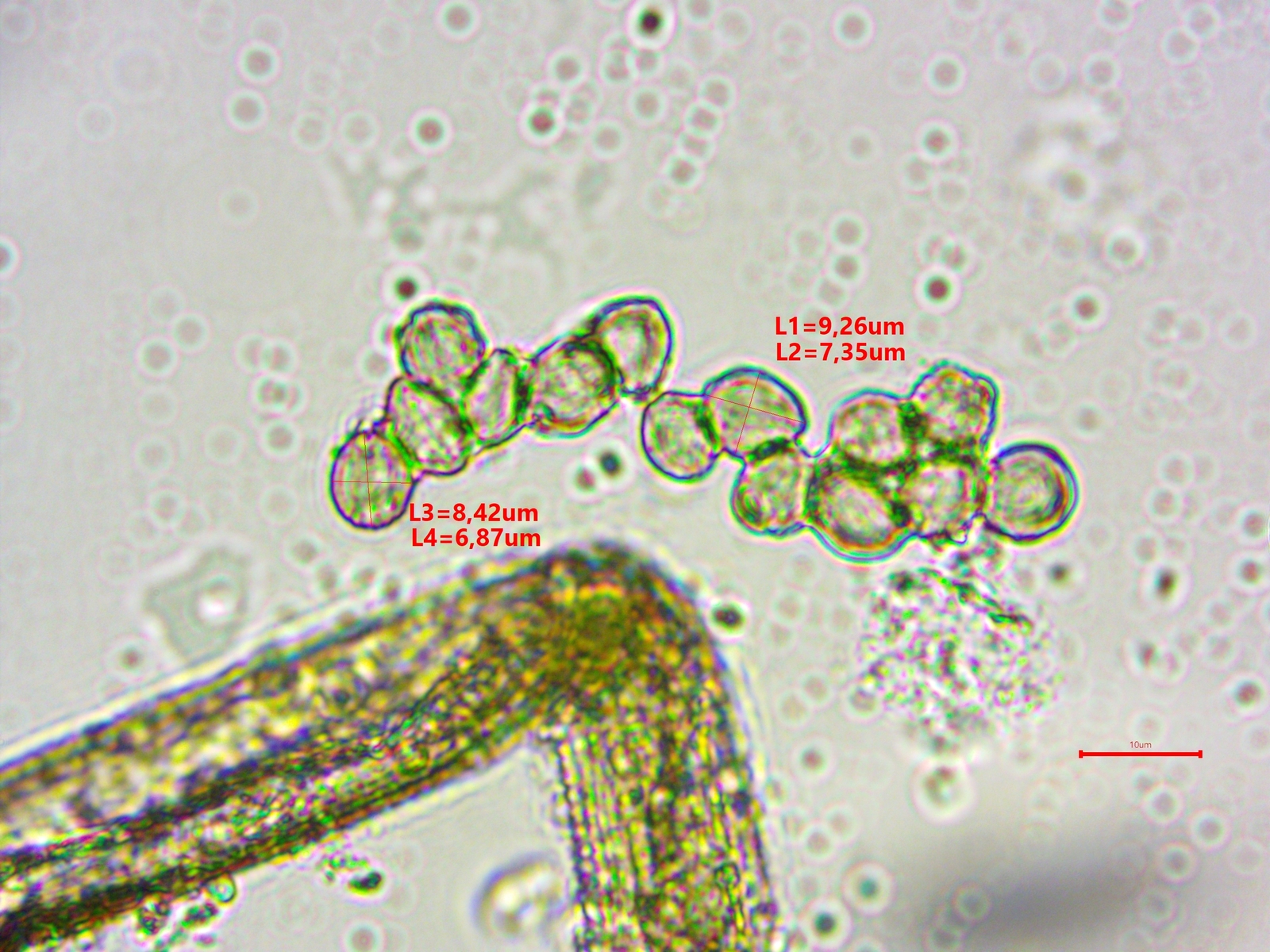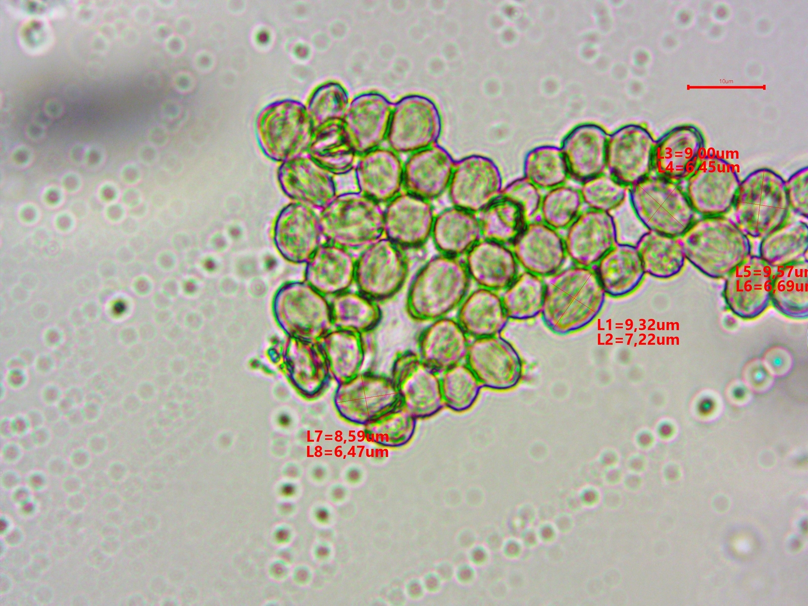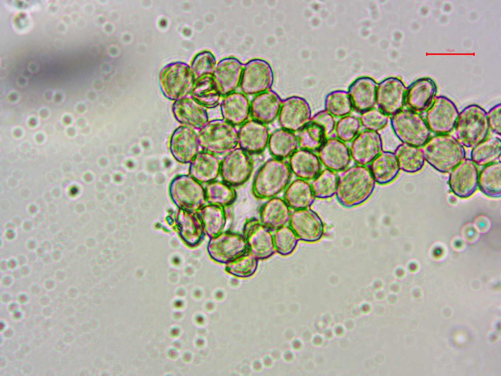 Die Sporengröße liegt bei 8,5-10 x 6,5-7,5 µm und ich meine, eine Streifung erkennen zu können.