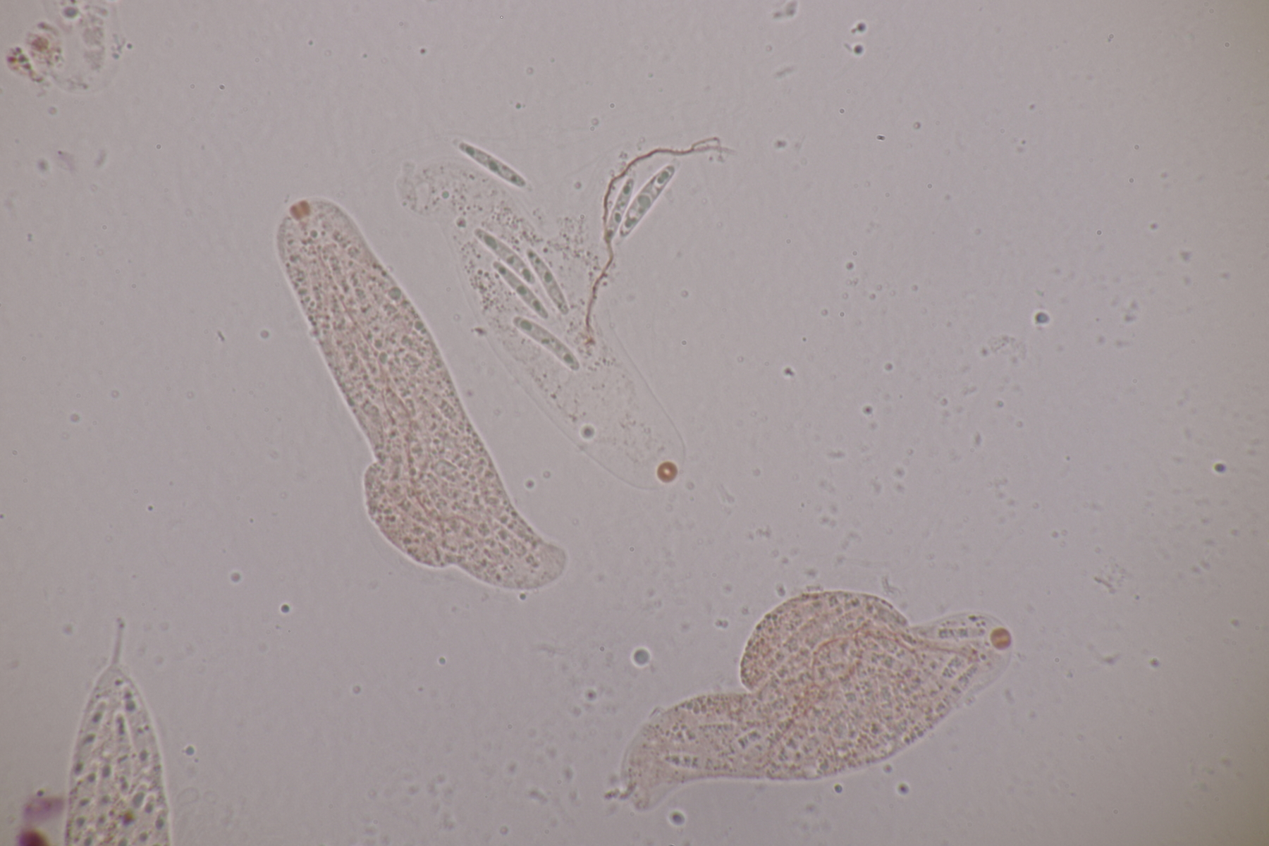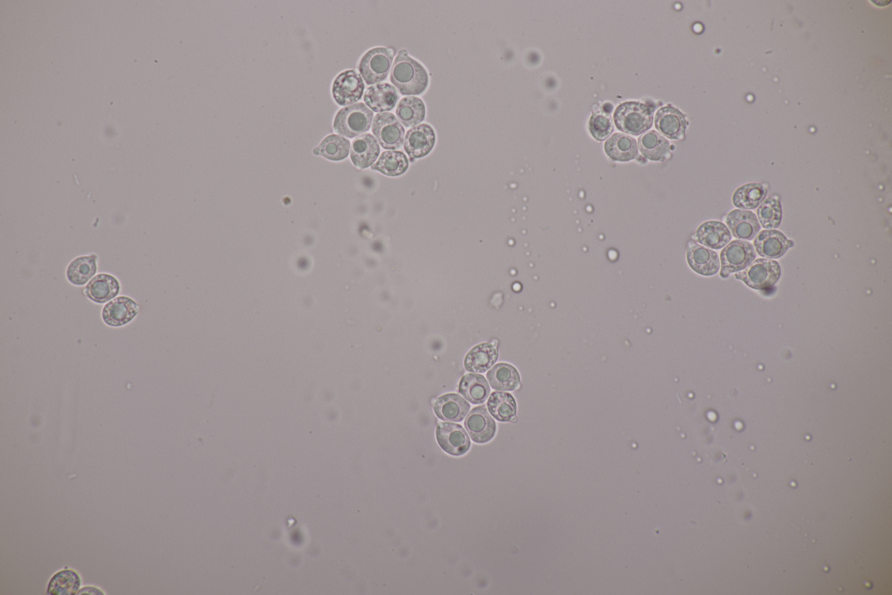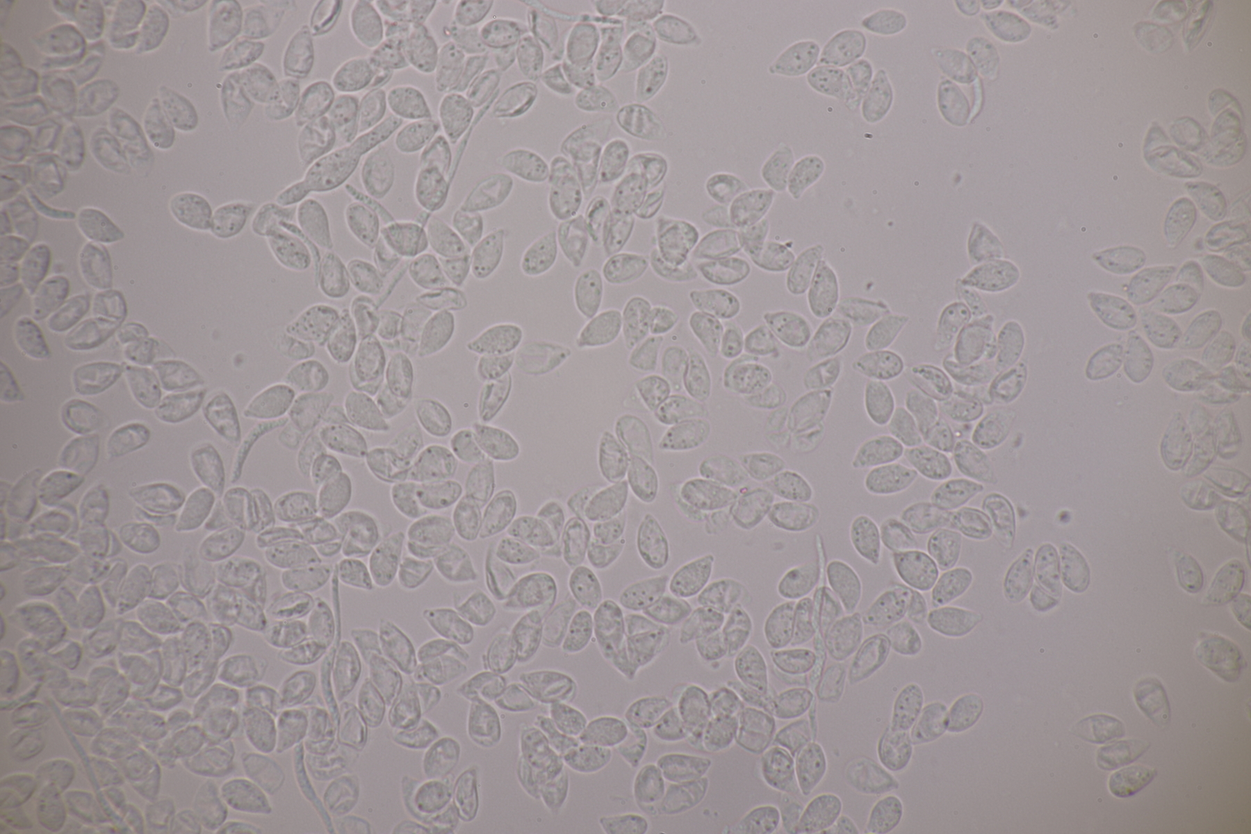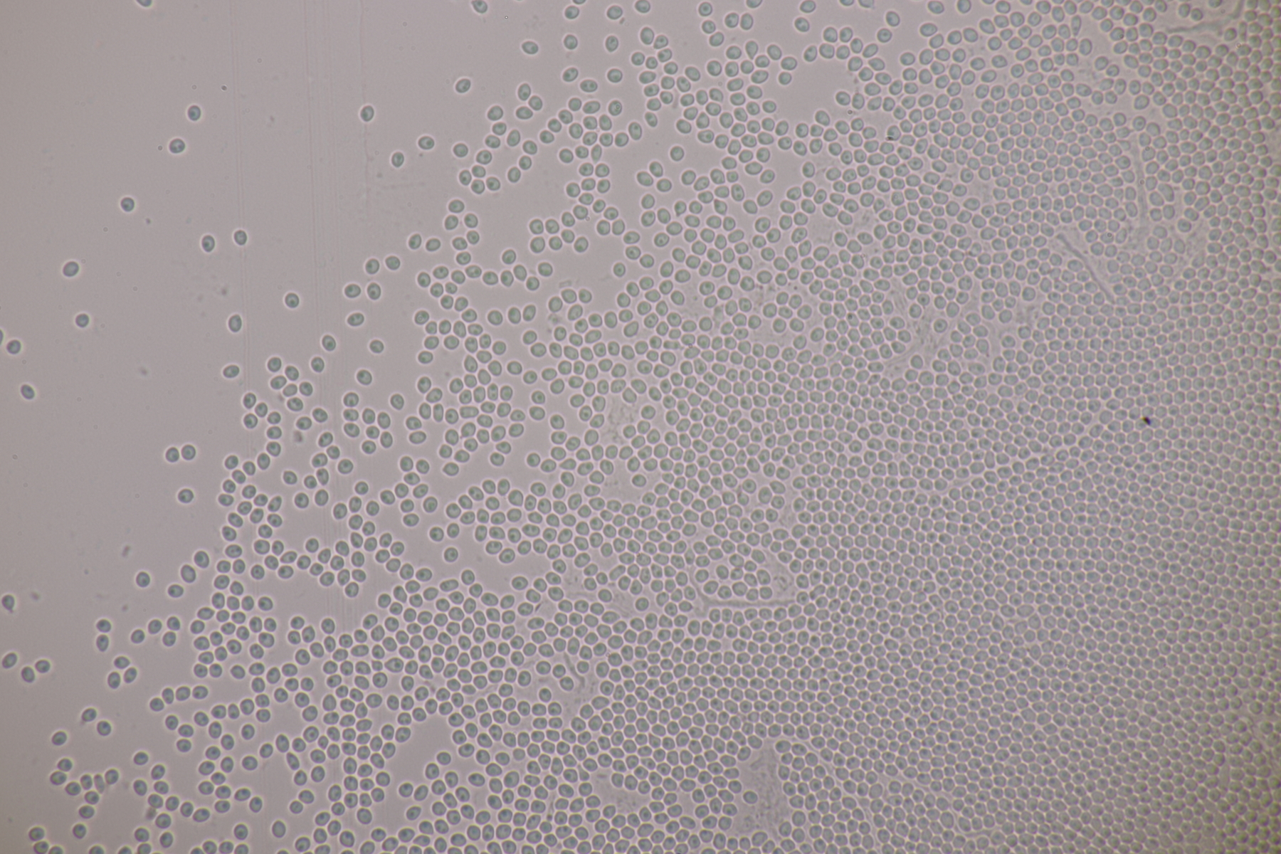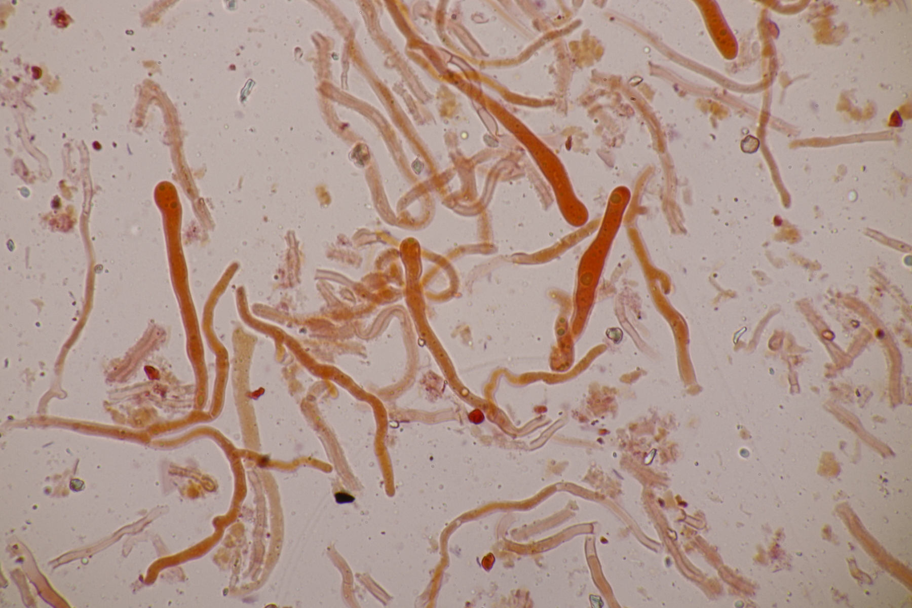 3. Bei den schwarzen Kügelchen handelt es sich um eine nicht näher betrachtete Anamorphe. Die weiße Masse scheint aber die Anamorphe zu den weißen Bechern zu sein. Diese haben ziemlich kleine, elliptische Sporen mit symmetrischen Tropfen, also Lachnellula resinaria var. resinaria