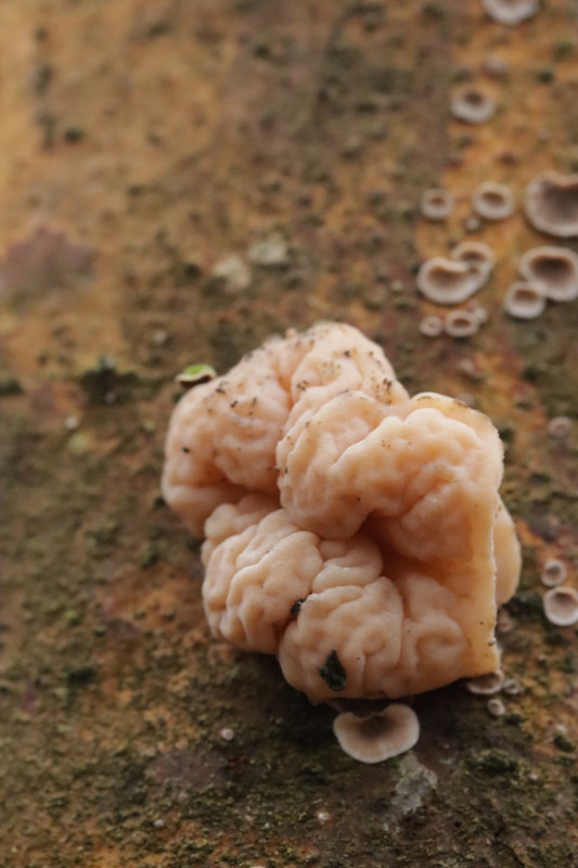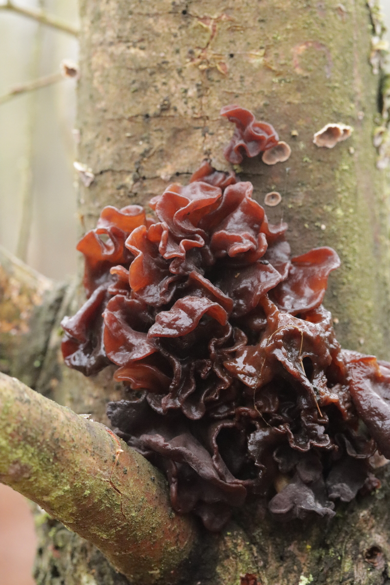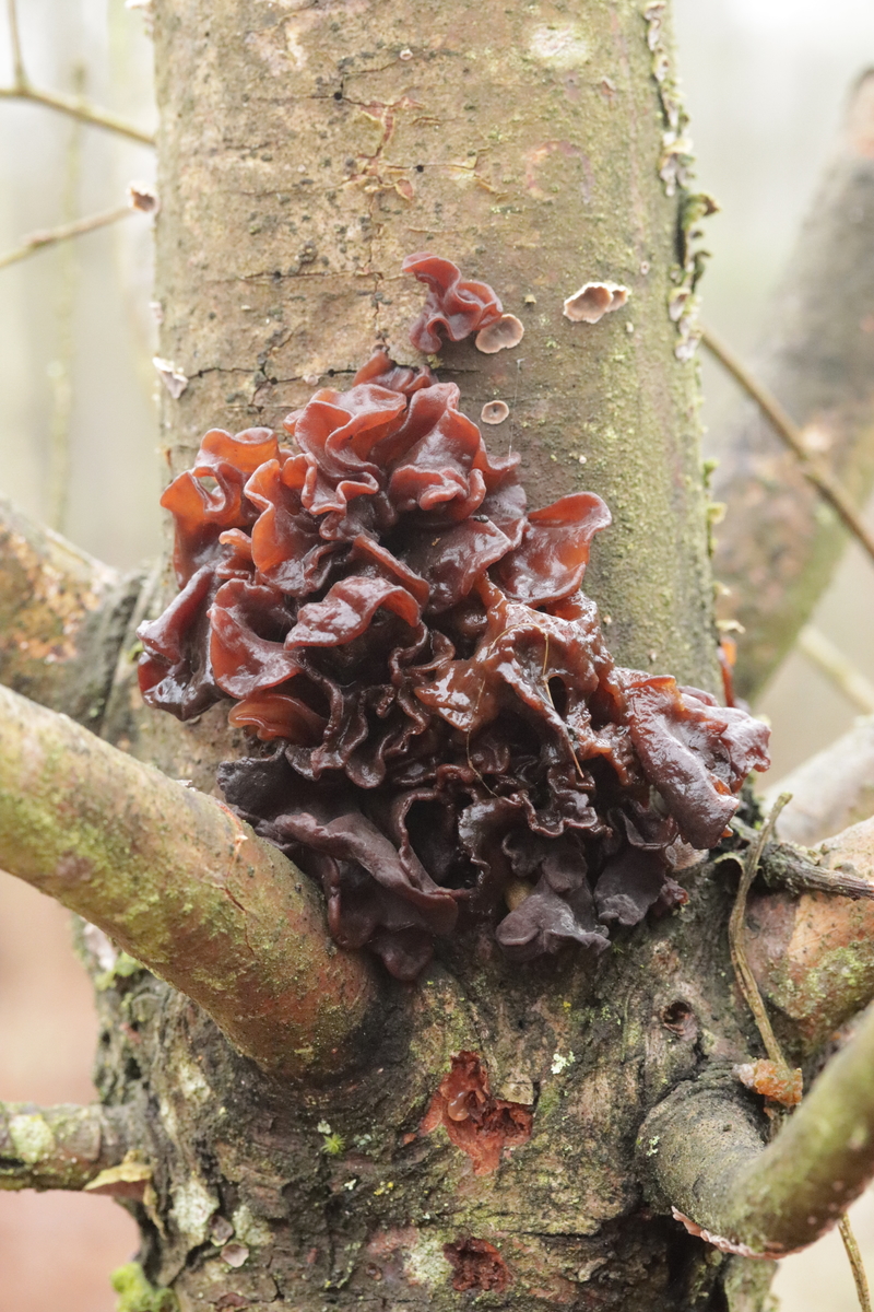 4. Phaeotremella foliacea s. str. Endlich habe ich diesen Pilz auch mal gefunden. Ganz witzig, denn den Tag vorher war ich auf einer 17 km Wanderung von Lembeck nach Haltern genau wegen dieses Pilzes. Jemand hatte bei ObsIdentify eine Phaeotremella an Nadelholz gepostet (dort dann aber falsch als Exidia bestimmt) und ich wollte mir den Pilz natürlich nicht entgehen lassen. Leider konnte ich ihn dann aber an der mutmaßlichen Fundstelle nicht entdecken. Jetzt also fast um die Ecke bei mir.