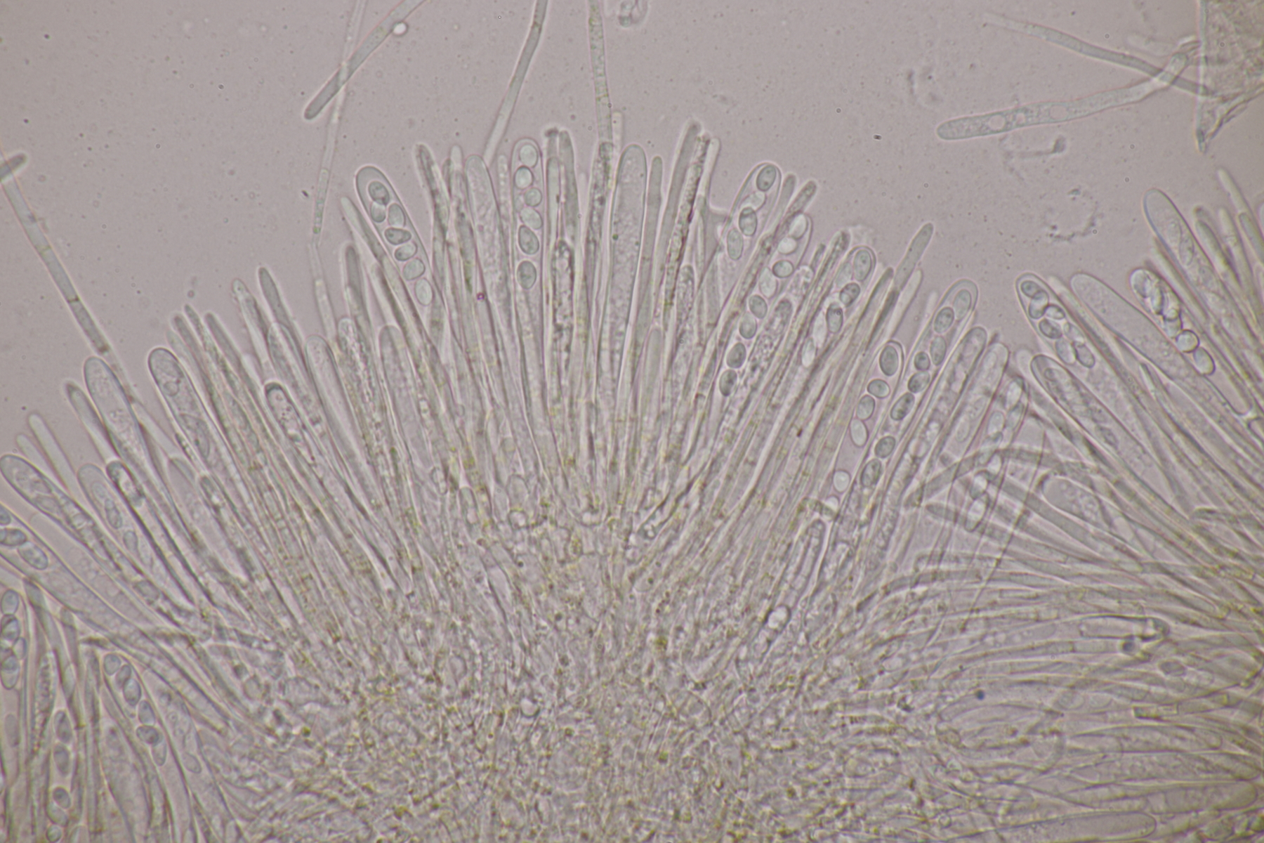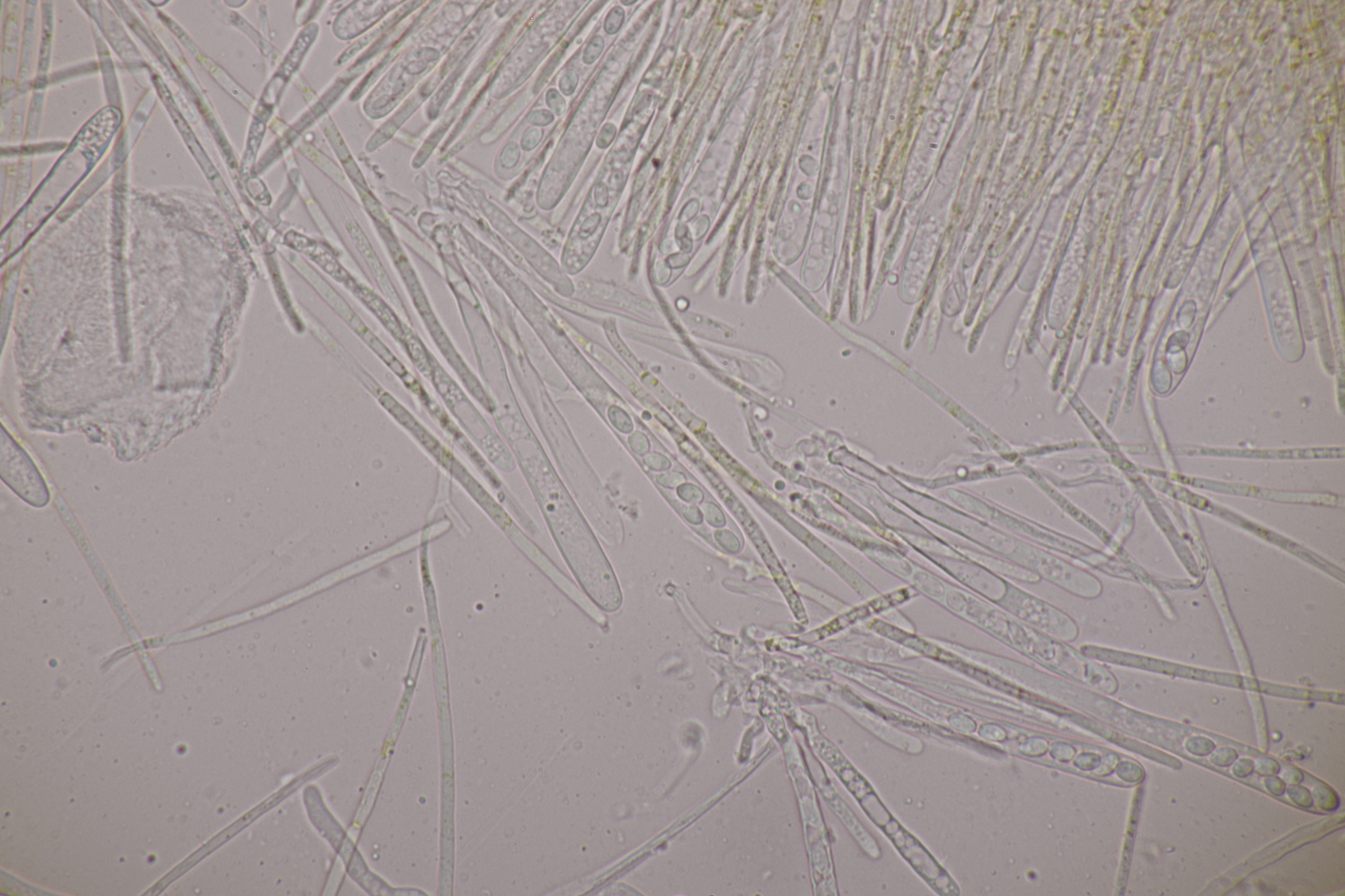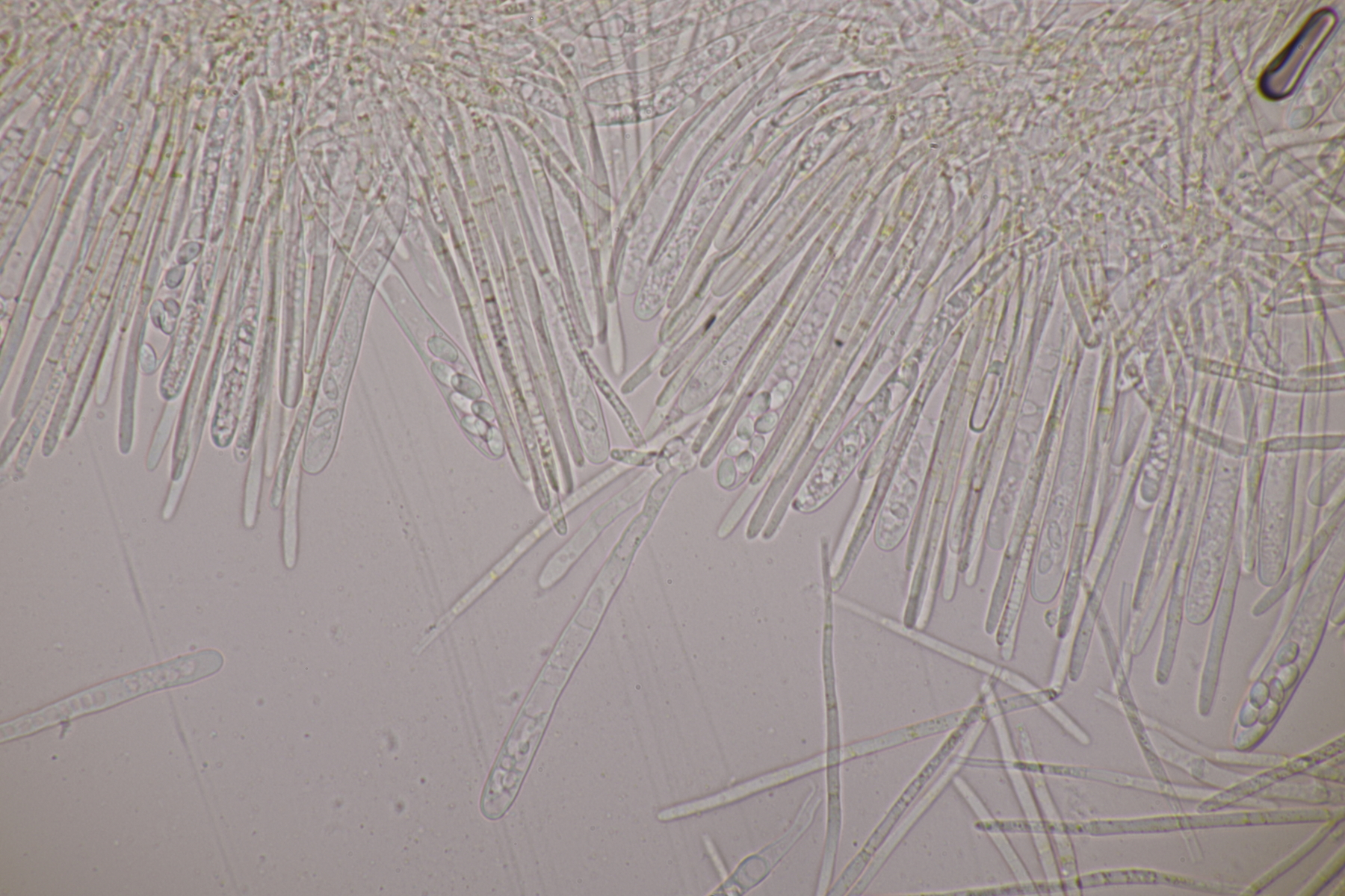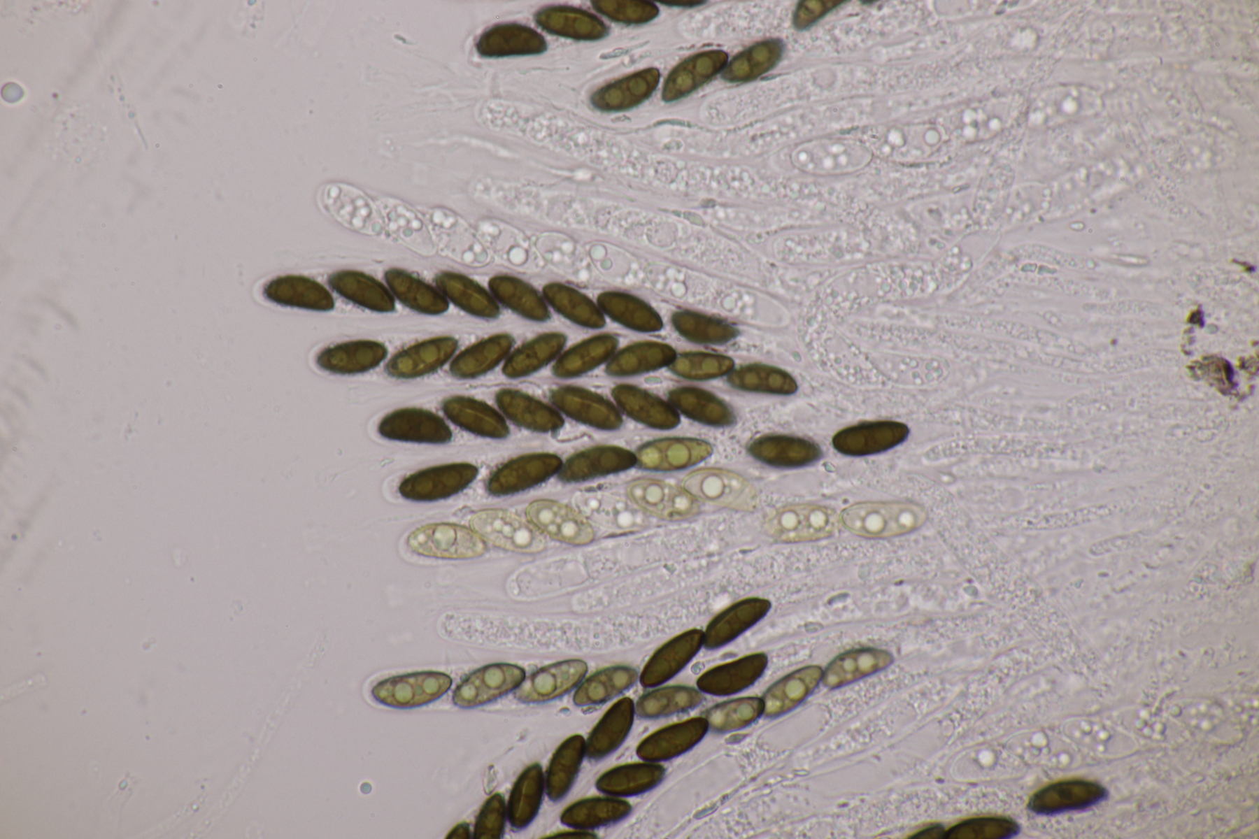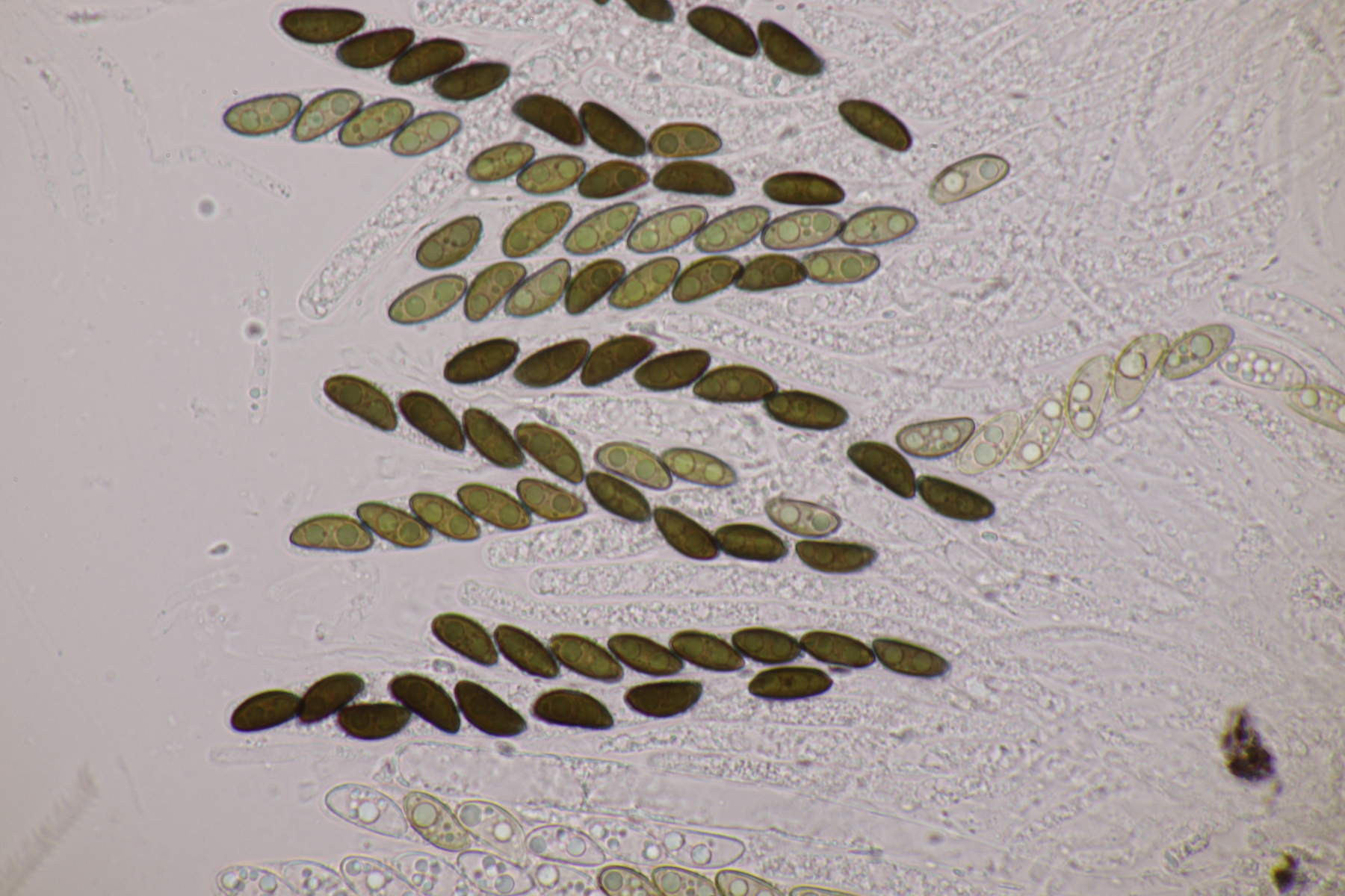 9. Ditopella ditopa ex Alnus glutinosa. Mit den 16-sporigen Asci leicht zu bestimmen.