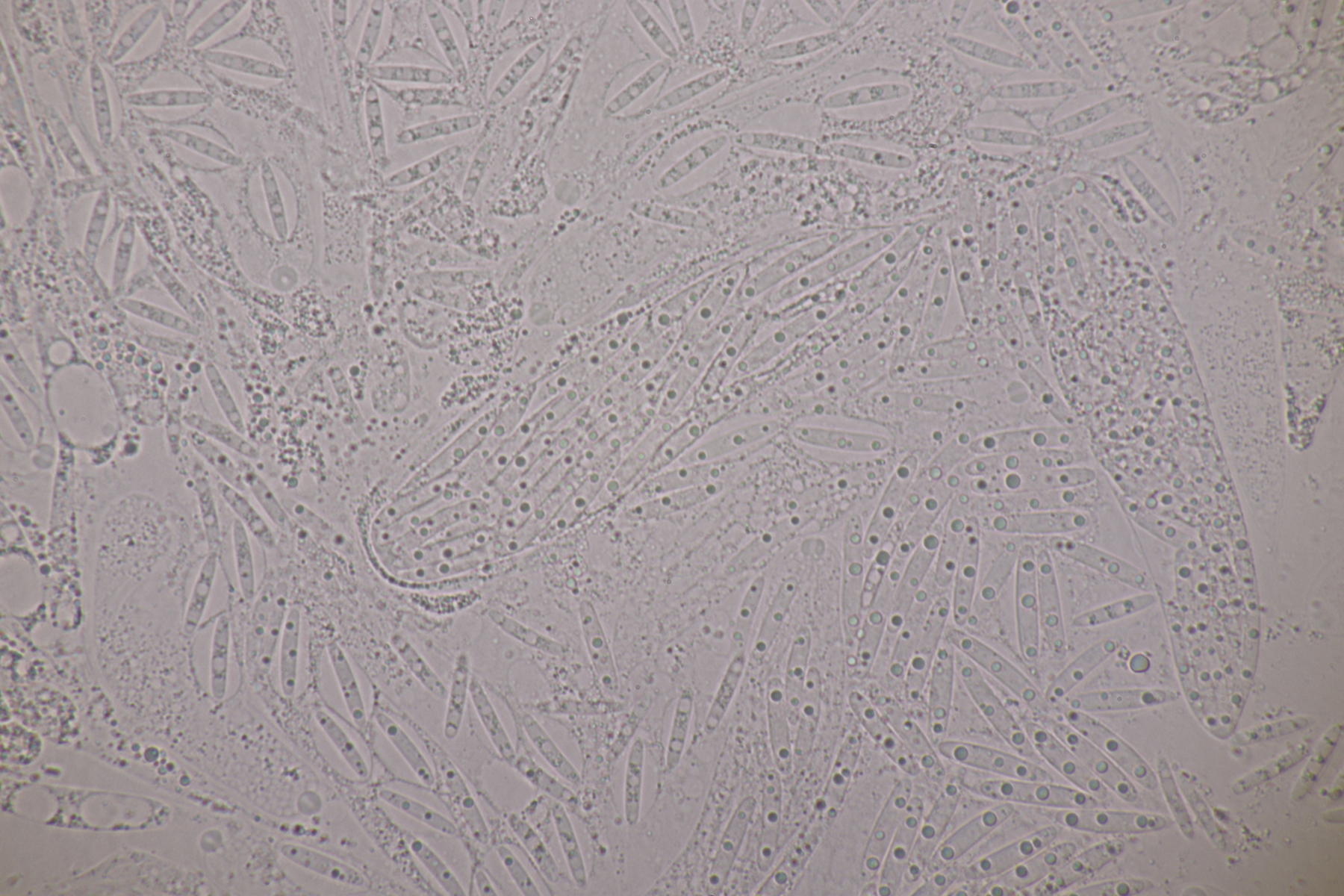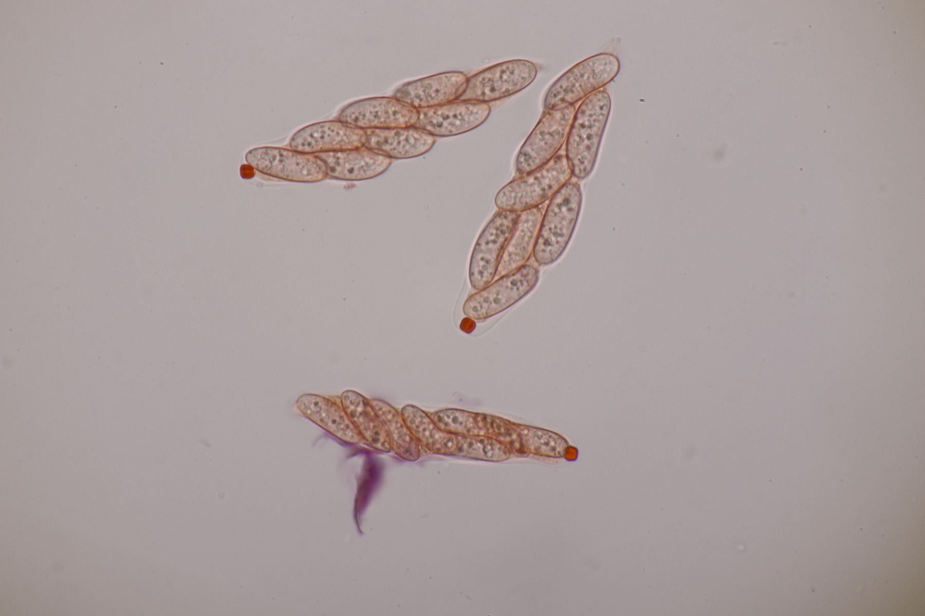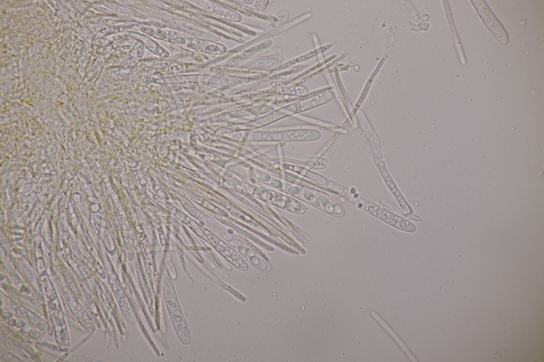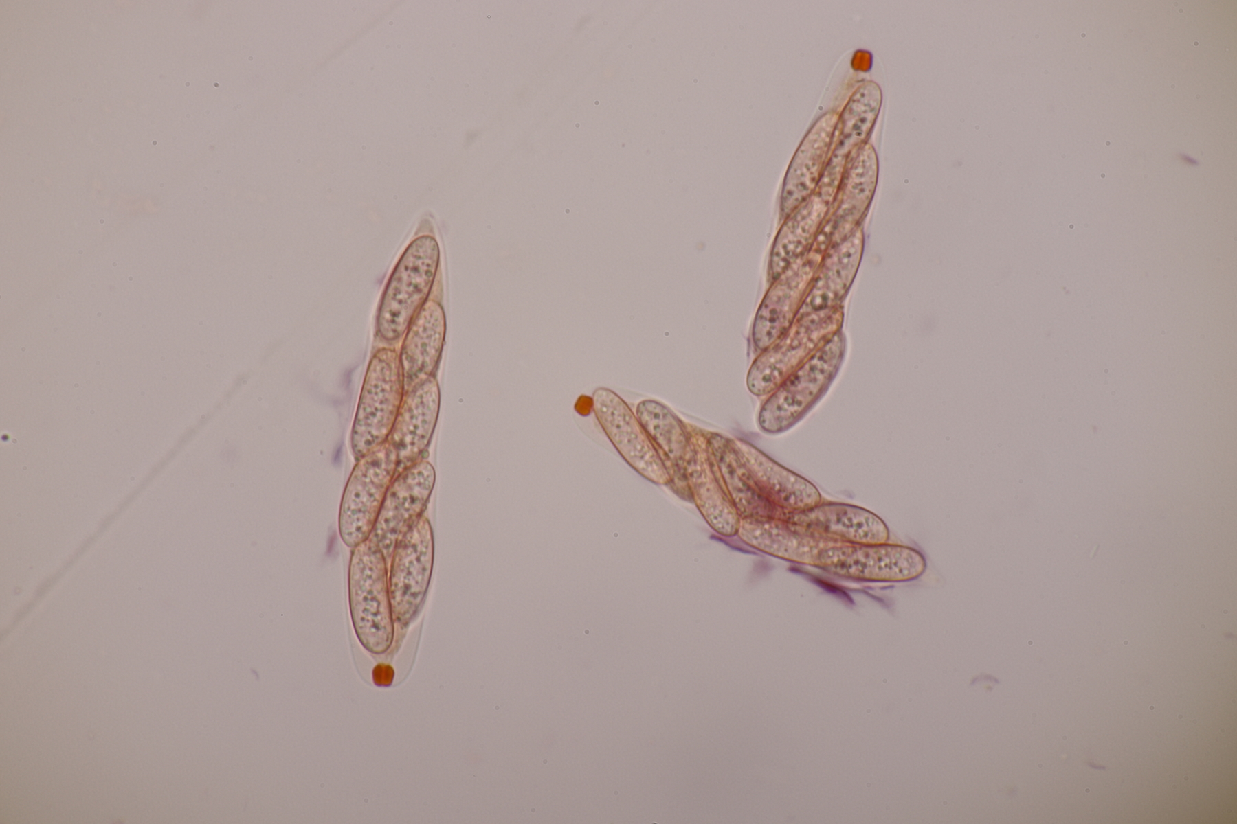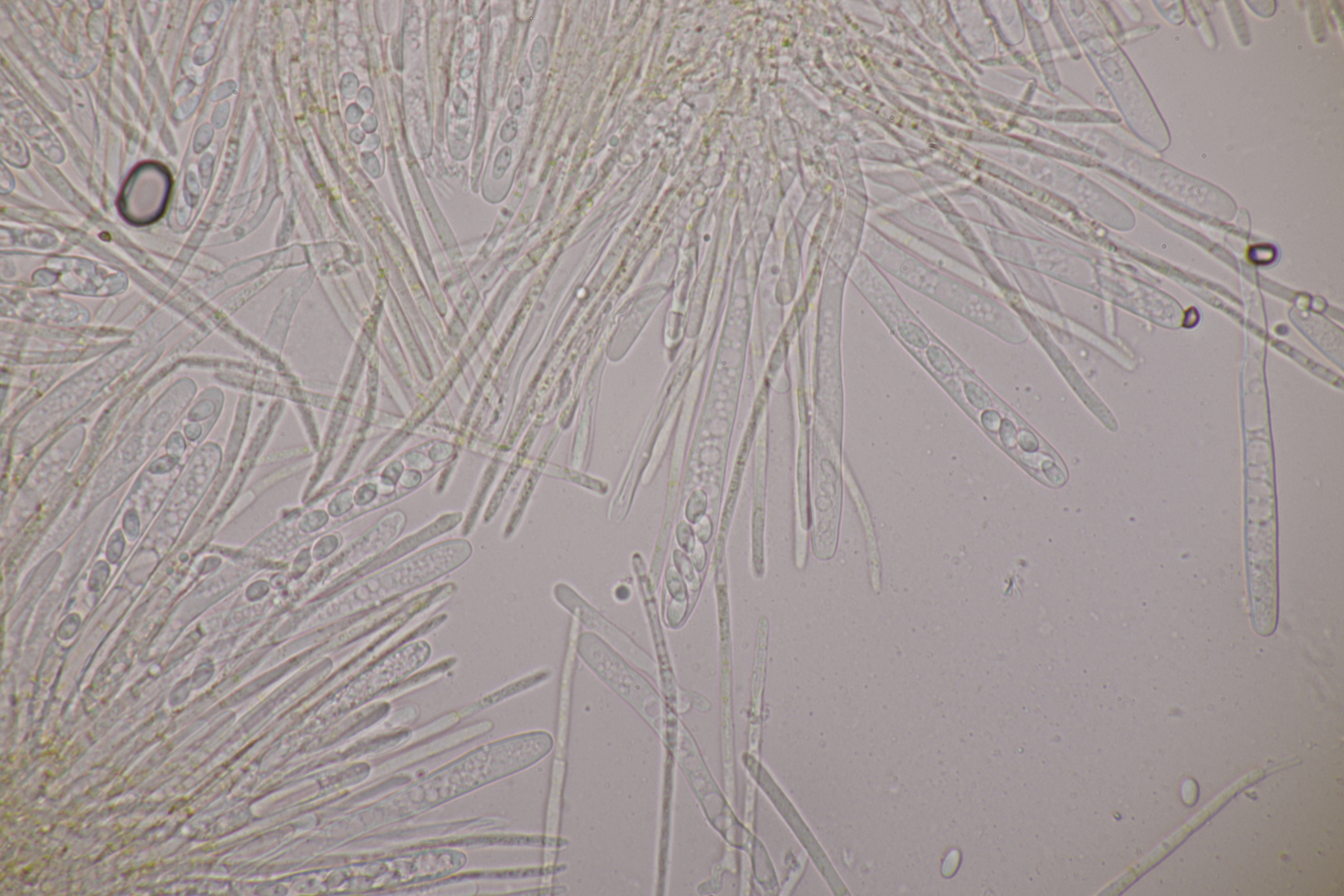 9. Ditopella ditopa ex Alnus glutinosa. Mit den 16-sporigen Asci leicht zu bestimmen.