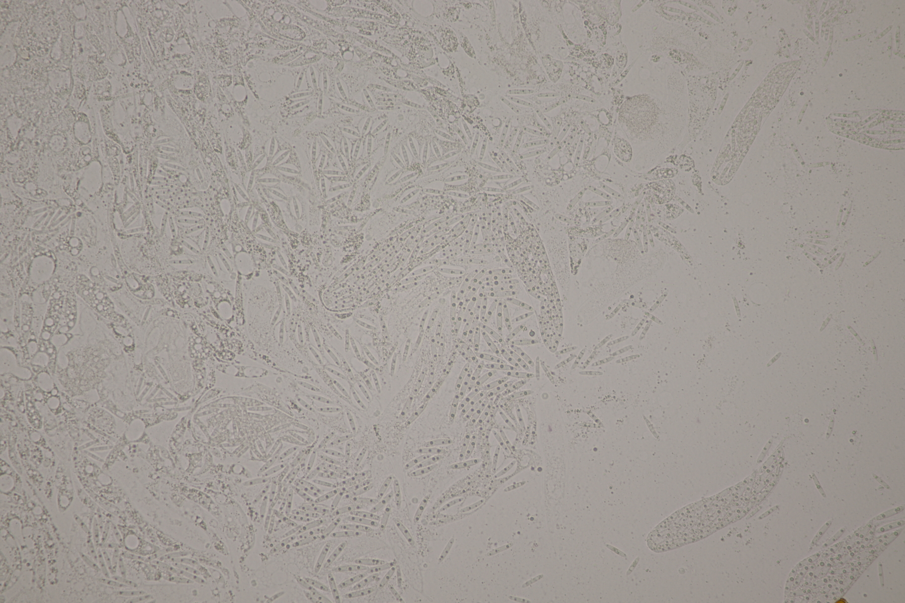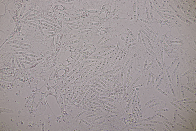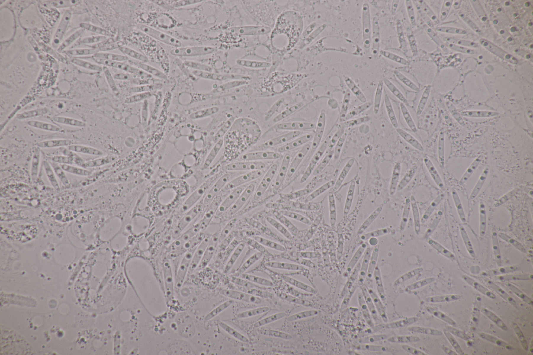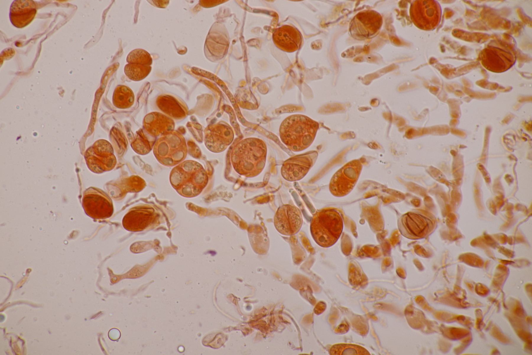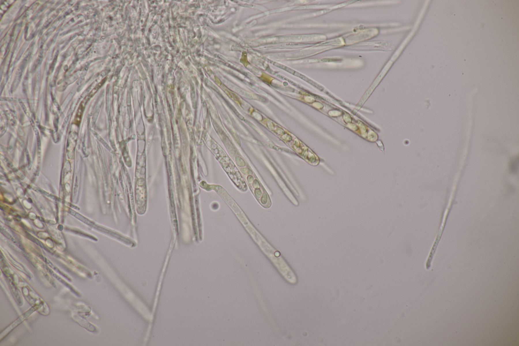 9. Ditopella ditopa ex Alnus glutinosa. Mit den 16-sporigen Asci leicht zu bestimmen.