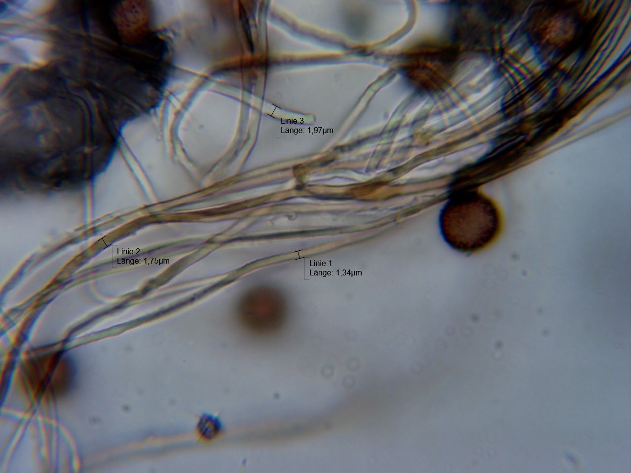 Das Capillitium enthält keine kalkhaltigen Knoten. Das schließt dann auch die Gattung Physarum aus. Physarum bildet auch keine Columella aus.