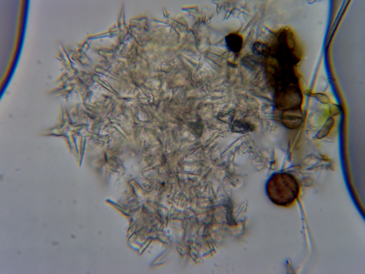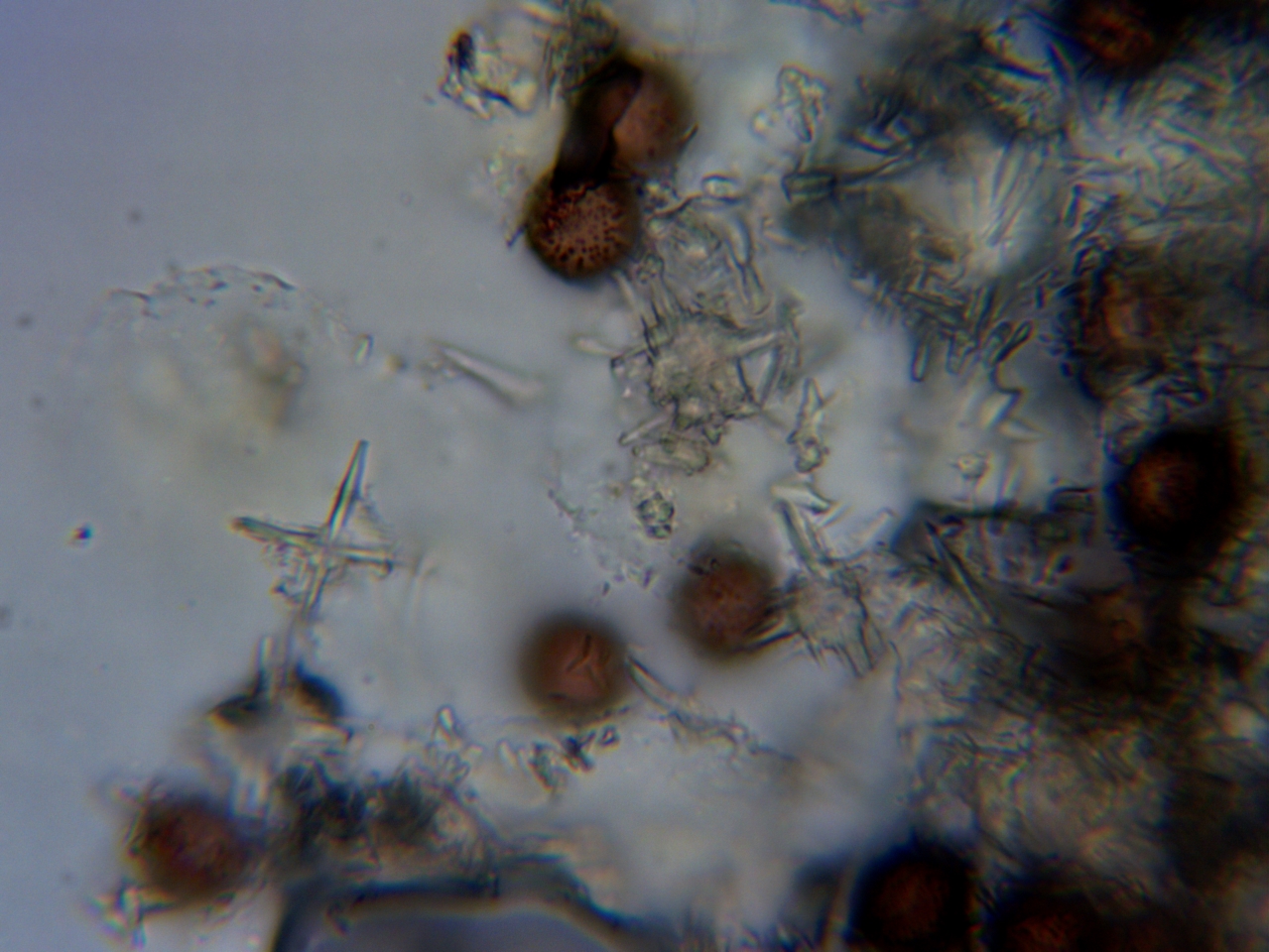 Der weiße Kalkbelag auf der Peridie muß bei Didymium aus kristallinem Kalk bestehen. Solche Kristalle meine ich auf Deinen Mikrofotos zu erkennen, leider aber nicht deutlich. Die Peridie bei Diderma besteht dagegen aus granuliertem Kalk.