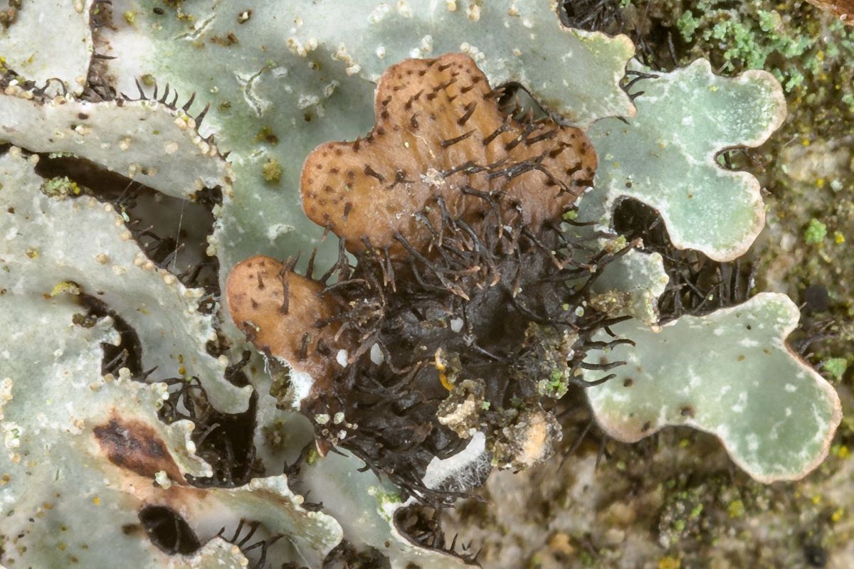 Es sind ja zahlreiche kleine Pseudocyphellen vorhanden. Die Unterseite ist am Rand braun, zur Mitte hin schwarz: