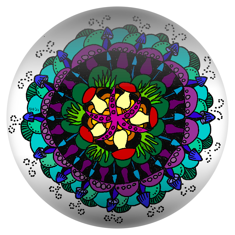 hier noch ein ganz unpilzliches Stück Kunst. Es handelt sich um eine Turtlegraphik, d.h. man läuft immer eine gewisse Strecke, ändert dann die Laufrichtung um einen Winkel x, läuft wieder die gleiche Strecke, ändert die Laufrichtung etc. Für die Winkel sind hier die Ziffern des Bruchs 1/7927 in Basis 36 genommen, wobei die 0 dem Winkel 0 entspricht, die 1 dem Winkel 36° etc. Da es sich um einen Bruch handelt, ist das Muster hier periodisch und man bekommt eine symmetrische Struktur. Nimmt man dagegen eine irrationale Zahl wie Wurzel 2, e oder pi, dann ergeben sich ganz unregelmäßige Gebilde.