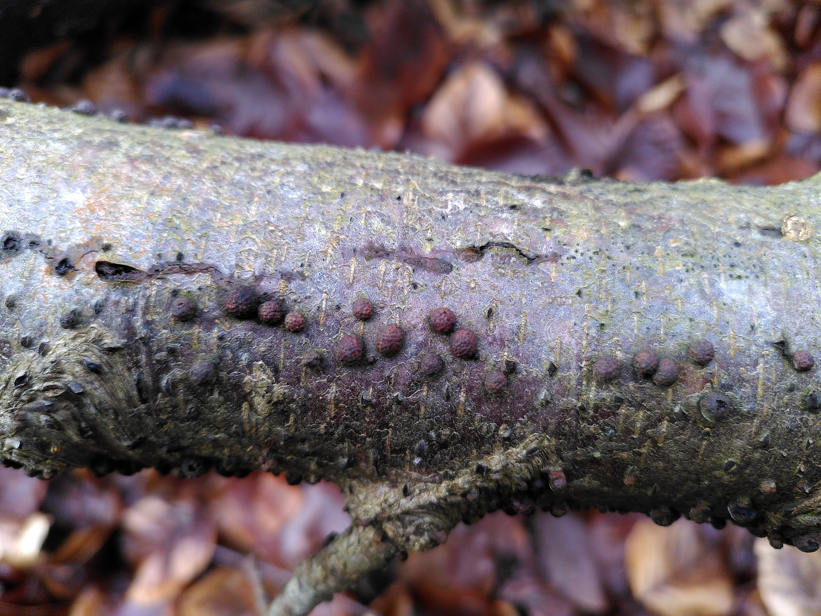 Warziger Drüsling , wahrscheinlich ist Stoppeliger Drüsling , ? An Bild ist zu sehen Punktierte Oberfläche und Form passt nicht so gut an Warziger und meine per Bild das Substrat Laubholz ist , oder ?