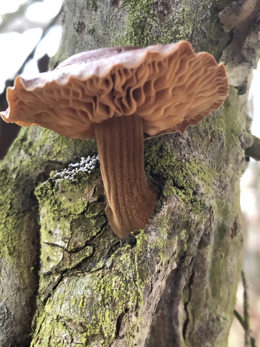 Ich habe heute diesen Pilz an meiner Zierweide auf dem Balkon gefunden. Ich hab bisher noch keinen Pilz mit so einem extrem grillten Stiel gesehen und schon gar keinen Holzbewohner.