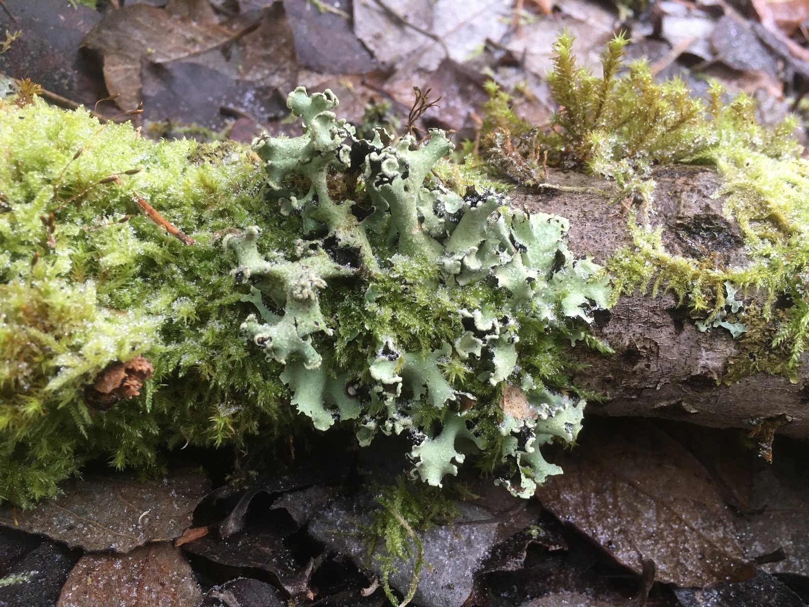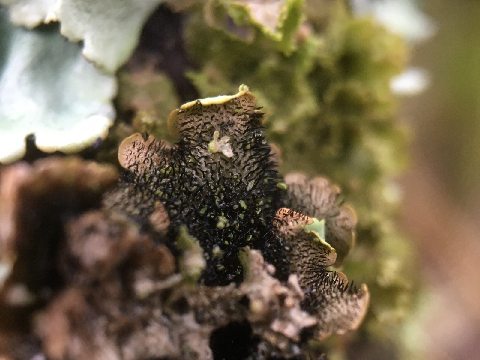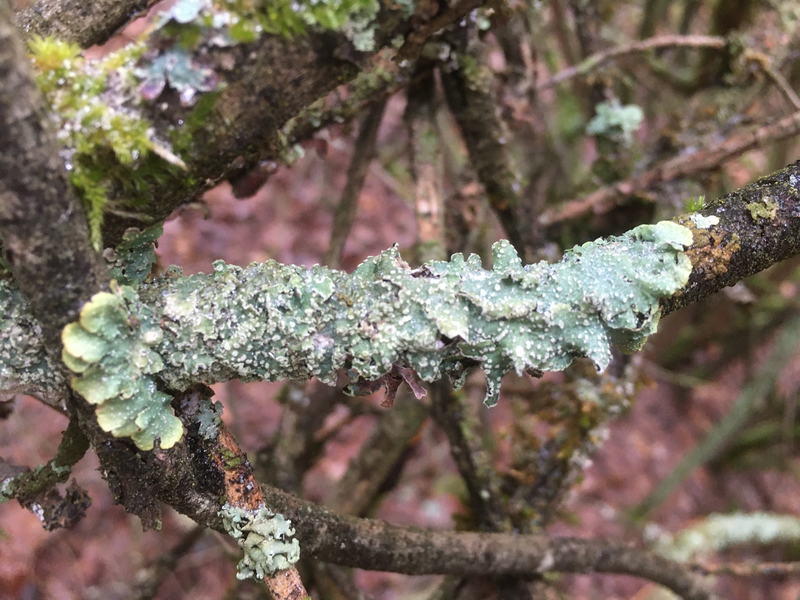 Deine Flechte #7 würde ich mal mit Parmotrema perlatum vergleichen; ich denke, ich sehe einige Cilien, die unter dem Thallusrand hervorlugen. Auch die wenigen Rhizinien auf der Unterseite sprechen eventuell dafür.