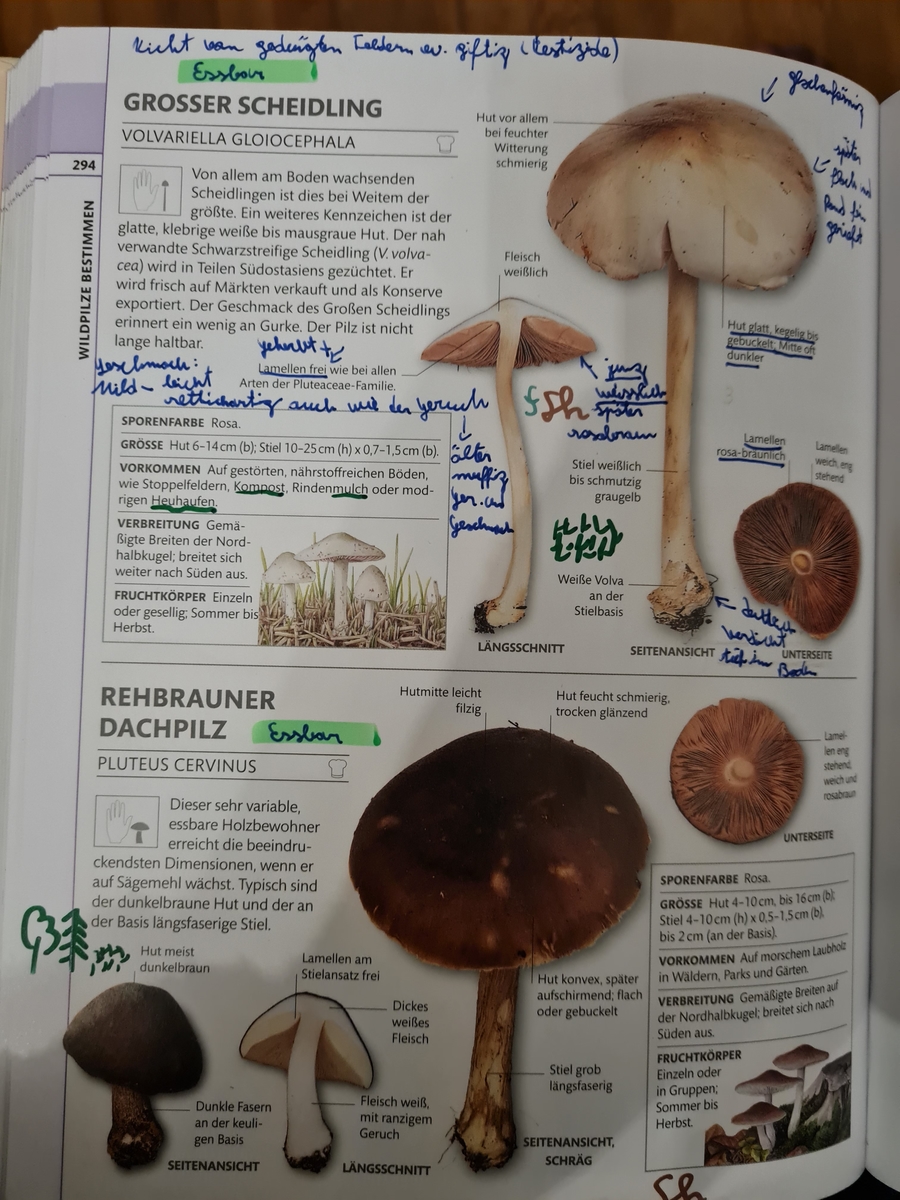 Ich habe ein gutes Bestimmungsbuch welches ich mit Infos aus YouTube-videos (Grüße an einen der quellen vom der pilzkanal) je Pilz individuell vervollständigt habe um diese