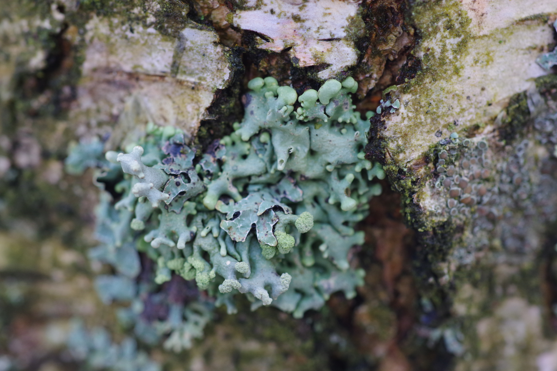 3) an jüngerer Birke (~20) vermutlich Hypogymnia physodes (wurde kürzlich hier irgendwo gezeigt)