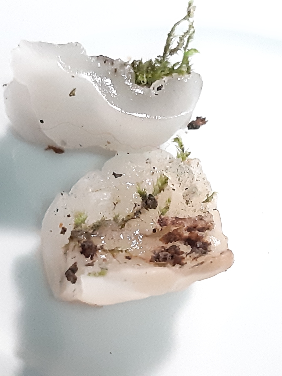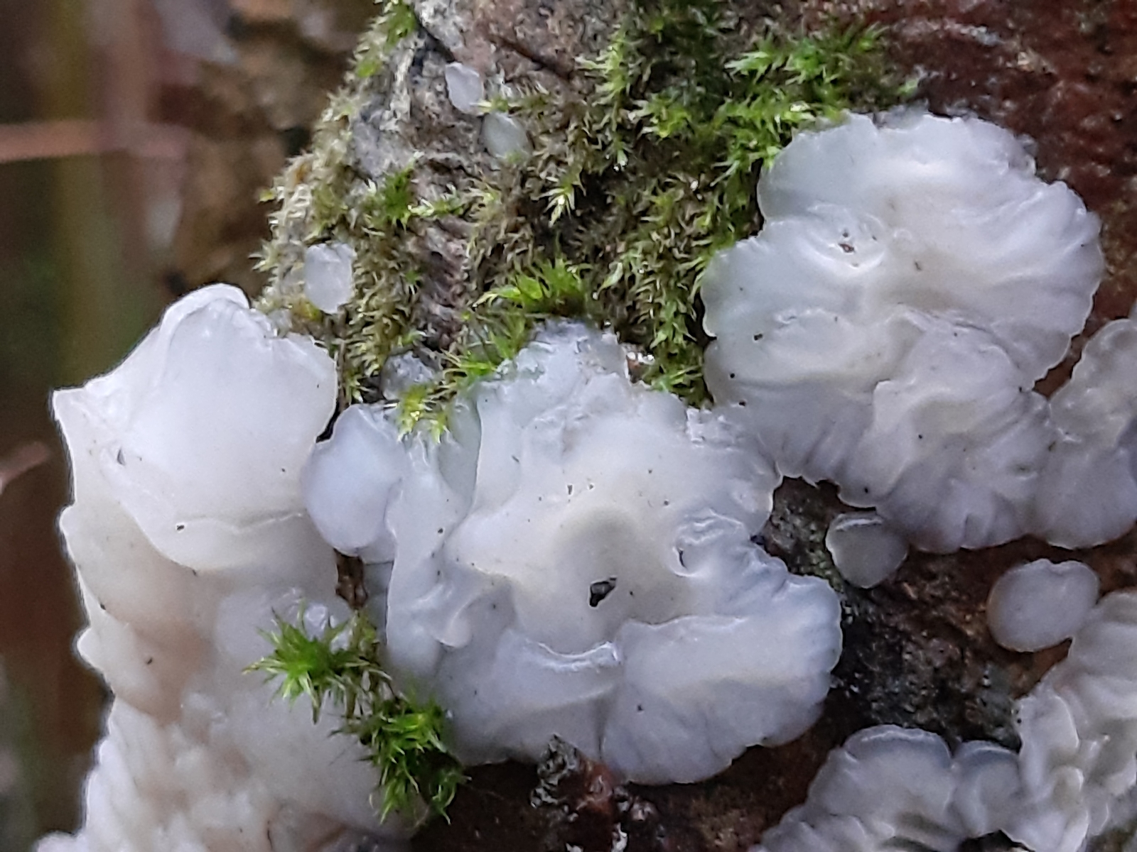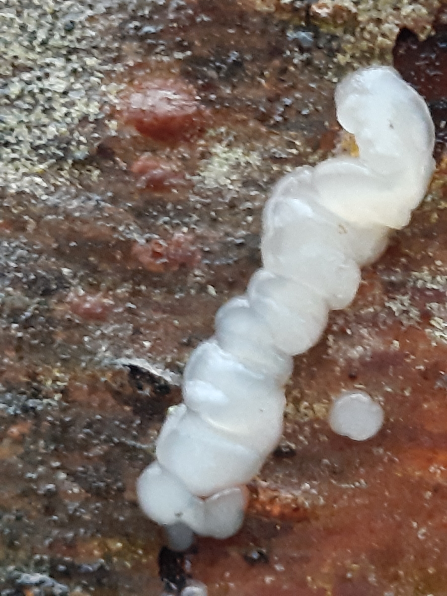 diese Art hatte ich schon letztes Jahr an einem aufrechten Laubholzast (Substrat Erle Auenwald?) beobachtet, wußte es geht in Richtung Gallertpilze, konnte damals noch nicht genau zuordnen. Dieses Jahr kamen wieder neue Fruchtkörper am selben Ast, in verschiedengestaltiger Form. Einzelne gewundene Knubbel die in Reihe oder als ein zusammenfließendes Luftkissen am Holz, sich deutlich abhebend. Der gallertartige, weißliche Pilze ließ sich gut ablösen. Im Schnittbild sieht man gut das geleeartige Fruchtfleisch. Mikroskopisch fällt es mir noch schwer den für mich etwas wirren Aufbau zu verstehen, für Hilfe wäre ich da sehr Dankbar!