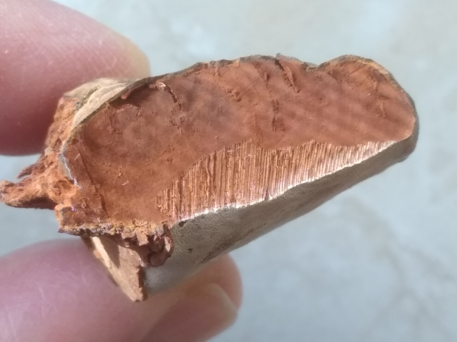 Bild C4 Herausgetrennter Keil (Wie alt mag der Pilz sein, ich erkenne 5-6 Wachstumsphasen)