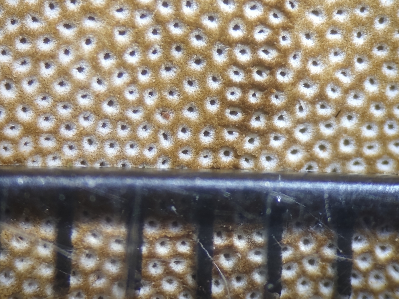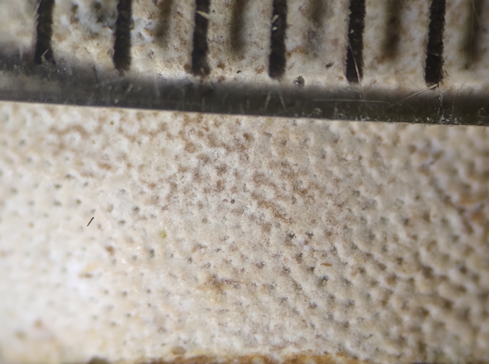 Poren zähle ich 4-5/mm. Die Porenseite verfärbt sich nicht auf Druck.