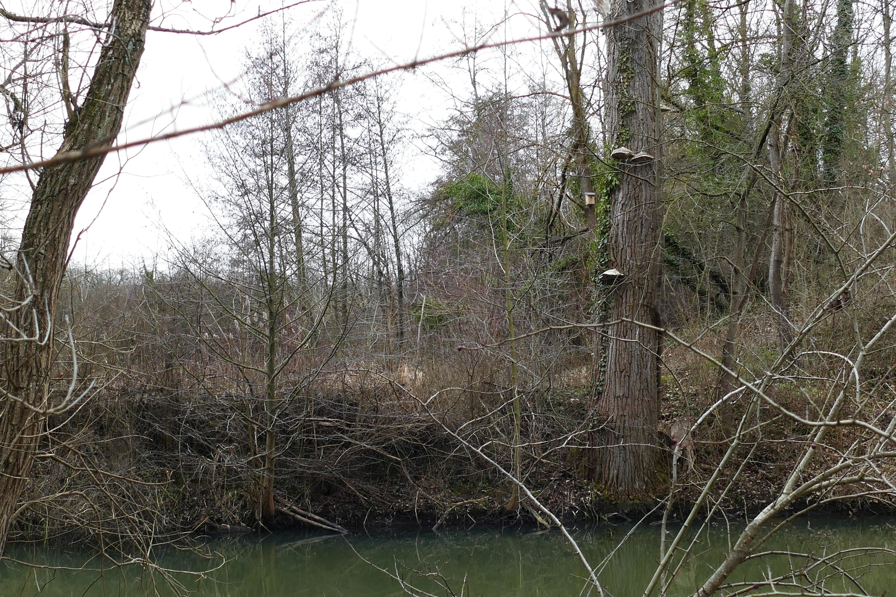 Hier wachsen Pappeln, Erlen, Weiden - teilweise die Füße dauernd im Wasser - aber auch Eichen und Ahorn, wenn der Untergrund etwas trockener wird.