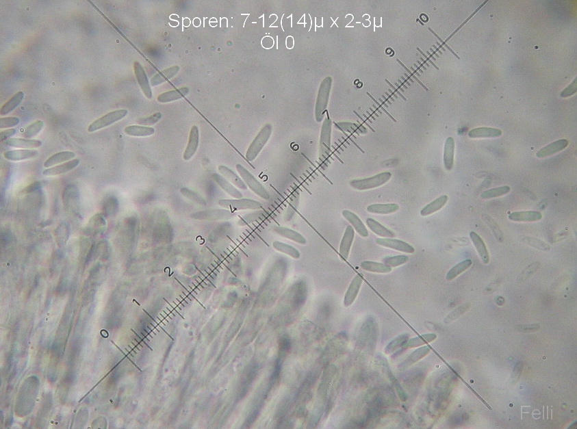 Gemessene Sporen 7-10(12) x 1,8 - 2,5(2,8)µ