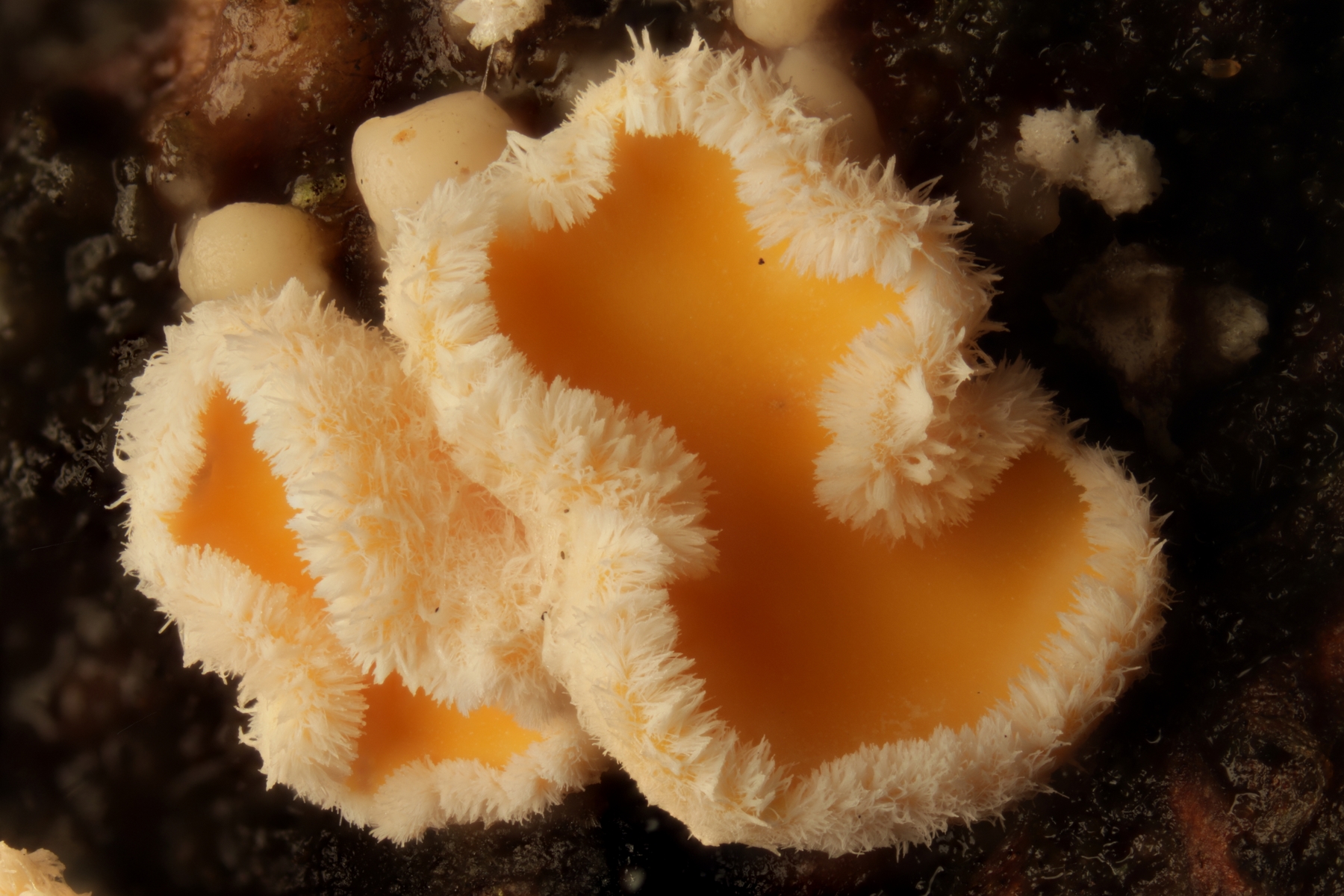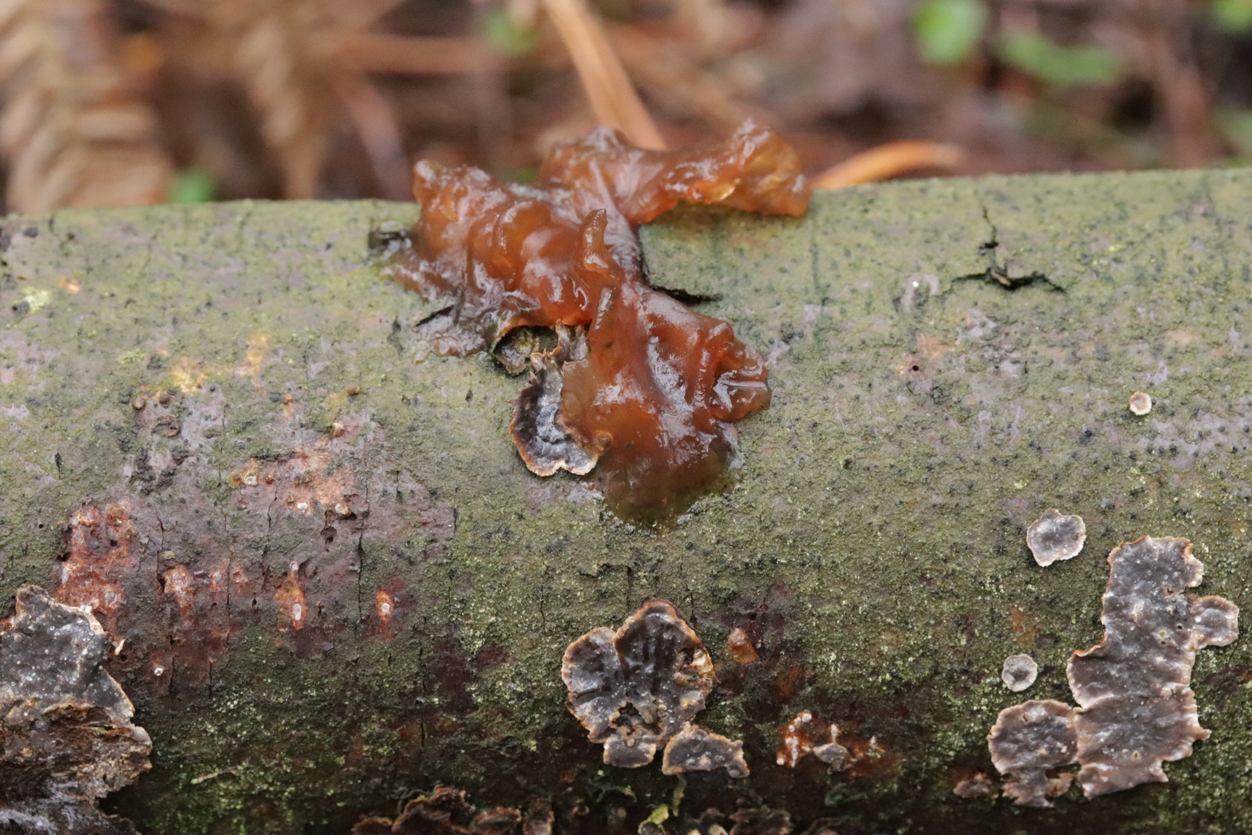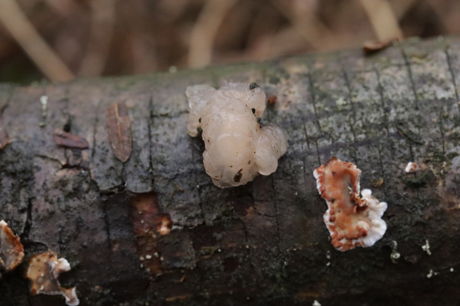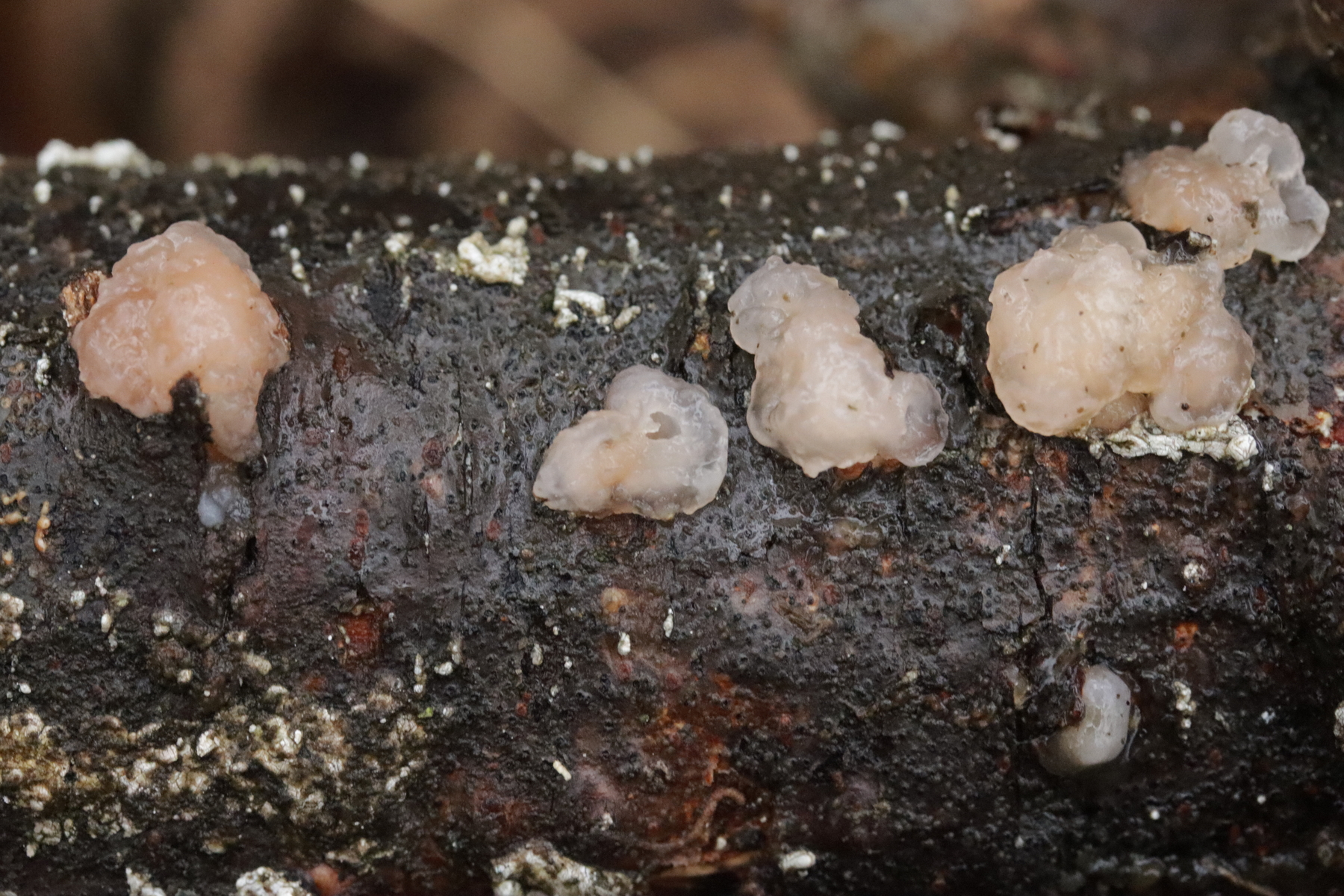 Ansonsten habe ich noch einen weiteren schönen Fund auf den Kiefernnadeln gemacht. Da gab es sehr zahlreich Meloderma desmazieri und einer der Fruchtkörper hatte auffälligen weißen Glibber drauf. Ich habe leider keine Makrofotos gemacht, aber mikroskopisch waren dann schöne, septierte Basidien zu sehen, die zu Sirotrema translucens gehören (den hast du ja auch offenbar mal gefunden).