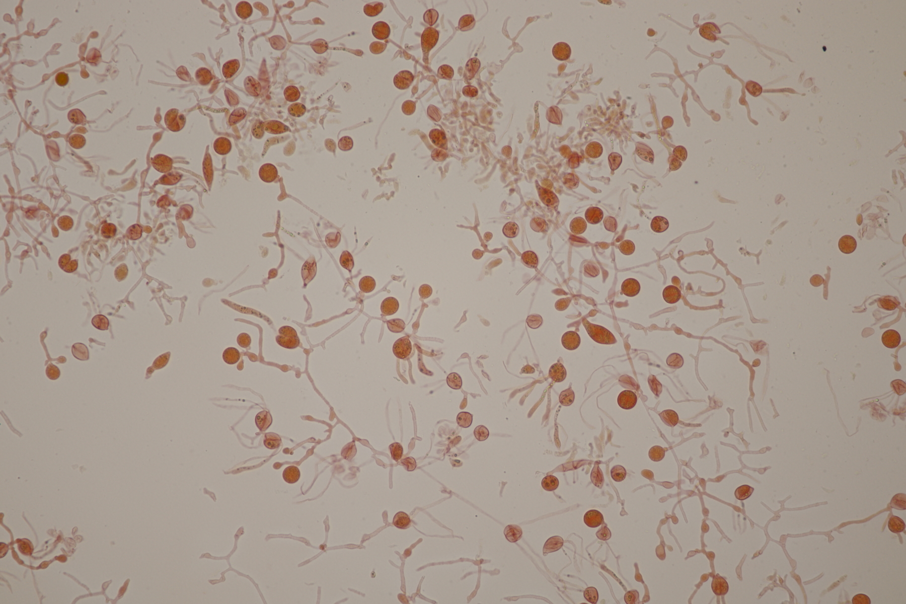 ich hatte die Tage noch mal reingeschaut, aber konnte leider keinen guten Blick auf unreife Sporen erhaschen, weder in Wasser, noch in Lugol, noch in Kongorot. Aber auf Facebook hat sich jetzt Luis Quijada für den Fund interessiert und möchte ihn sequenzieren. Mal schauen, was dabei dann rumkommt.
