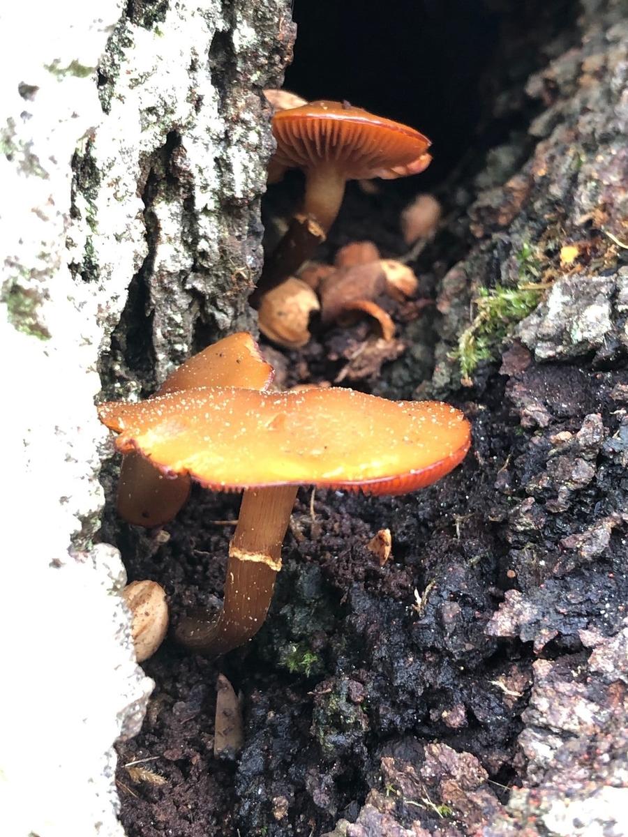 Ich war heute mal wieder auf meiner Streuobstwiesenrunde beim Herrenwald. Als erstes habe ich einen abgestorbenen Apfelbaum unter die Lupe genommen und eine schöne Entdeckung gemacht, an einigen Ästen kümmert sich Craterocolla cerasi um seine Zersetzung. Dem Kirschbaum-Krater Pilz wie auch schon wie auch schon vor ein paar Wochen in Dossenheim (Hasel?). Da er offenbar nicht so streng auf Kirsche angewiesen ist, könnte man natürlich auch Streuobstwiesen-Kraterpilz sagen:/. Aber da Kirsche seine Lieblingssubstrat ist passt der Name wohl am besten. An den nächsten Bäumen war nichts. Ich hab nur aus mykologischem interesse geschaut, aber der Fund zeigt das Speisepilzsammler immer achtsam sein müssen. Weil sich auch auf einer Streuobstwiese tödliche Gefahren für sie verbergen können. Es handelt sich hierbei nämlich um Galerina marginata den Gifthäubling.