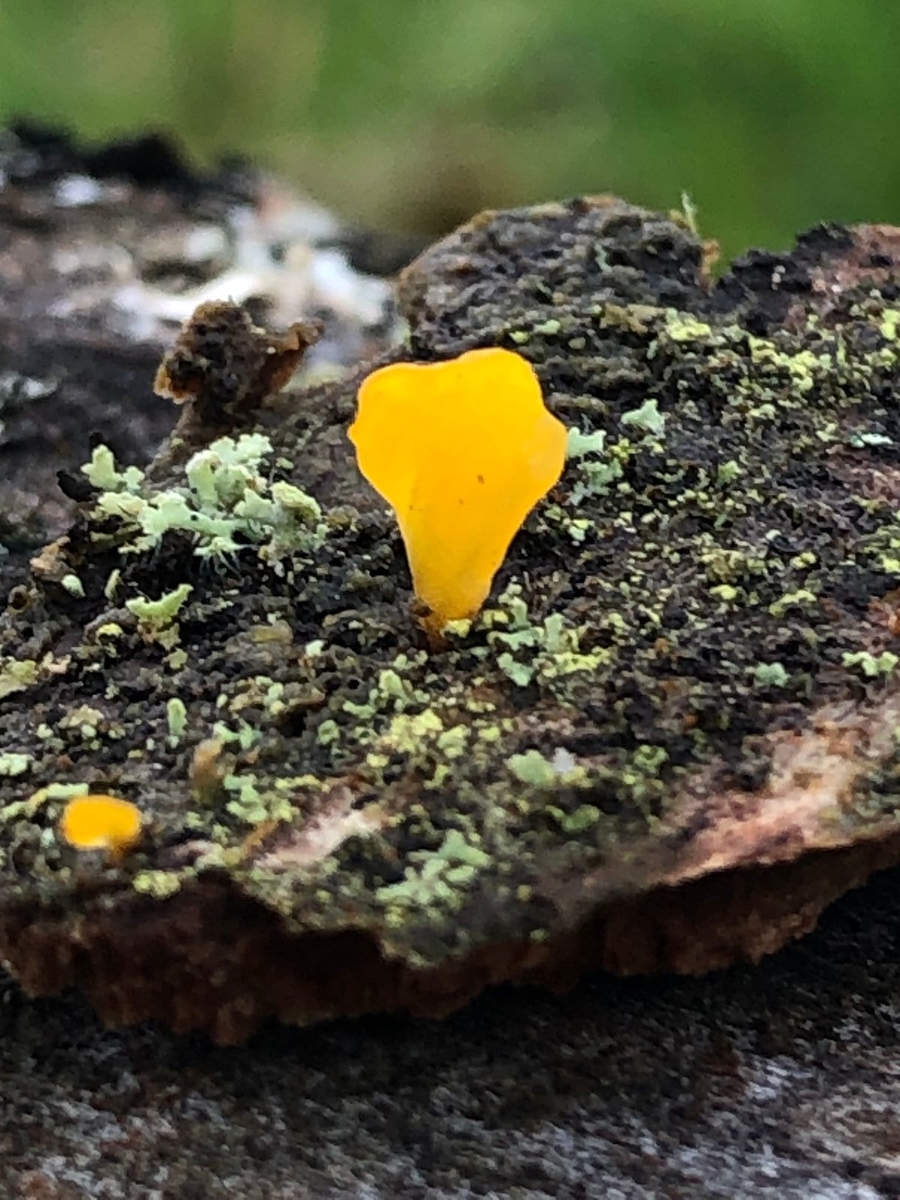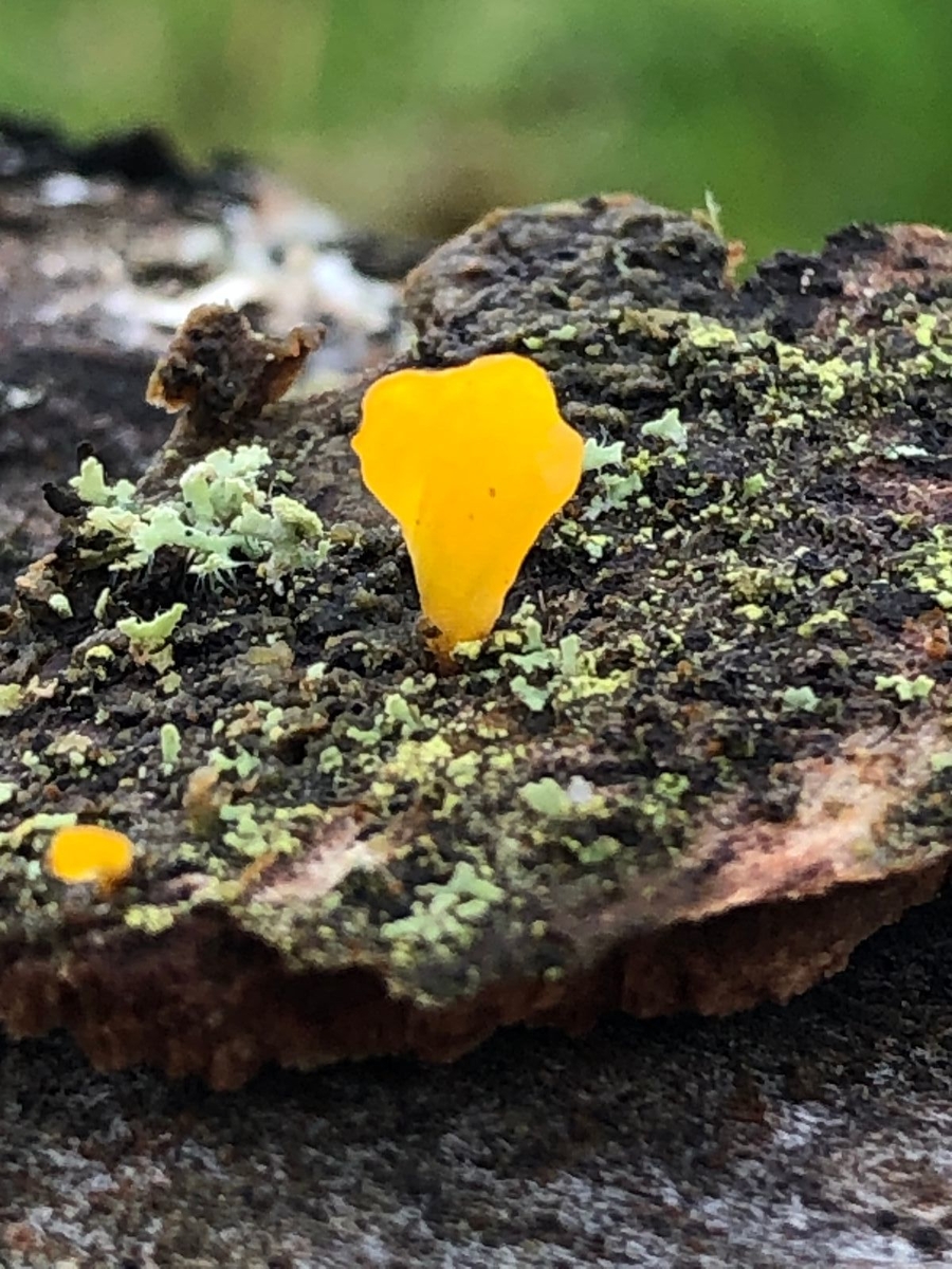 Das er auch Laubholz nimmt ist bekannt, aber ich habe ihn heute zum ersten mal an Apfelbaum gefunden. Und auch kleine Schönheiten die das Totholz schmücken sind bei mir immer gerne gesehen. Da Kann man mal überlegen ob das ein Hörnling oder ein Spateling ist==Gnolm23. Nach meiner Einschätzung ist das der Zungenhörnling (CALOCERA GLOSSOIDES). Zum Abschluss zeige ich noch eine Kirschbuche (Die ist mit 2 Kirschen zusammen gewachsen).