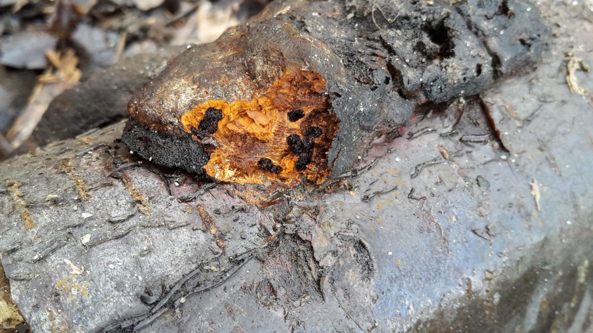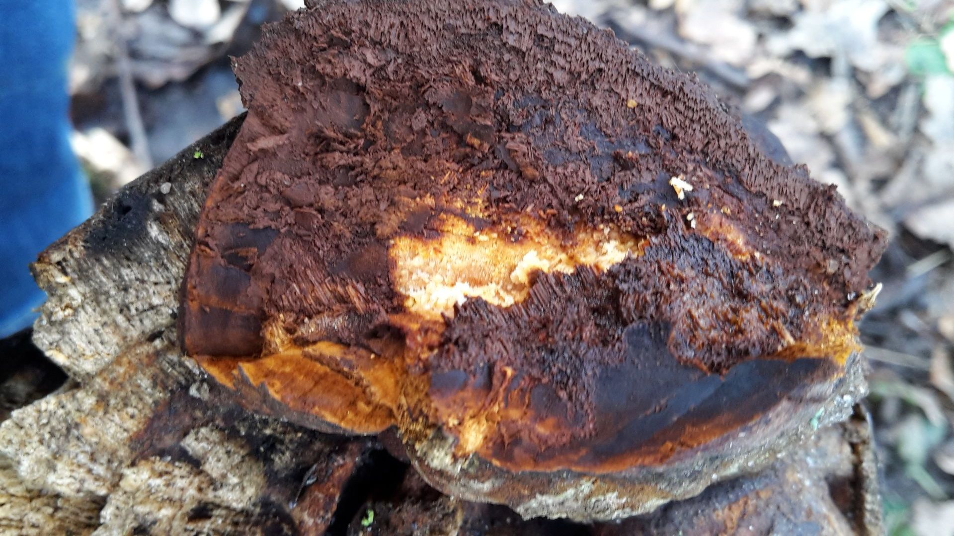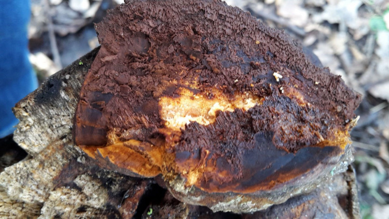Von dem, was auf dem ersten Bild rechts an der Kante des Astes wächst, habe ich etwas abgeschnitten. So sieht der Querschnitt aus: