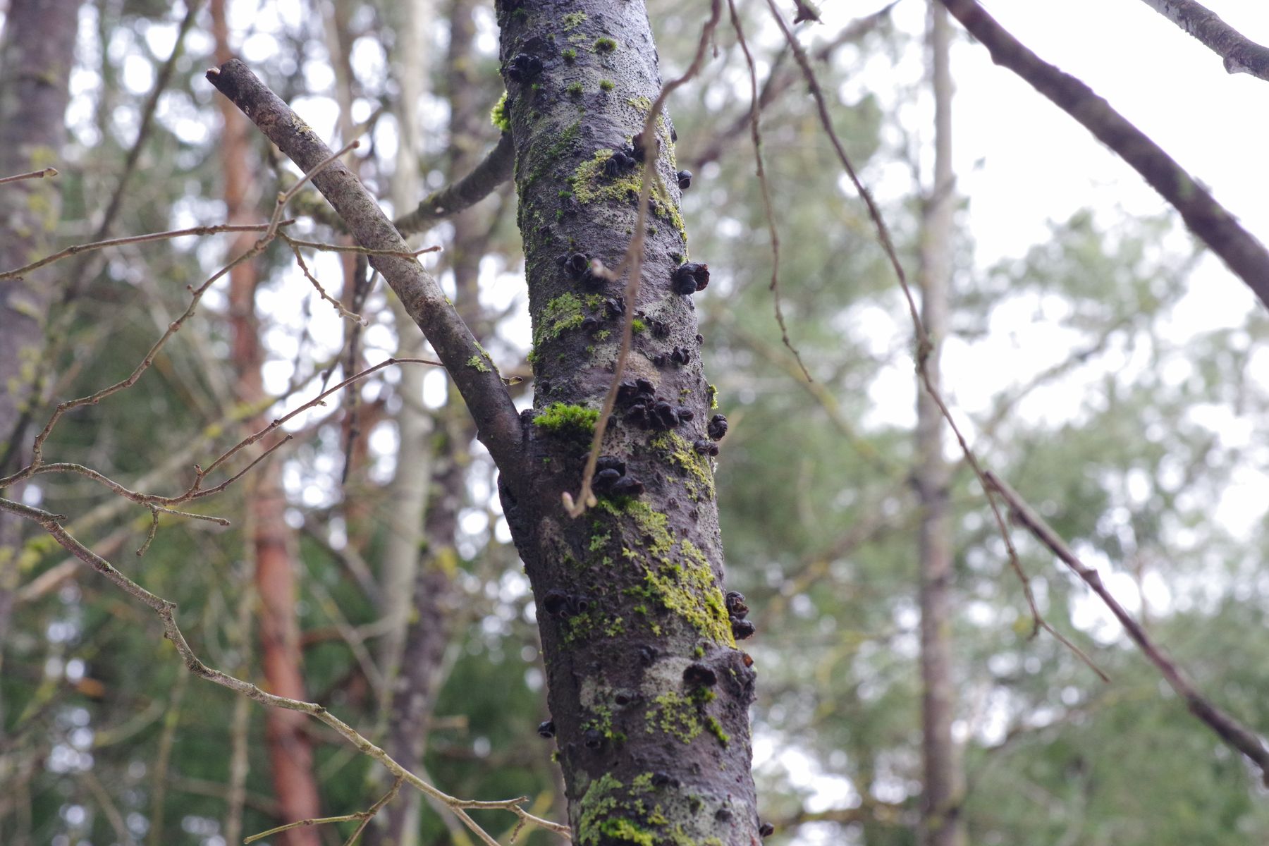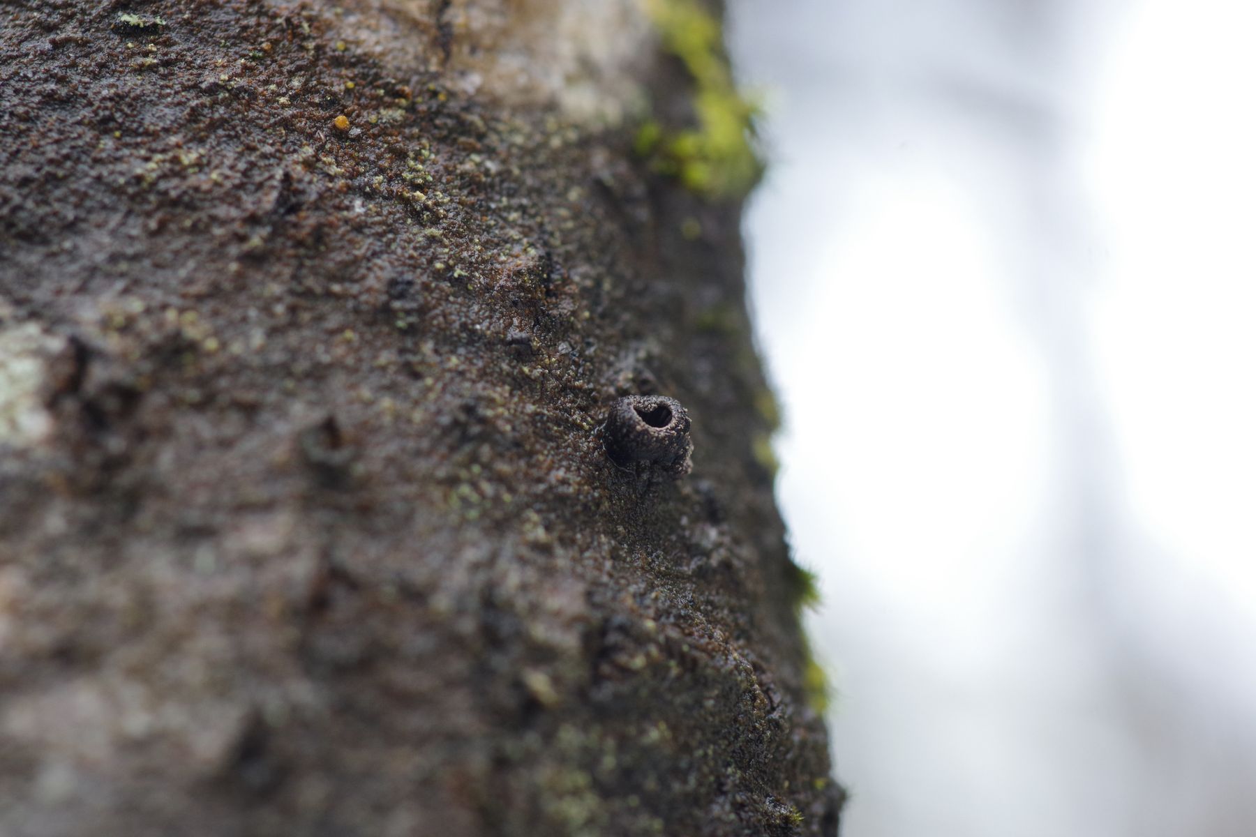 Nur an einem einzigen Baum in dem Espencluster, wo ich voriges Jahr Innonotus rheades hatte - die alten Fruchtkörper sind noch da, aber im letzten Jahr nicht wiedergekommen, auch nicht an irgendeinem anderen der Bäumchen. Man sollte meinen, dass es eigentlich genug gleichwertiges Substrat gibt.