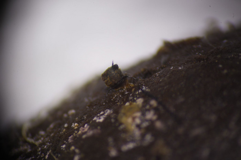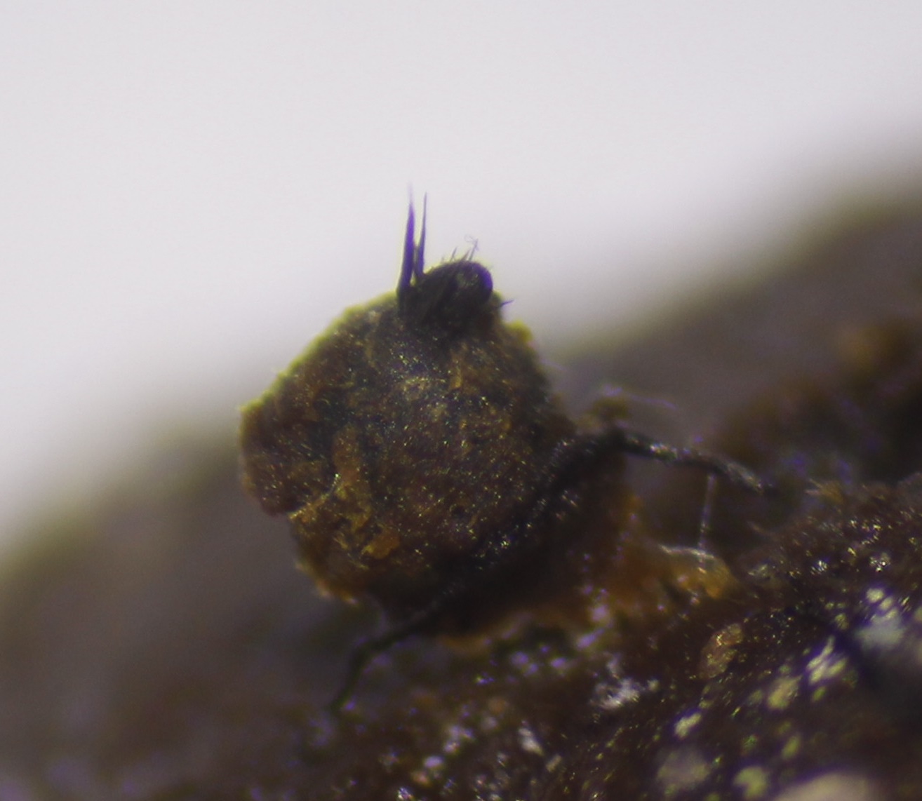 Dabei ist mir ein Fruchtkörper mit steifen, zusammengeklebten Haaren aufgefallen, den ich mir näher angesehen hab.