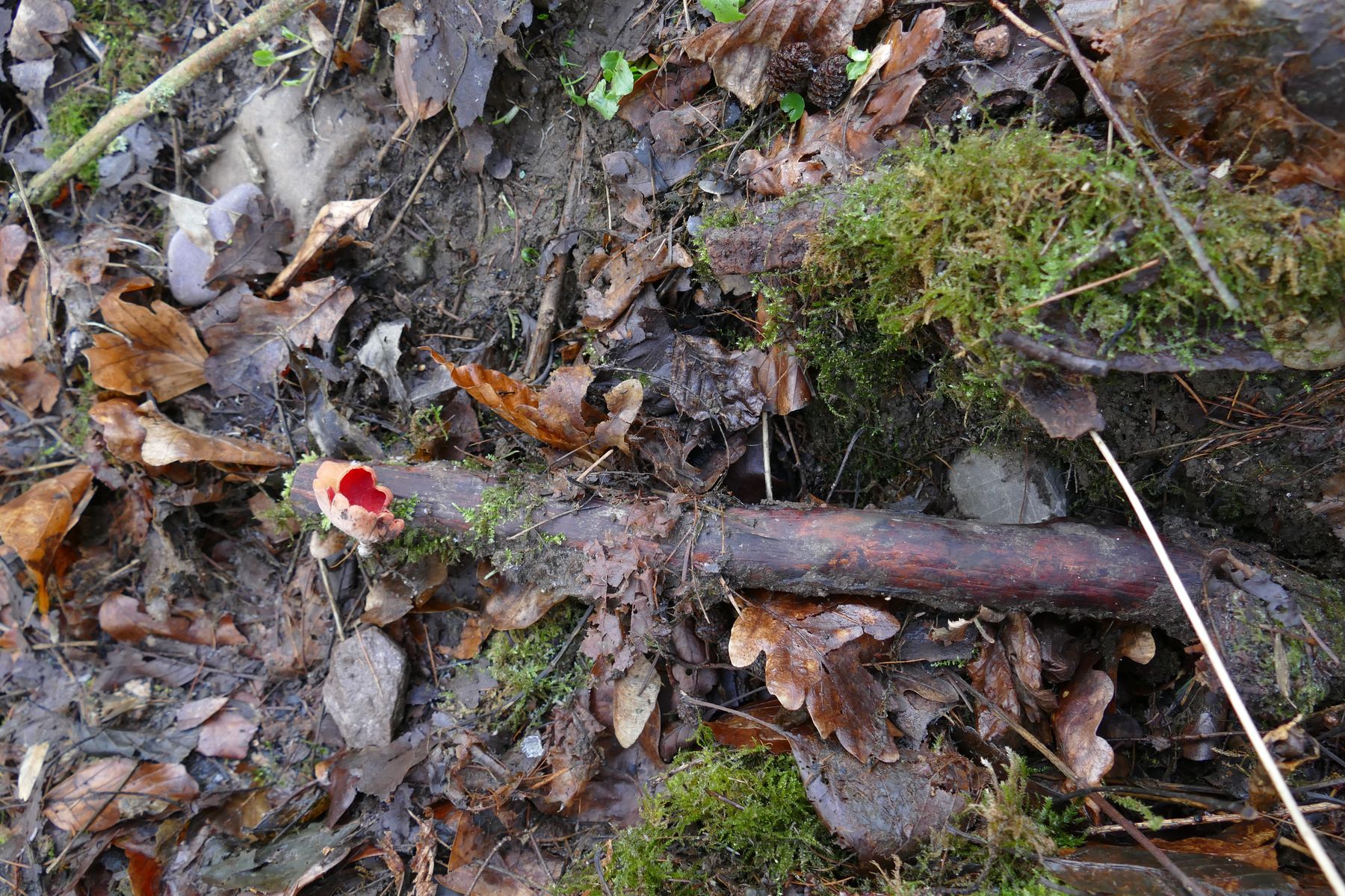 Heute dann wunderschöne Prachtbecherlinge in einem Auwald unter Erlen, Eschen (wenn ihr genau hinschaut, seht ihr auch Erlenkätzchenbecherlinge, die ich eigentlich an der Stelle finden und beobachten wollte).