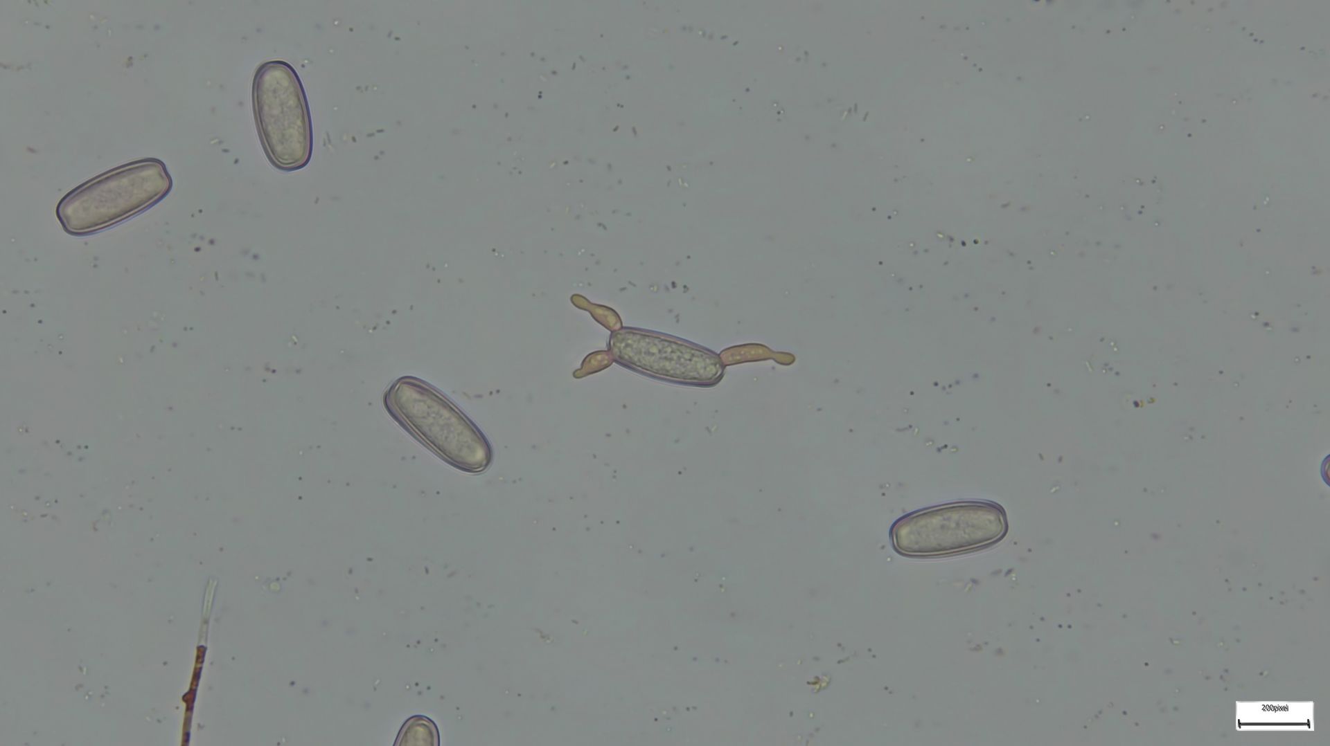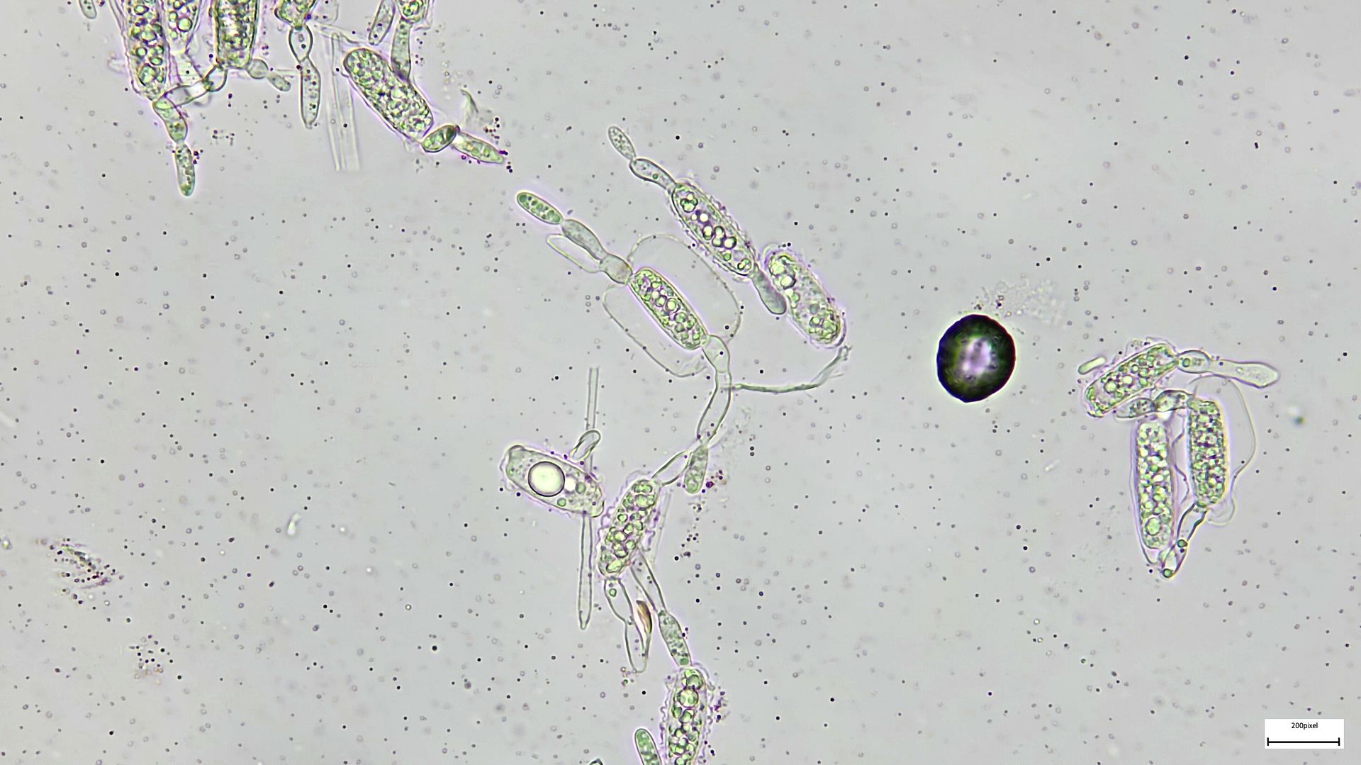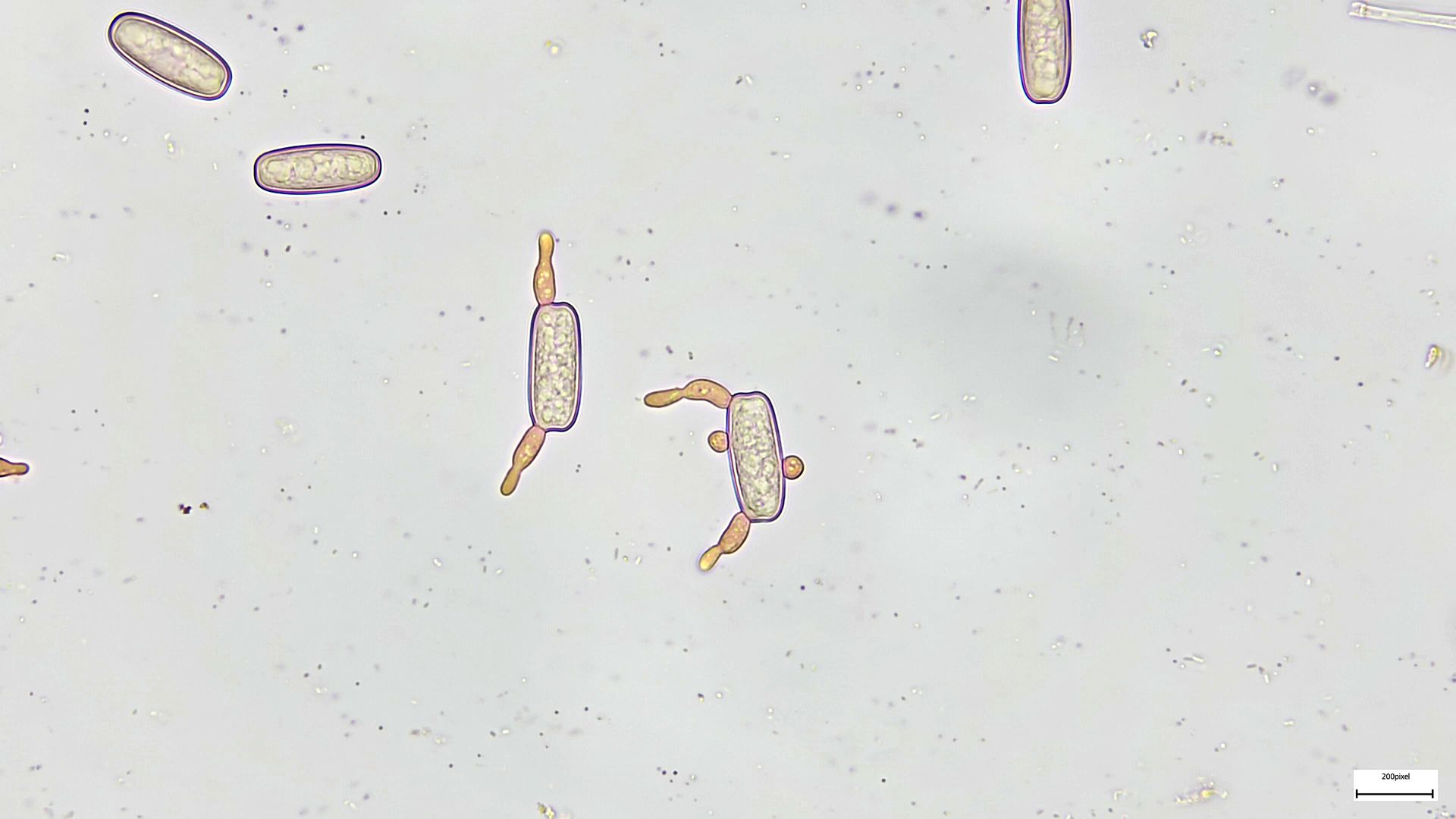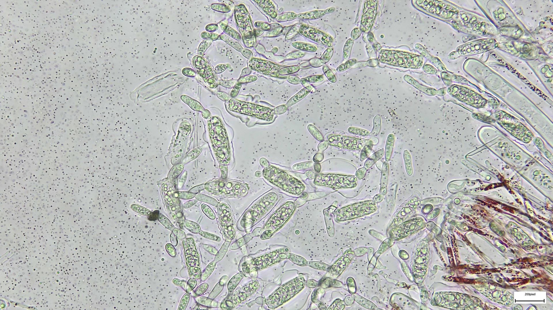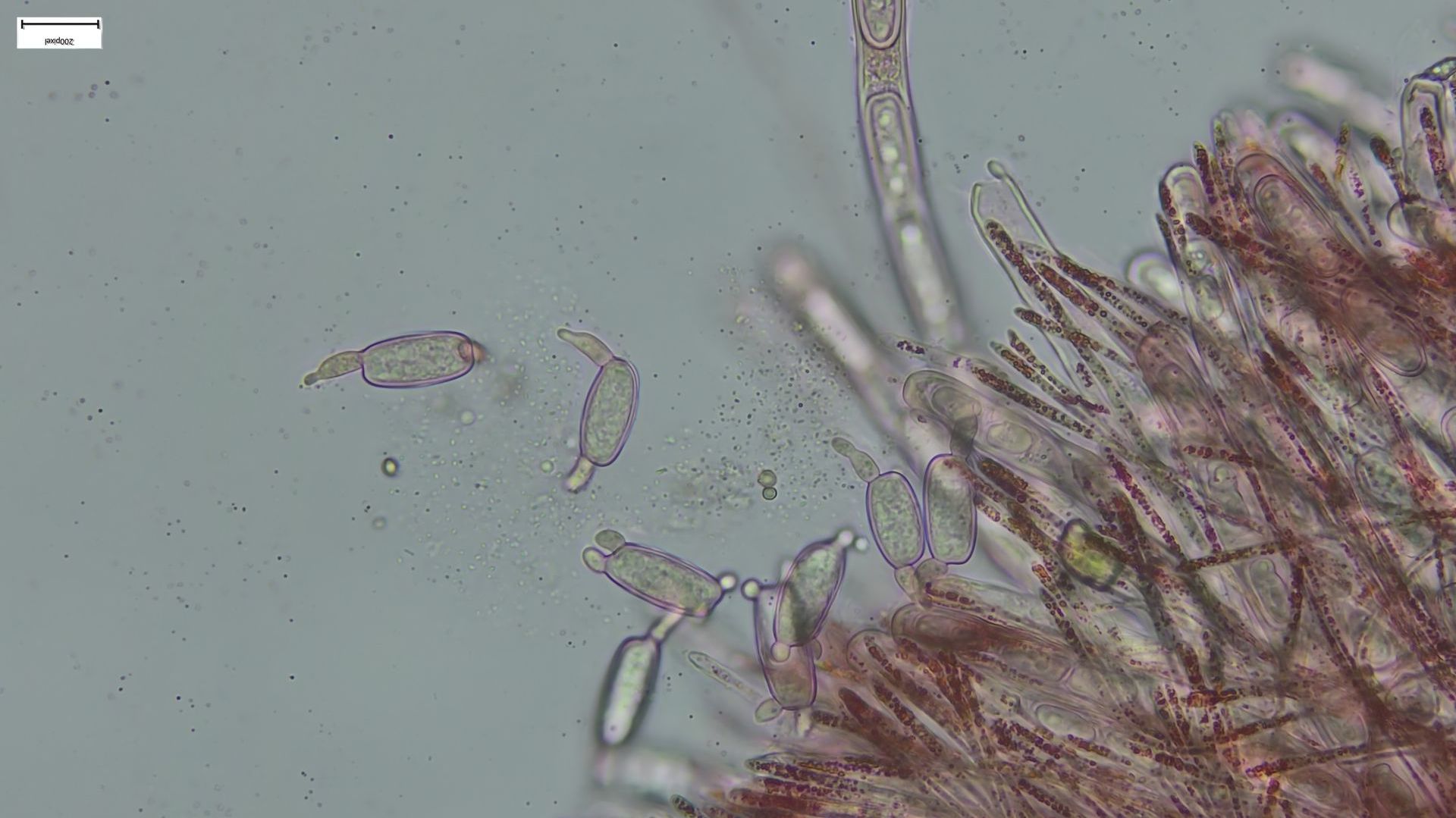 Sporen im Abwurf oft trunkat, um die 30µm (teils auch länger):