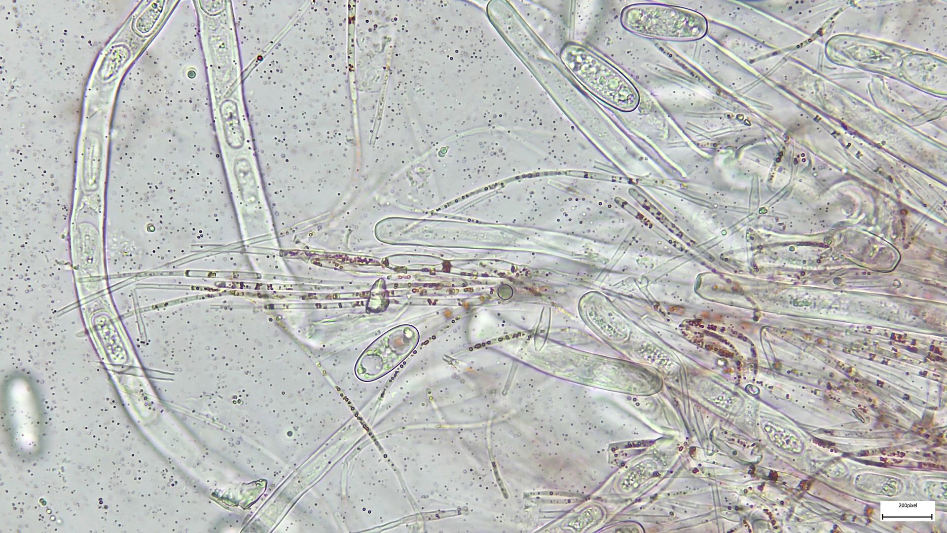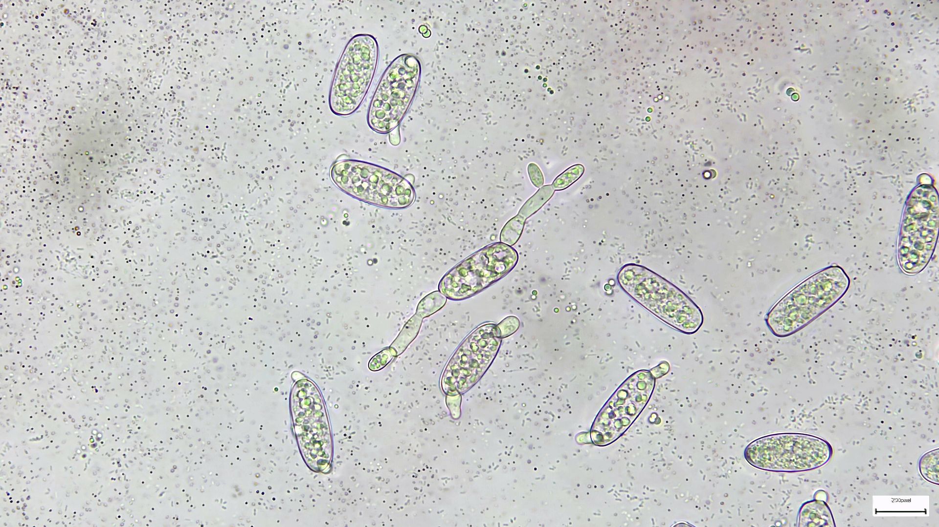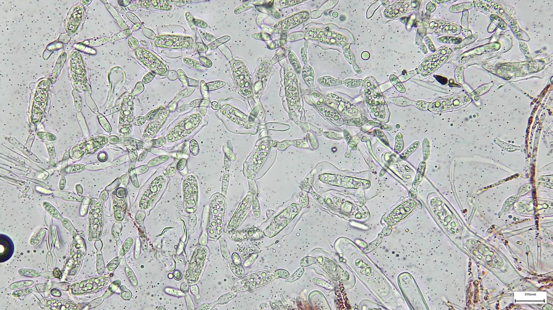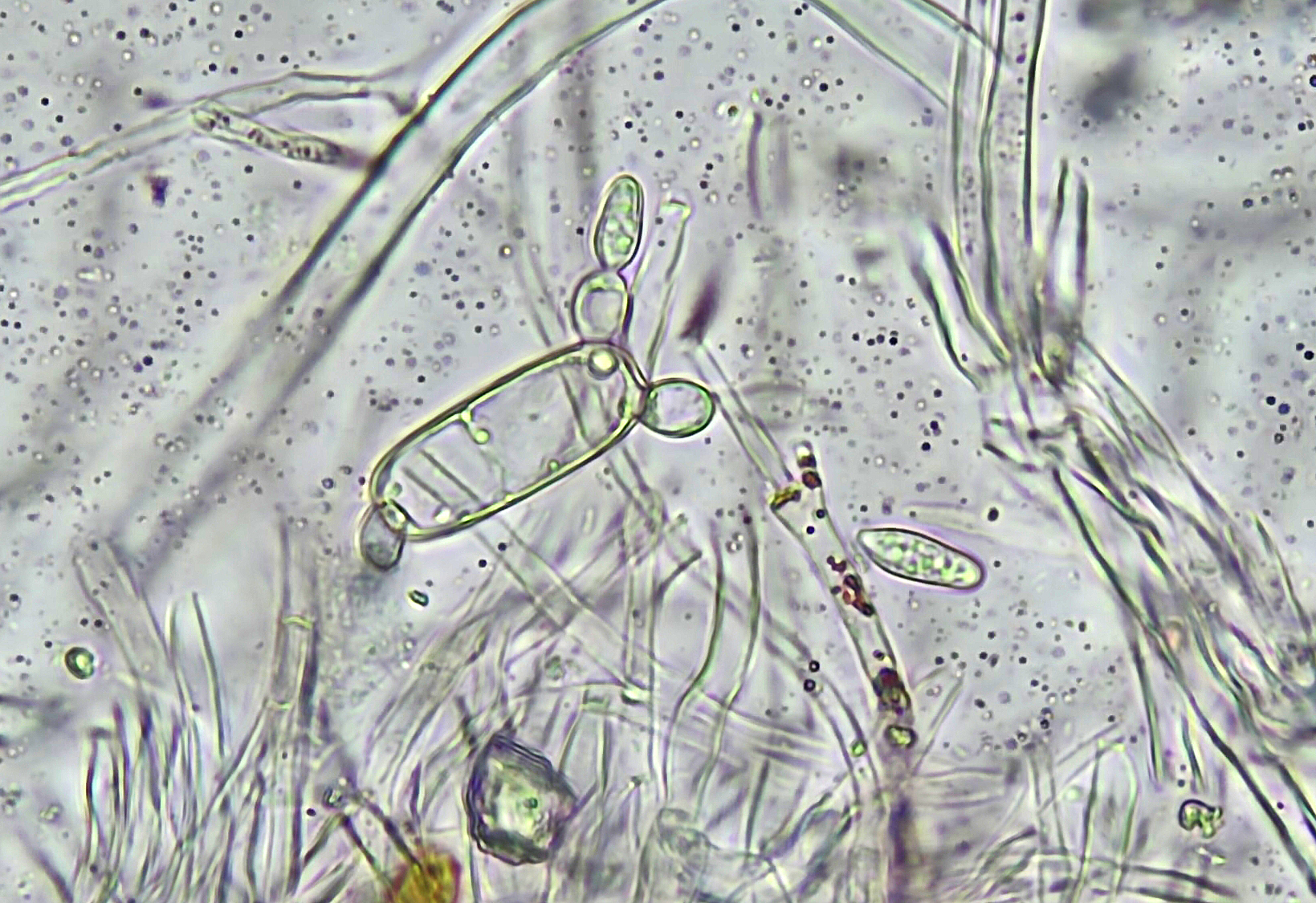 Sporen im Abwurf oft trunkat, um die 30µm (teils auch länger):