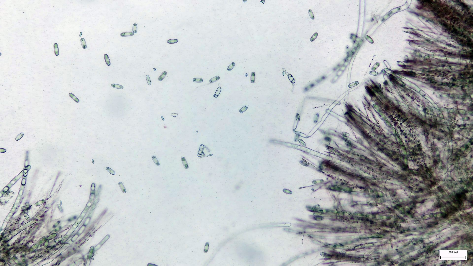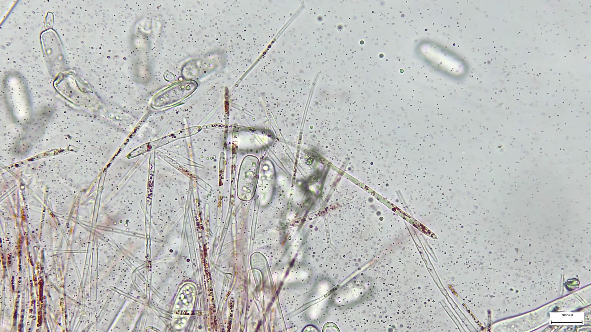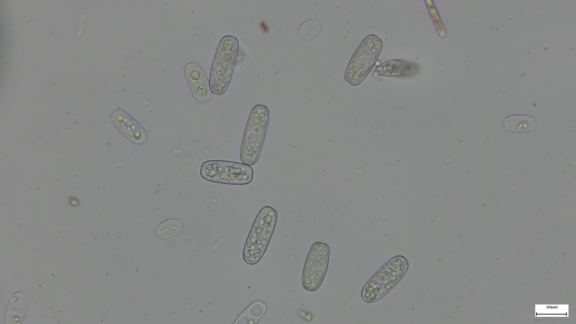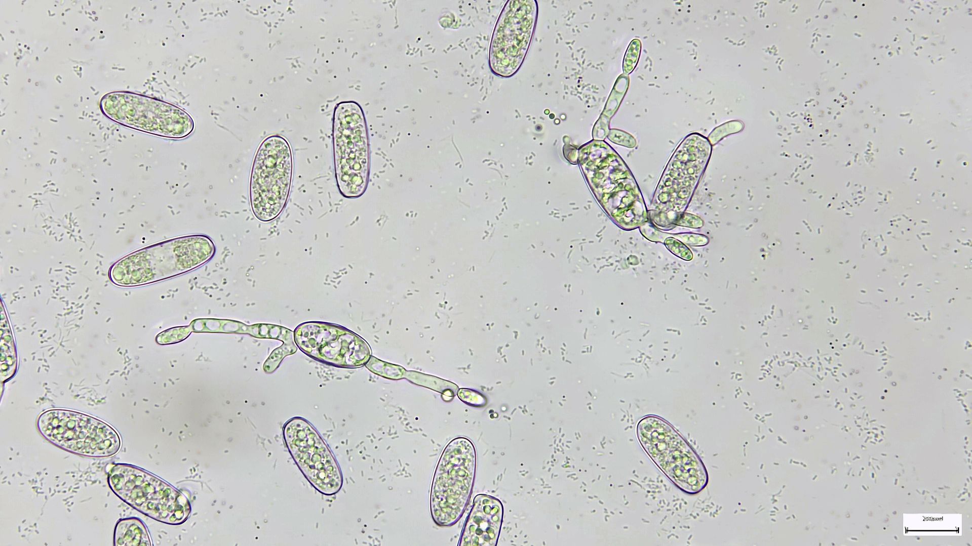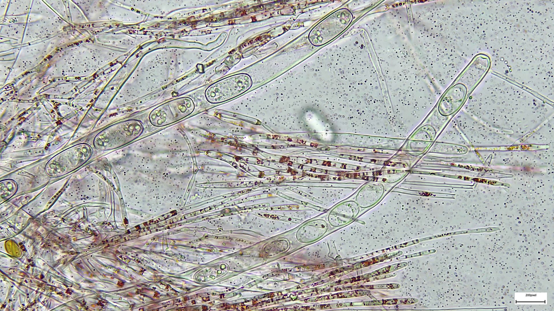 Sporen im Abwurf oft trunkat, um die 30µm (teils auch länger):