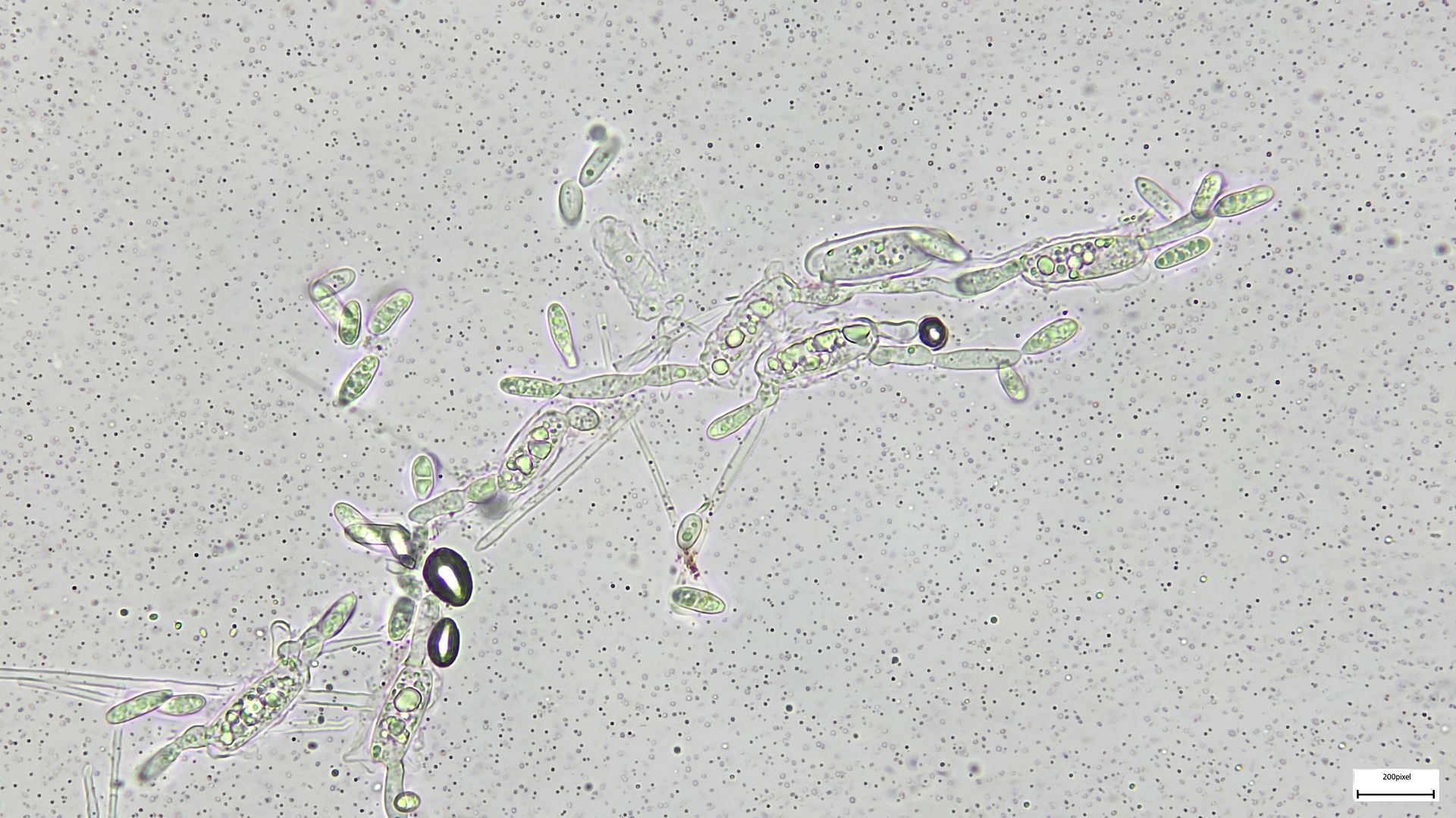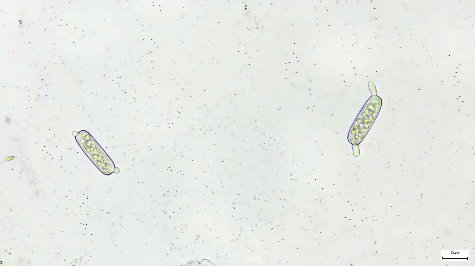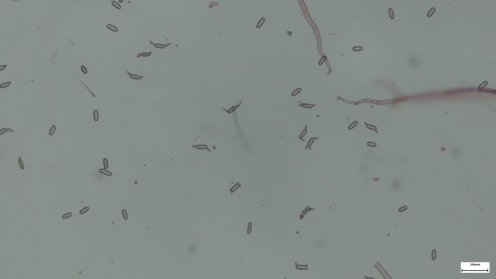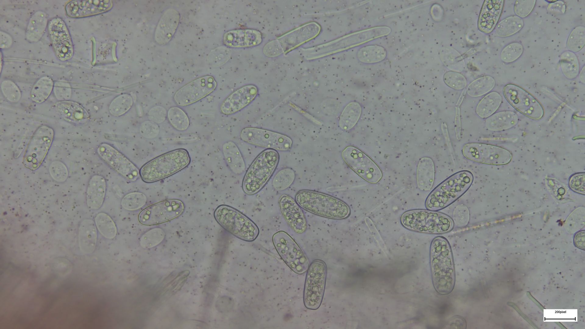 Sporen im Abwurf oft trunkat, um die 30µm (teils auch länger):