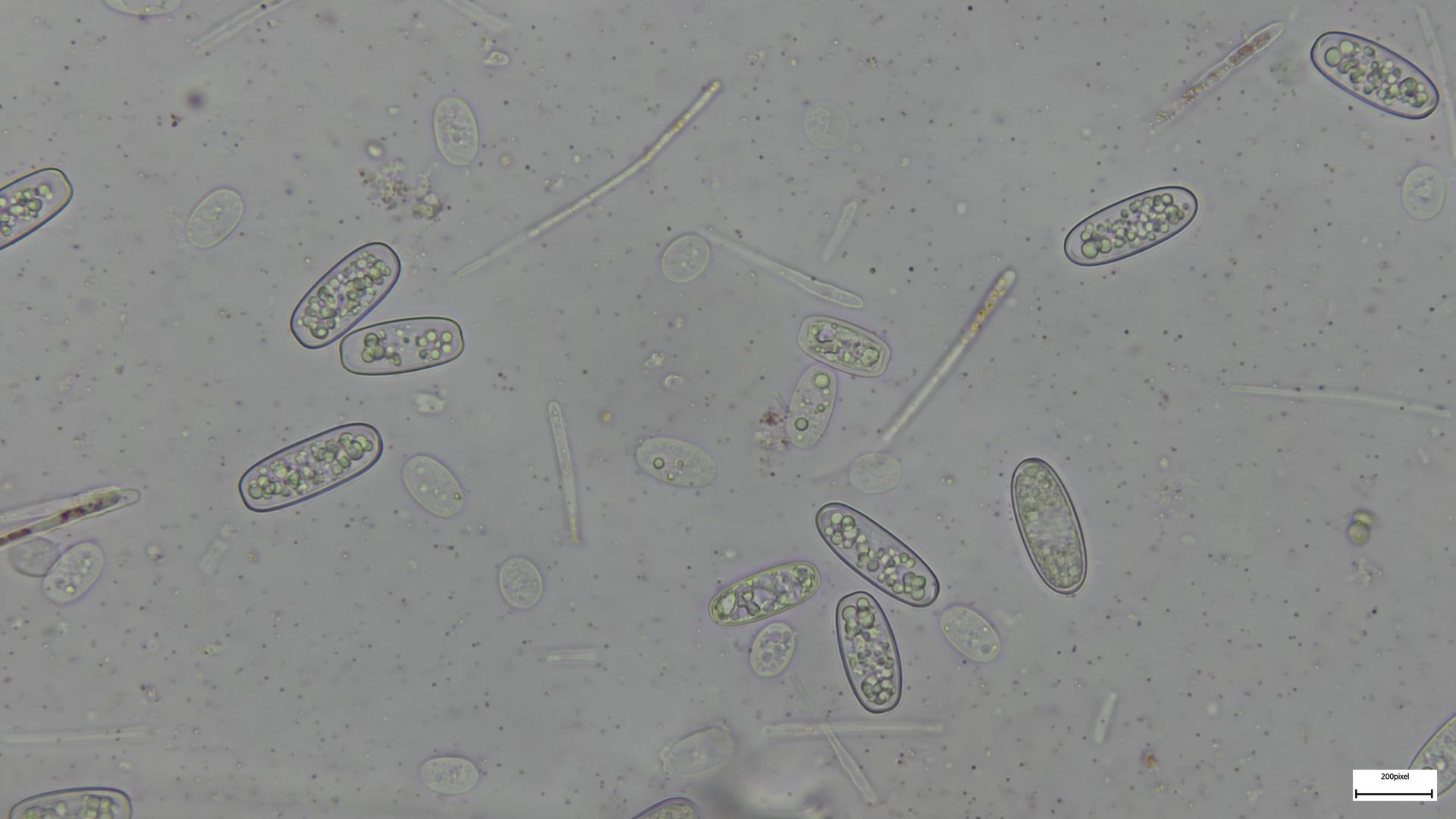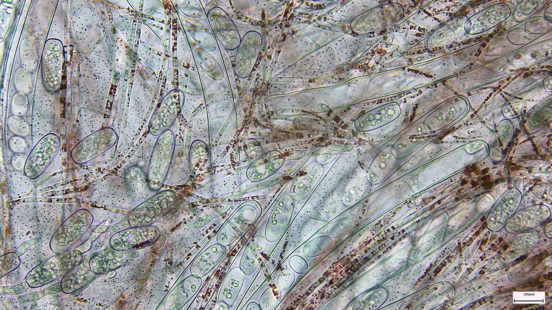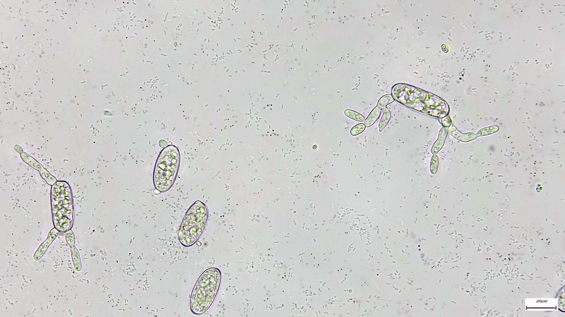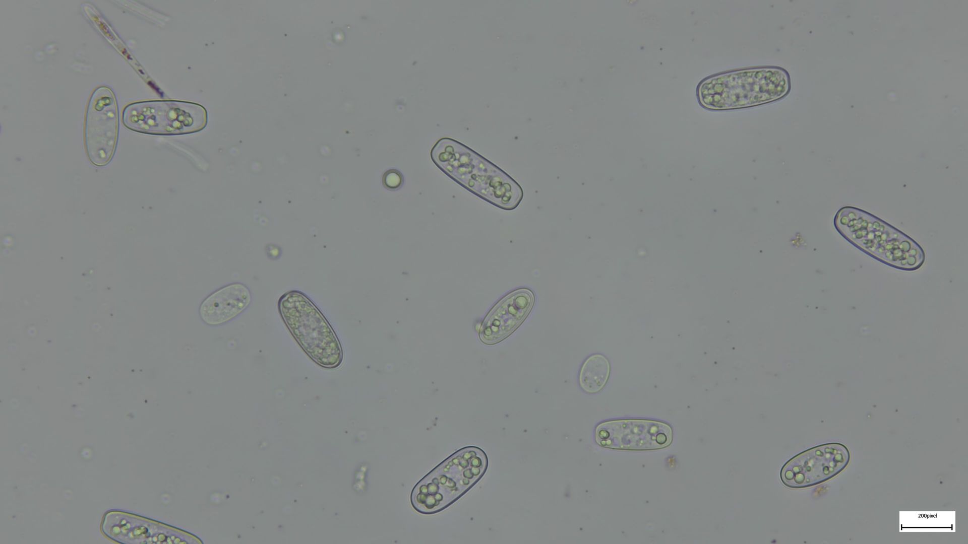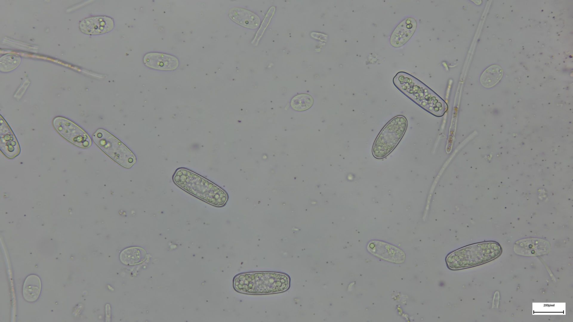 Sporen im Abwurf oft trunkat, um die 30µm (teils auch länger):